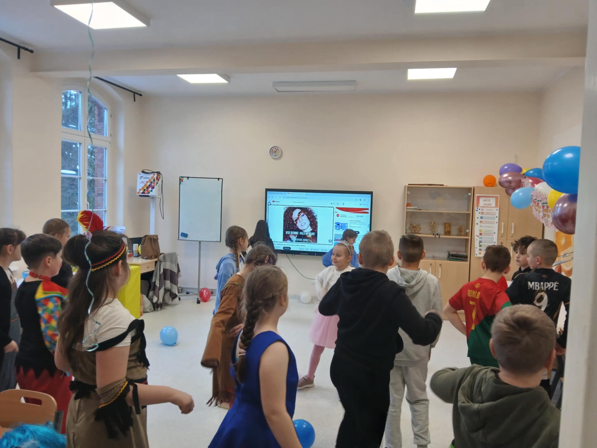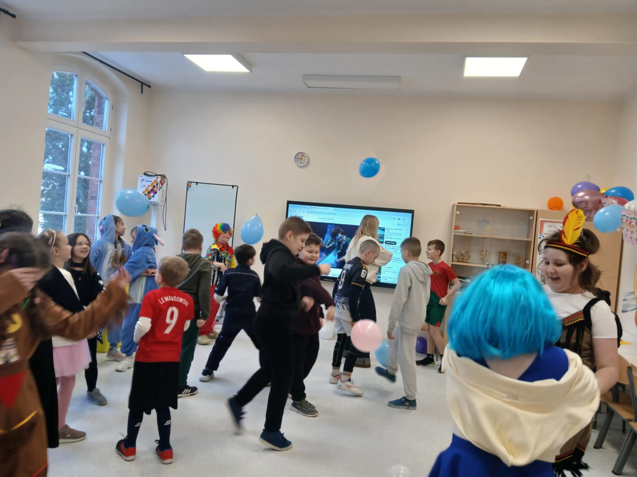 Dziś w naszej szkole odbył się radosny bal karnawałowy dla uczniów klasy drugiej i trzeciej. Sala wypełniła się kolorowymi balonami, strojami, muzyką i dziecięcym śmiechem.