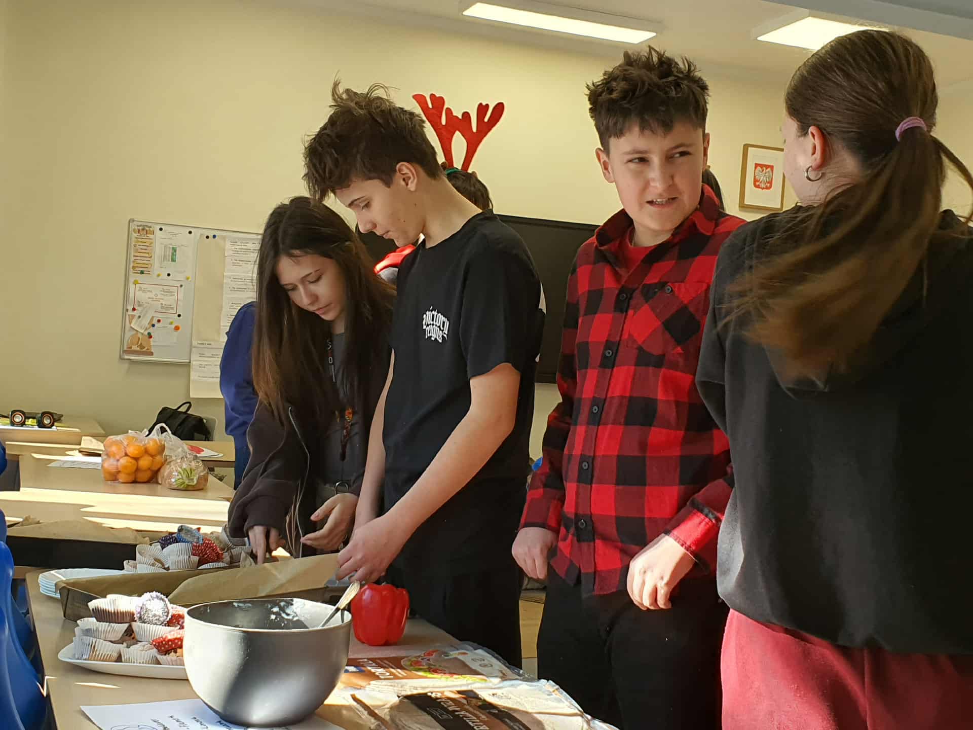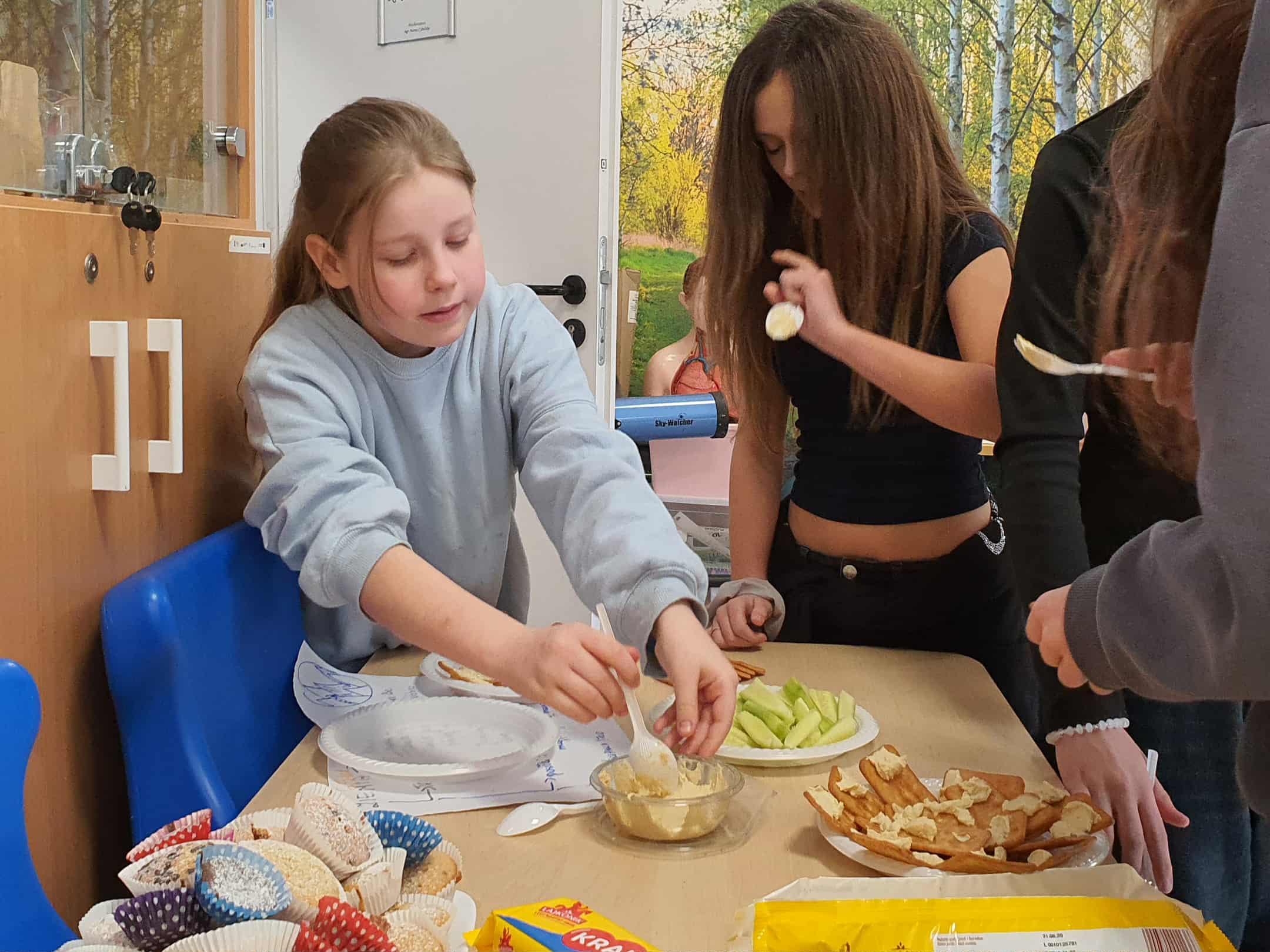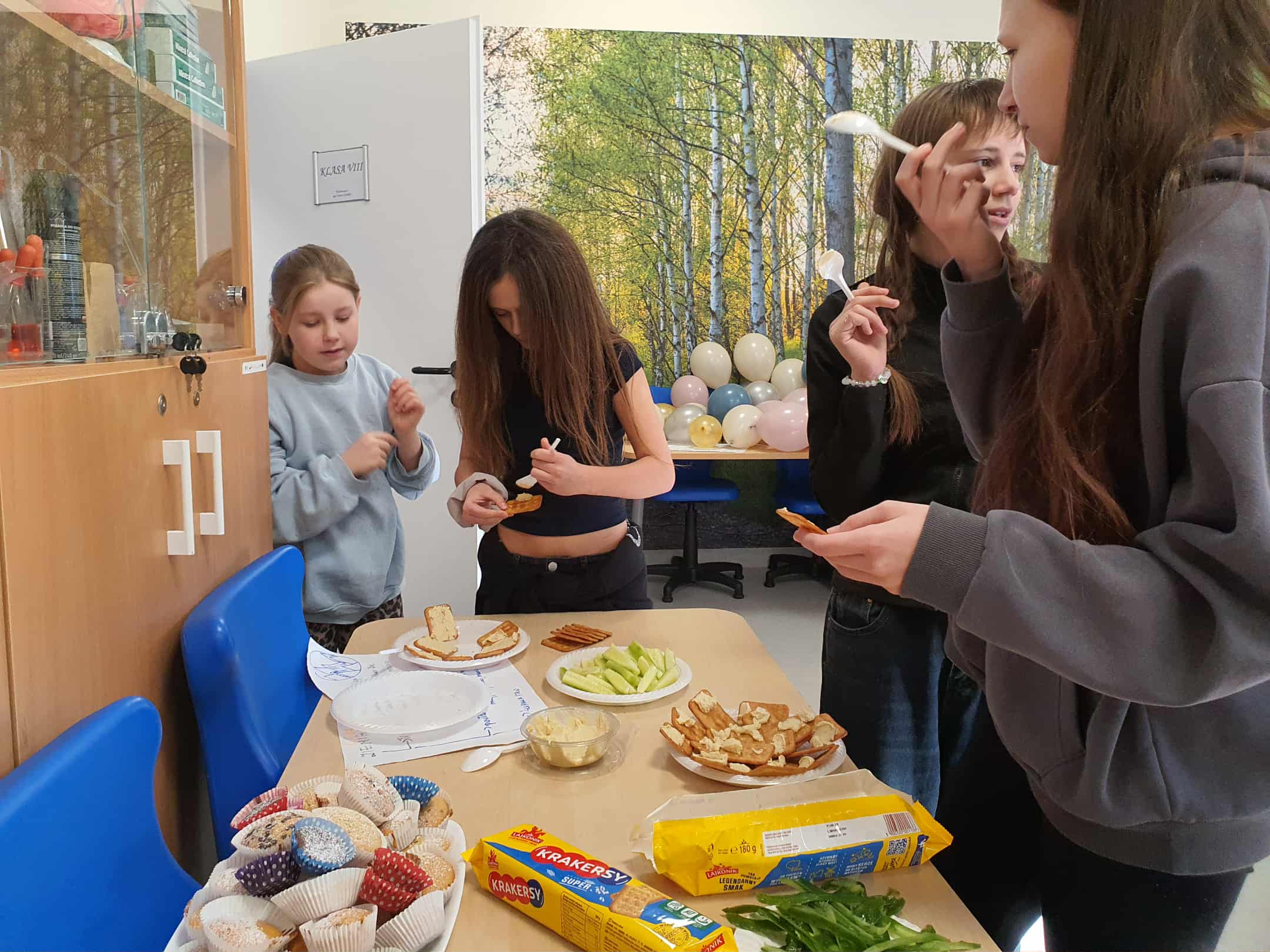 Każdy profesjonalny bal musi mieć bufet z przekąskami. Dlatego każdy zespół przygotował zdrowe potrawy. Były to między innymi: galaretki owocowe, pokrojone warzywa i owoce, kanapki z serem, tortilla ze świeżymi warzywami, muffinki, bezy, wafle ryżowe, krakersy z humusem, ciasto marchewkowe i popcorn. Do picia przygotowano wodę z cytryną i sok pomarańczowy. Bal rozpoczęła prezentacja układów choreograficznych. I to był impuls, który zachęcił do dalszej wspólnej zabawy tanecznej.