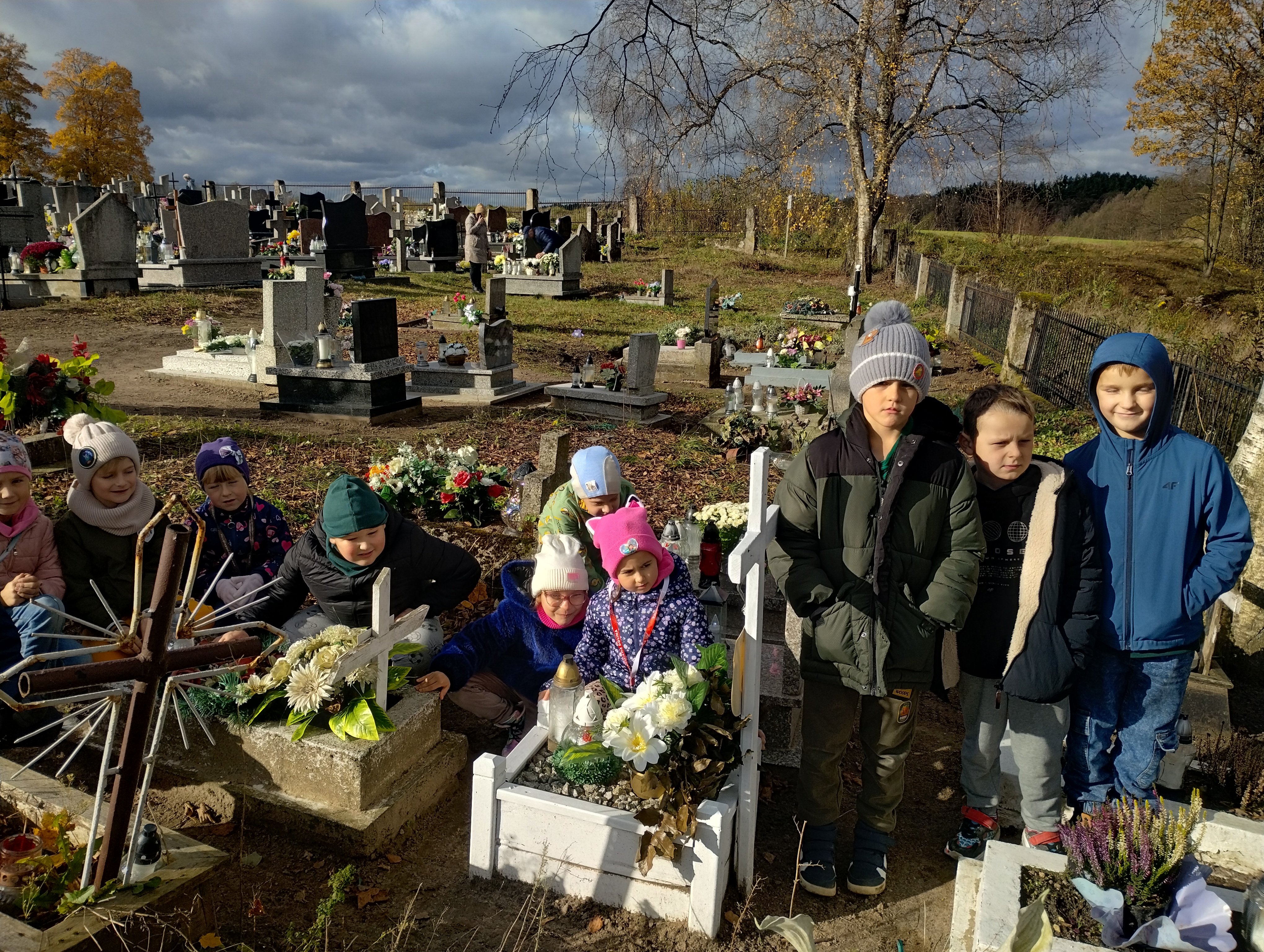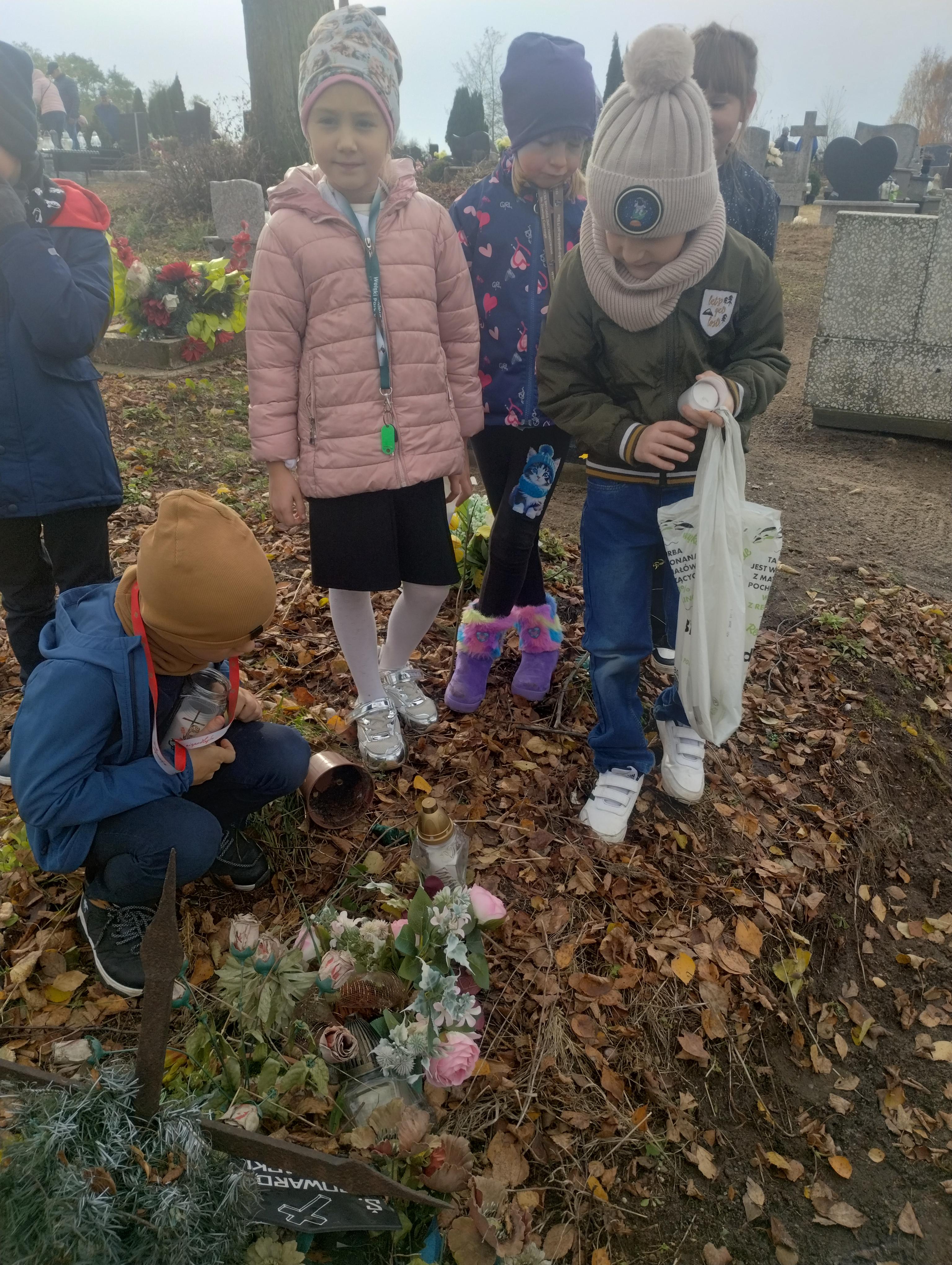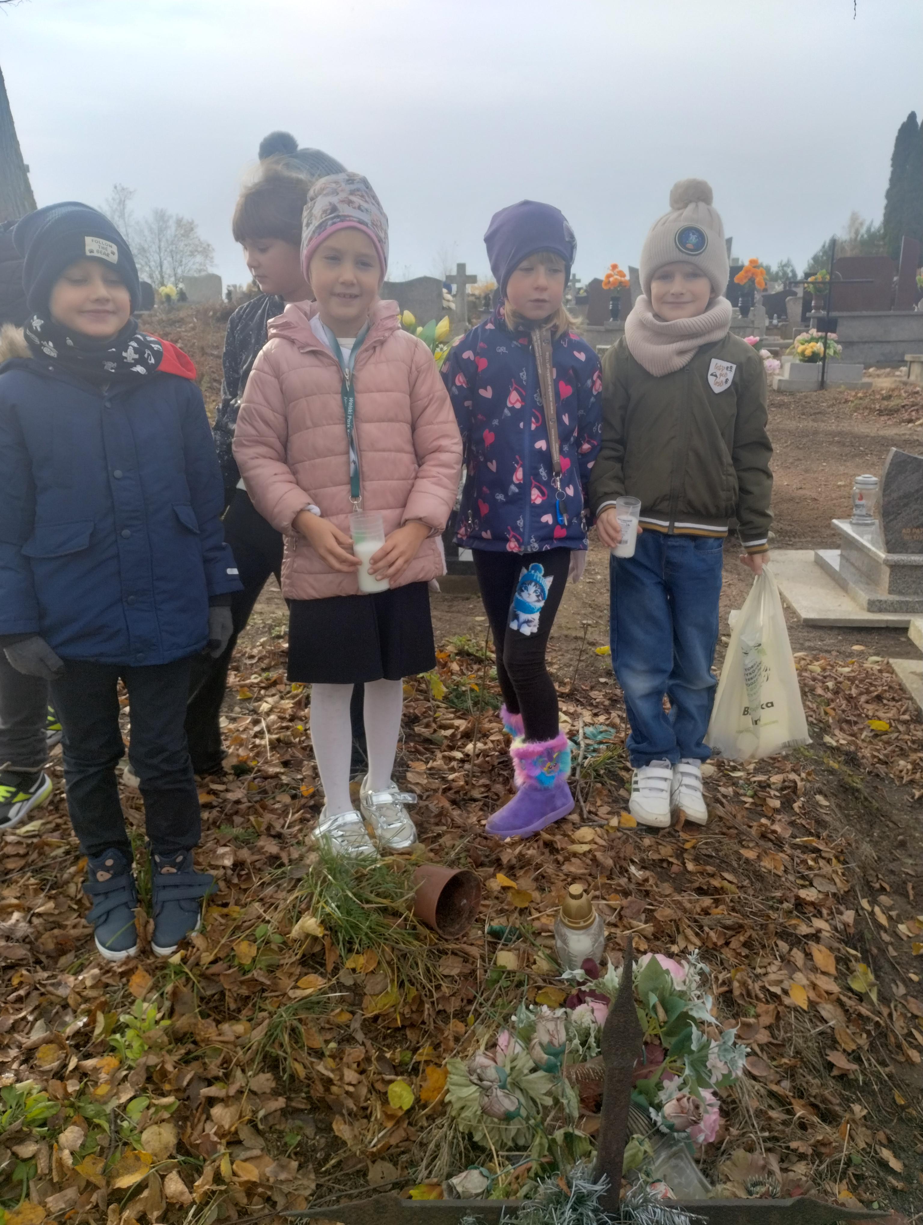 Wyjście pierwszoklasistów na cmentarz poprzedzone było zajęciami, podczas których dzieci poznawały tradycje i zwyczaje związane z obchodami Święta Zmarłych, uczyły się właściwie zachowywać na cmentarzu, by nie zakłócać spokoju zmarłych i osób odwiedzających to miejsce.