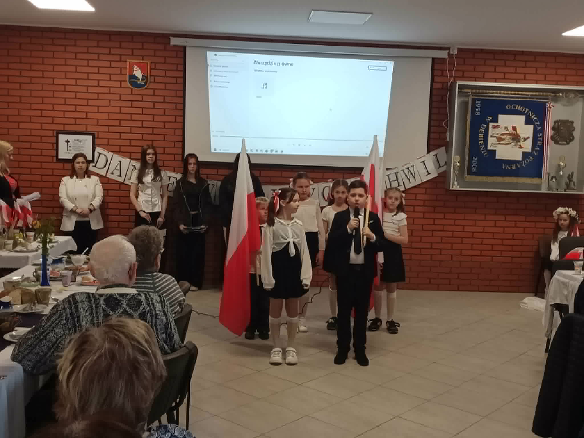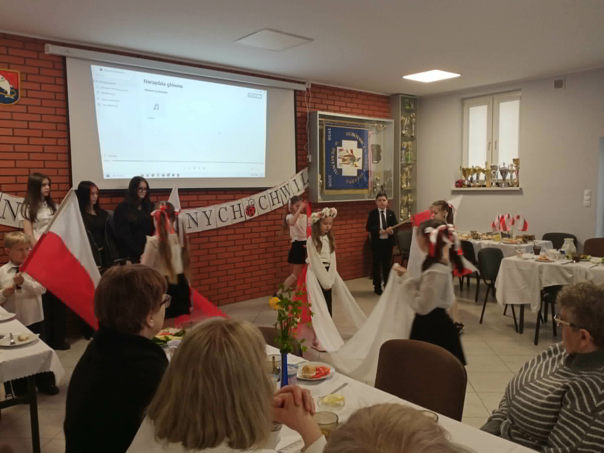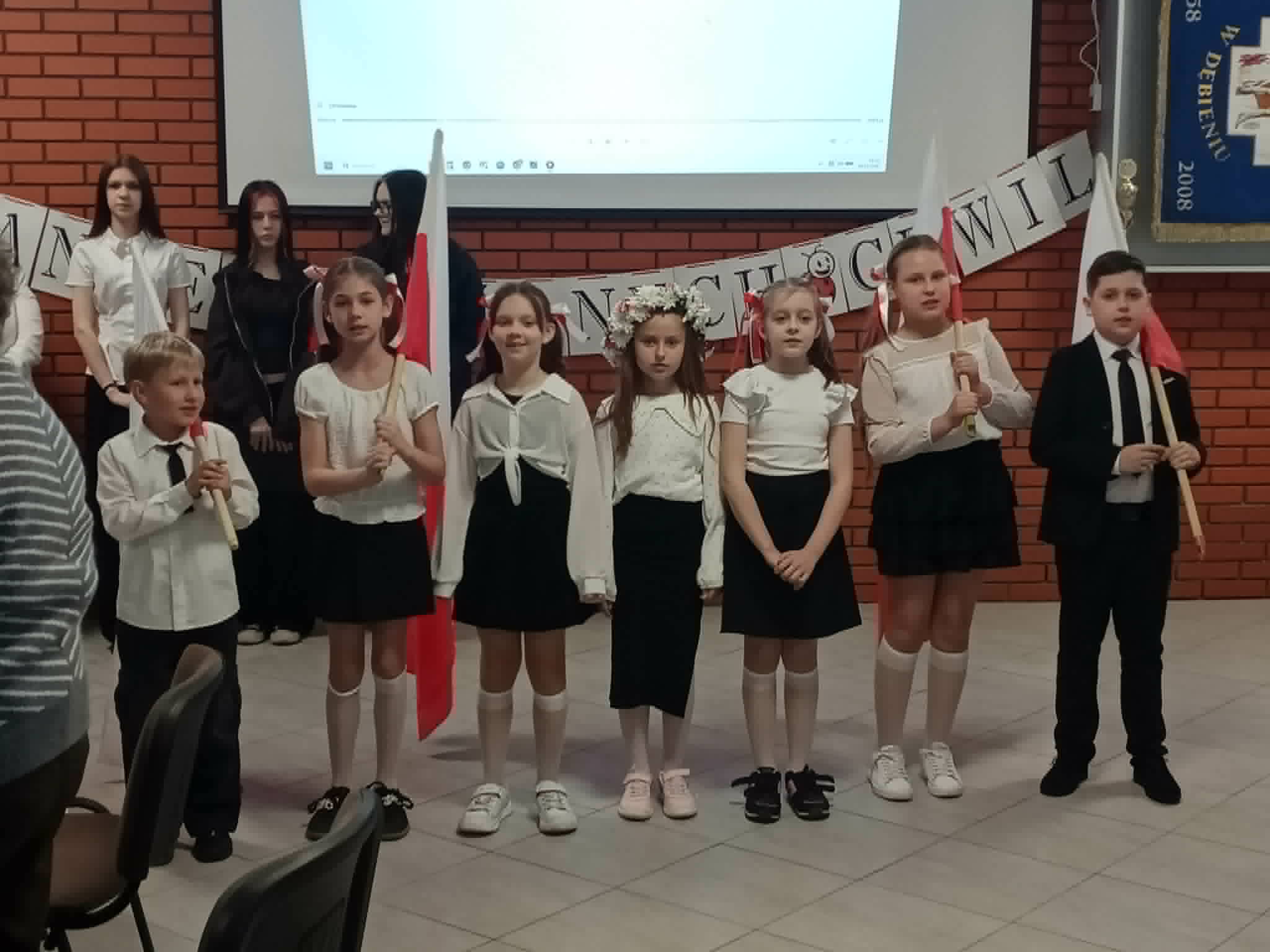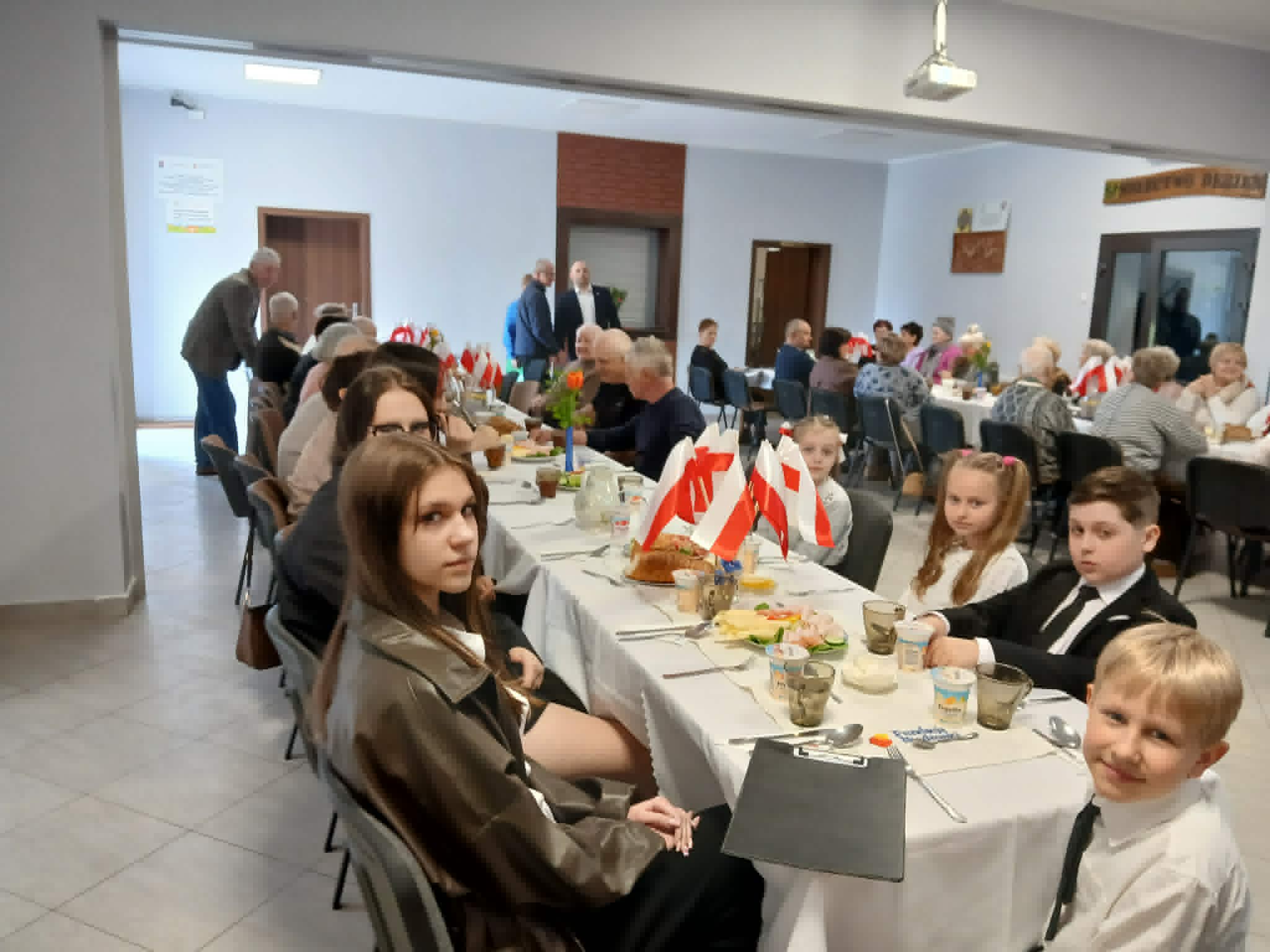 Przedstawiciele uczniów oraz nauczycieli Szkoły Podstawowej im. ks. Jana Twardowskiego, na czele z Panią Dyrektor Hanną Kirchhof, uczestniczyli dziś w wyjątkowym wydarzeniu zorganizowanym w ramach programu „Danie Wspólnych Chwil”, realizowanego przez Koło Gospodyń Wiejskich w Dębieniu. W spotkaniu wzięli udział również wspaniali Seniorzy z Gminy Rybno, co nadało mu piękny, międzypokoleniowy charakter. Wydarzenie miało uroczysty, patriotyczny wymiar. Biało - czerwone barwy towarzyszyły uczestnikom przez cały czas, podkreślając rangę zbliżających się świąt majowych. Natomiast wspólne śniadanie stworzyło atmosferę pełną serdeczności i otwartości. Było nie tylko okazją do rozmów i integracji, ale także prawdziwą ucztą - niezwykle smaczną i przygotowaną z ogromnym sercem, dzięki czemu każdy mógł poczuć się wyjątkowo. Uczniowie naszej szkoły przygotowani przez p. Karolinę Januszewską i p.Monikę Ciecińską -wprowadzili wszystkich zgromadzonych w podniosły, patriotyczny nastrój. Poprzez taniec, recytację wierszy oraz śpiew pieśni oddali hołd Konstytucji 3 Maja oraz polskim symbolom narodowym. Ich występ, pełen zaangażowania i emocji, został przyjęty z dużym wzruszeniem i życzliwością. Był to piękny przykład pielęgnowania postaw patriotycznych oraz budowania poczucia wspólnoty - zarówno lokalnej, jak i narodowej. Całe wydarzenie przebiegało w atmosferze wzajemnego szacunku, życzliwości i radości ze wspólnie spędzonego czasu. Każdy uczestnik otrzymał flagę narodową, co dodatkowo podkreśliło wyjątkowy charakter spotkania i wzmocniło poczucie jedności.