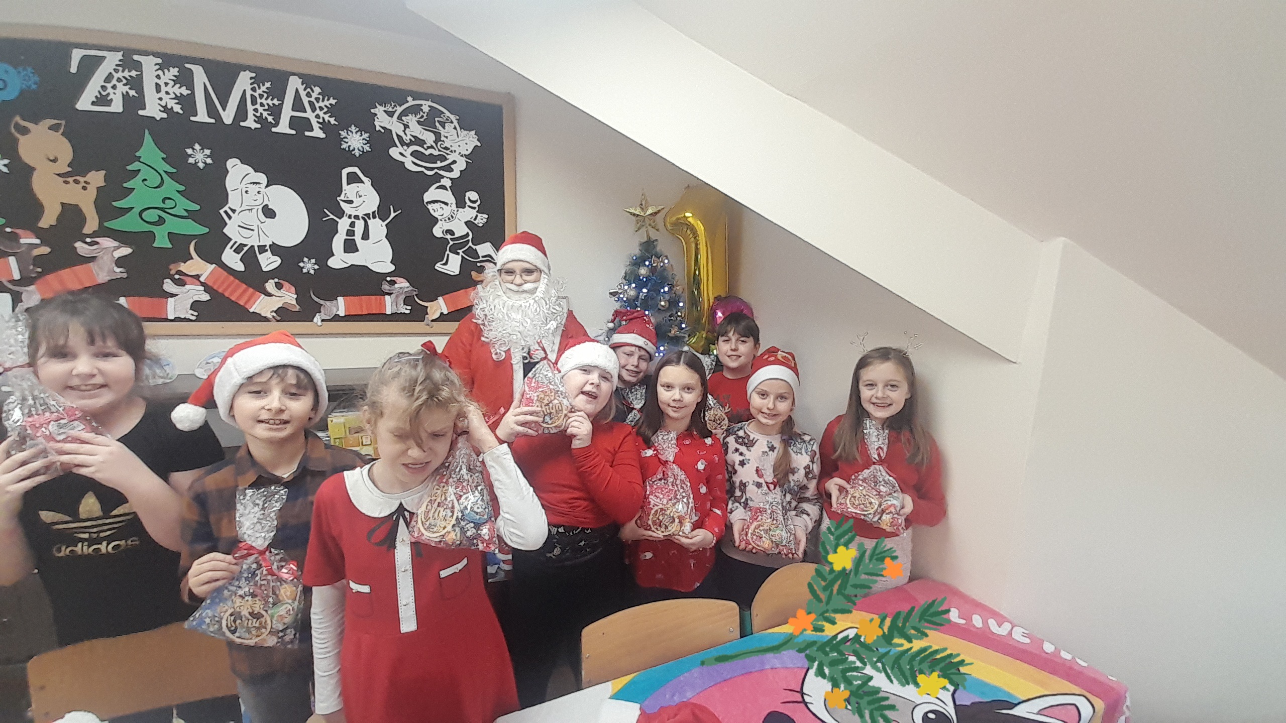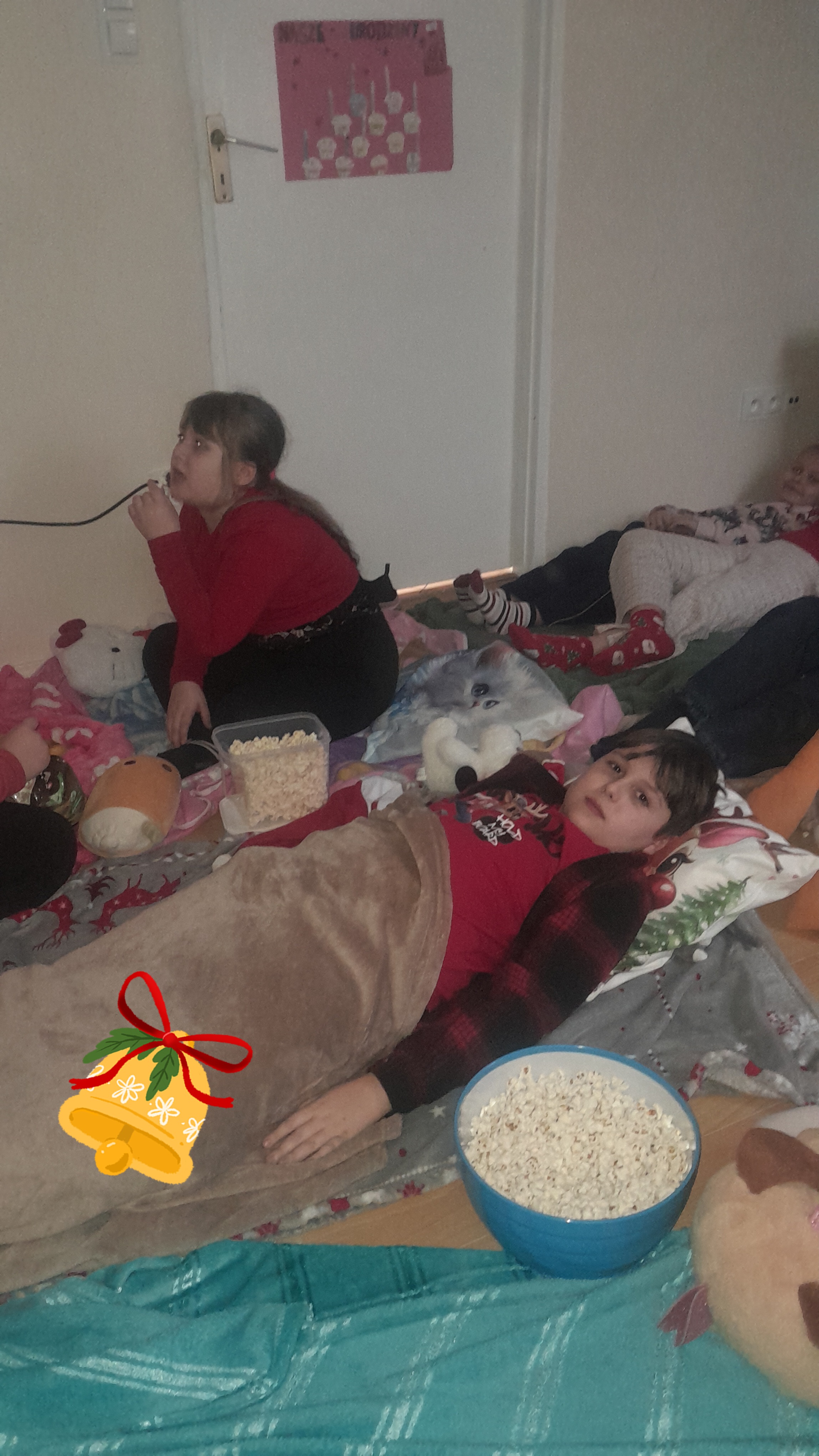 W piątek, 5 grudnia, klasa II przeżyła prawdziwą kinową przygodę! Sala szkolna zamieniła się w przytulną salę kinową, gdzie dzieci wygodnie rozłożyły się na kocach, przytulając swoje ulubione misie i delektując się popcornem. Na ekranie pojawił się „Kevin sam w domu” - film idealny, by poczuć magię nadchodzących Świąt! Największą niespodzianką była wizyta Mikołaja, który wręczył prezenty i wywołał mnóstwo radości. Ten wyjątkowy dzień, pełen śmiechu, słodkości i kinowych emocji, na pewno na długo zostanie w pamięci wszystkich drugoklasistów. Pozdrawiamy wszystkich w prawdziwie Mikołajkowym nastroju i życzymy wielu magicznych chwil oraz radości w tym świątecznym czasie!