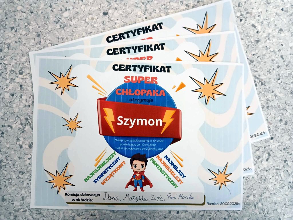 Z tej okazji dziewczynki wraz z wychowawczynią przygotowały dla chłopców z klasy miłą niespodziankę. Były serdeczne życzenia, dyplomy oraz drobne upominki, które wywołały uśmiech na twarzach chłopców. Nie zabrakło również wspólnego spędzania czasu w miłej atmosferze – pełnej radości, śmiechu i życzliwości.
