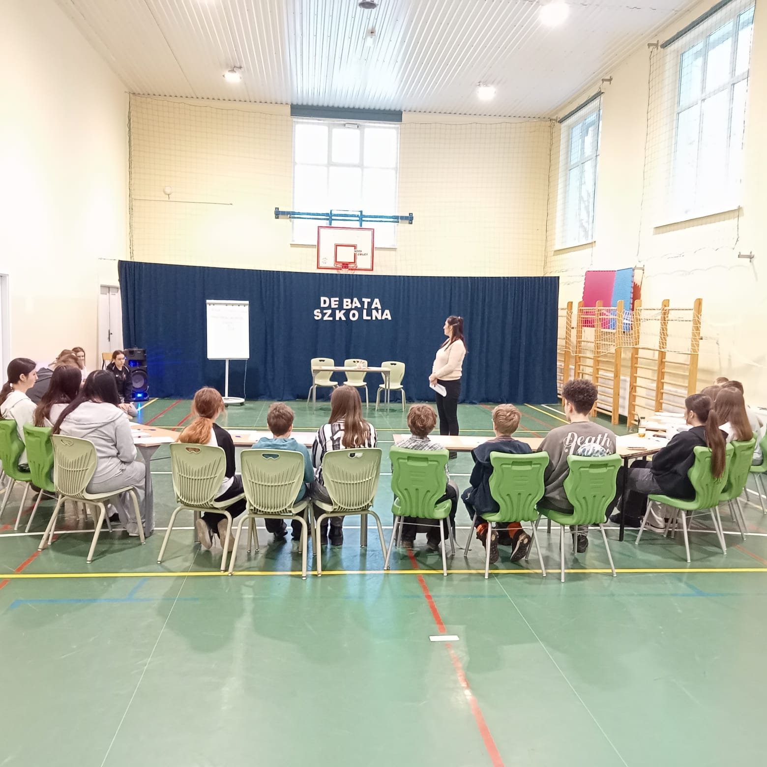 Po krótkim poczęstunku odbyła się debata pt. „Czy sztuczna inteligencja to pomoc w nauce, czy zagrożenie dla rozwoju uczniów?”. Przedstawiciele każdej szkoły pracowali w grupach, przygotowując rzeczowe argumenty. Młodzież chętnie dzieliła się swoimi pomysłami i opiniami.