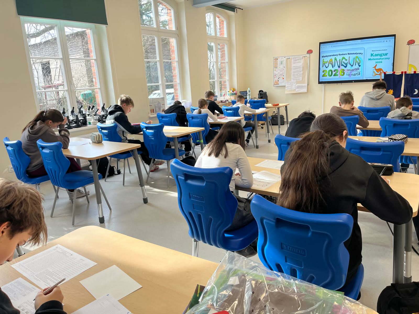 19 marca w naszej szkole odbyło się wyjątkowe wydarzenie, a mianowicie Międzynarodowy Konkurs „Kangur Matematyczny”. Uczniowie z różnych klas z entuzjazmem przystąpili do rywalizacji w kategoriach: Żaczek, Maluch, Beniamin oraz Kadet. Każdy z nich miał przed sobą nie lada wyzwanie , czyli 75 minut intensywnej pracy, wymagającej skupienia, logicznego myślenia i matematycznej kreatywności. Konkurs był sprawdzianem wiedzy, ale przede wszystkim okazją do rozwijania umiejętności analitycznych oraz treningiem dla mózgu. Na zakończenie każdy uczestnik otrzymał drobny upominek, który był miłym akcentem i podziękowaniem za udział oraz zaangażowanie. Najważniejsze jednak jest to, że wszyscy uczestnicy pokazali, iż łączy ich wspólna pasja , zamiłowanie do logicznych zadań i odkrywania matematycznych tajemnic.