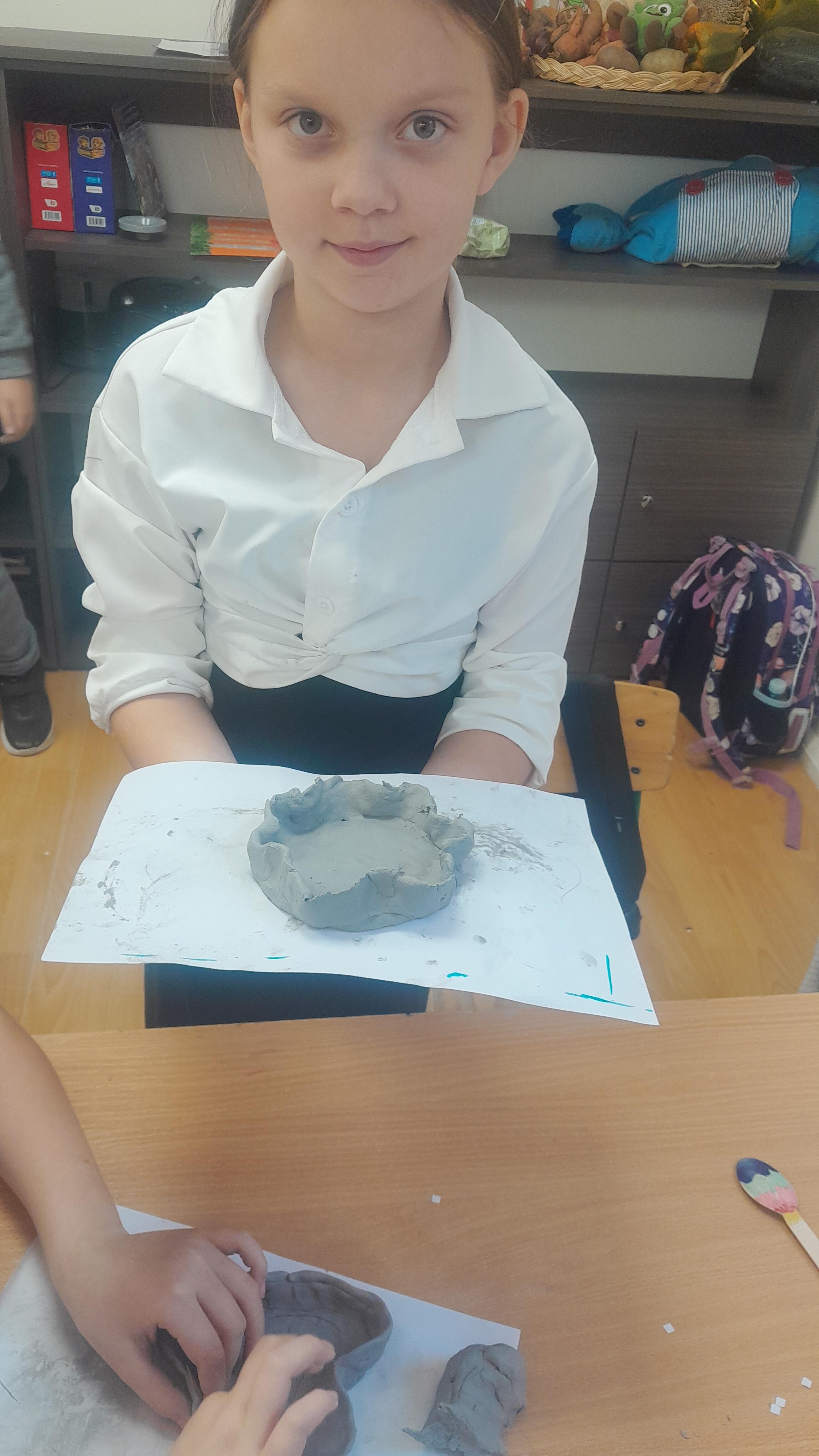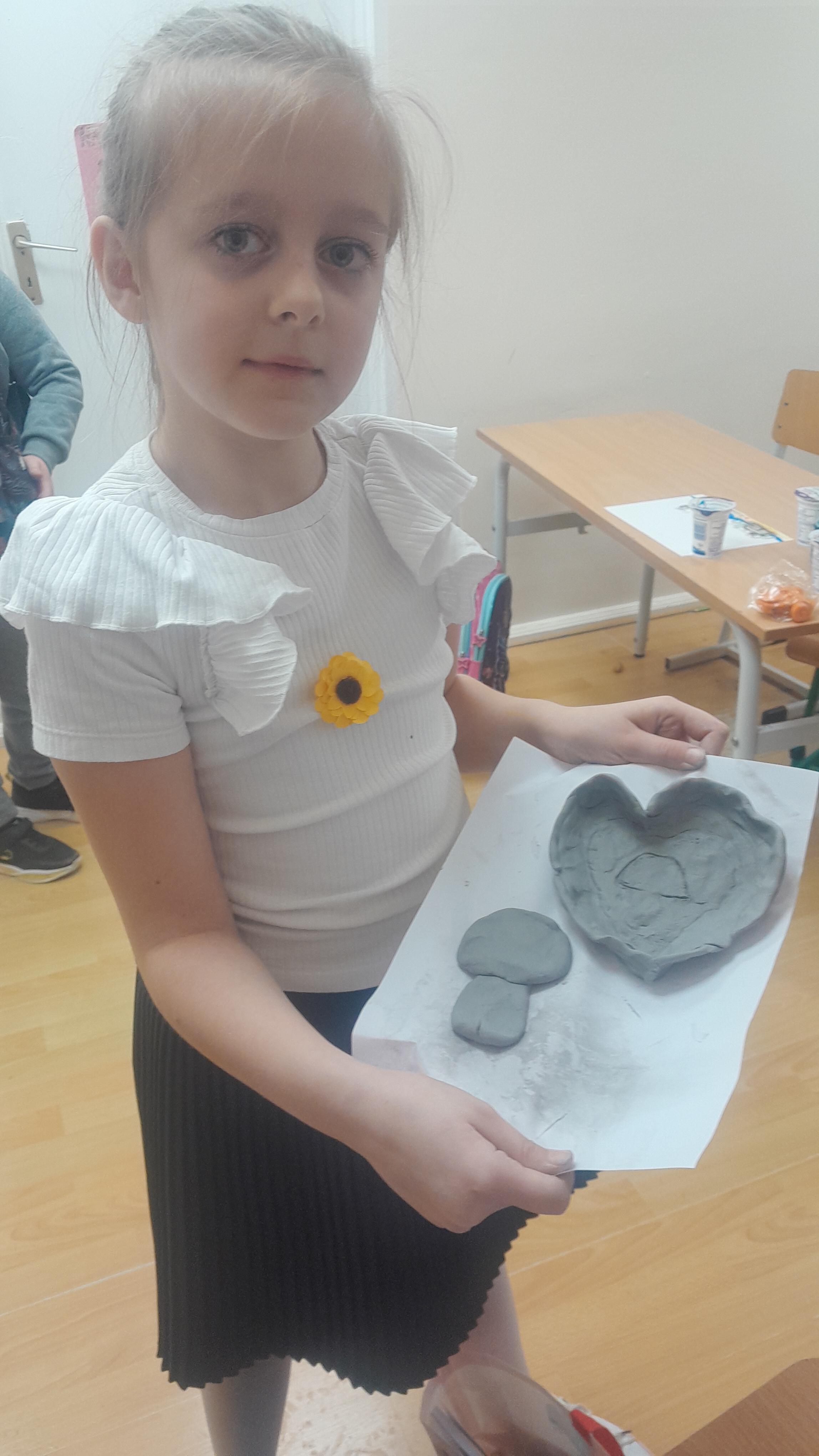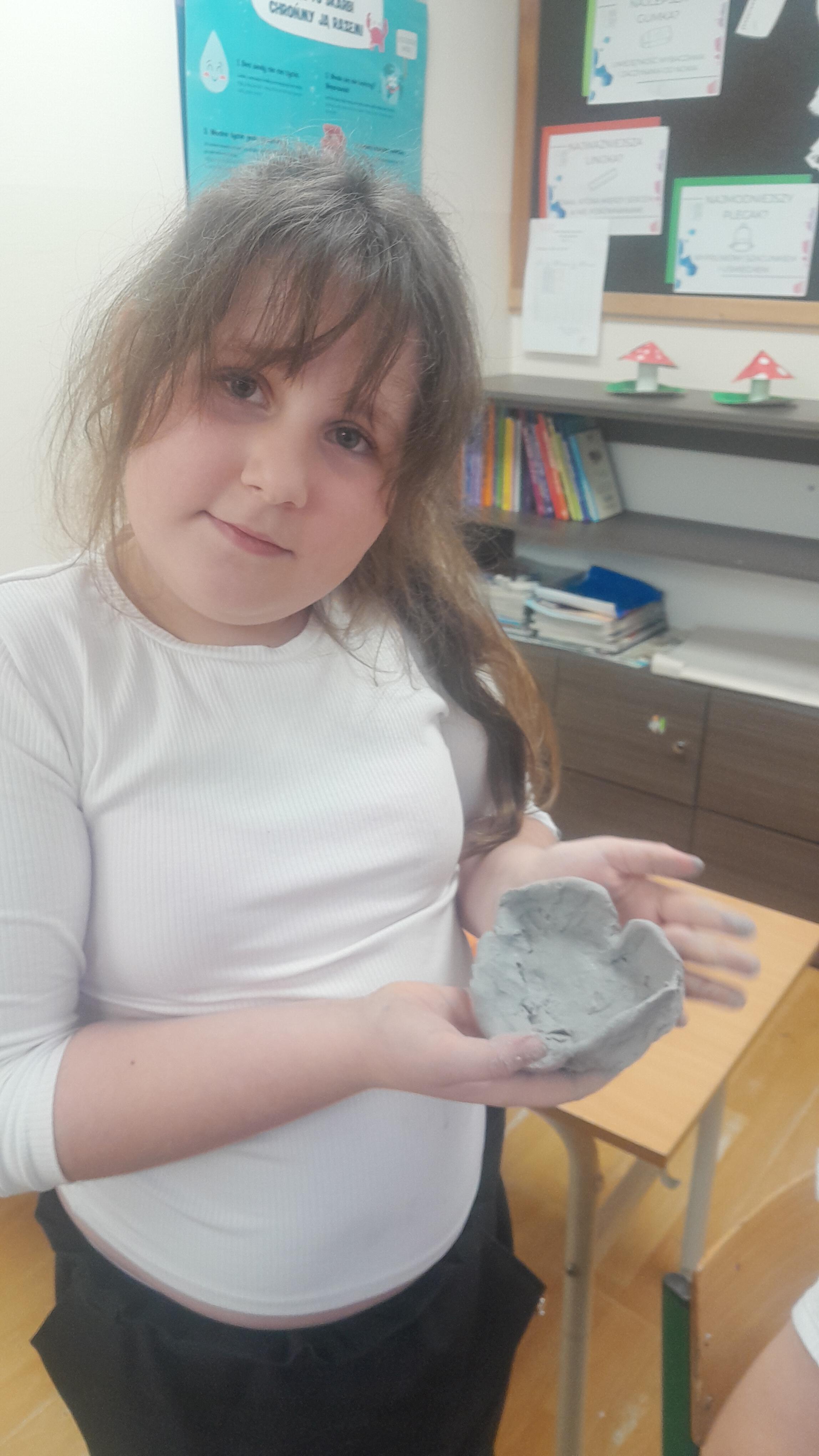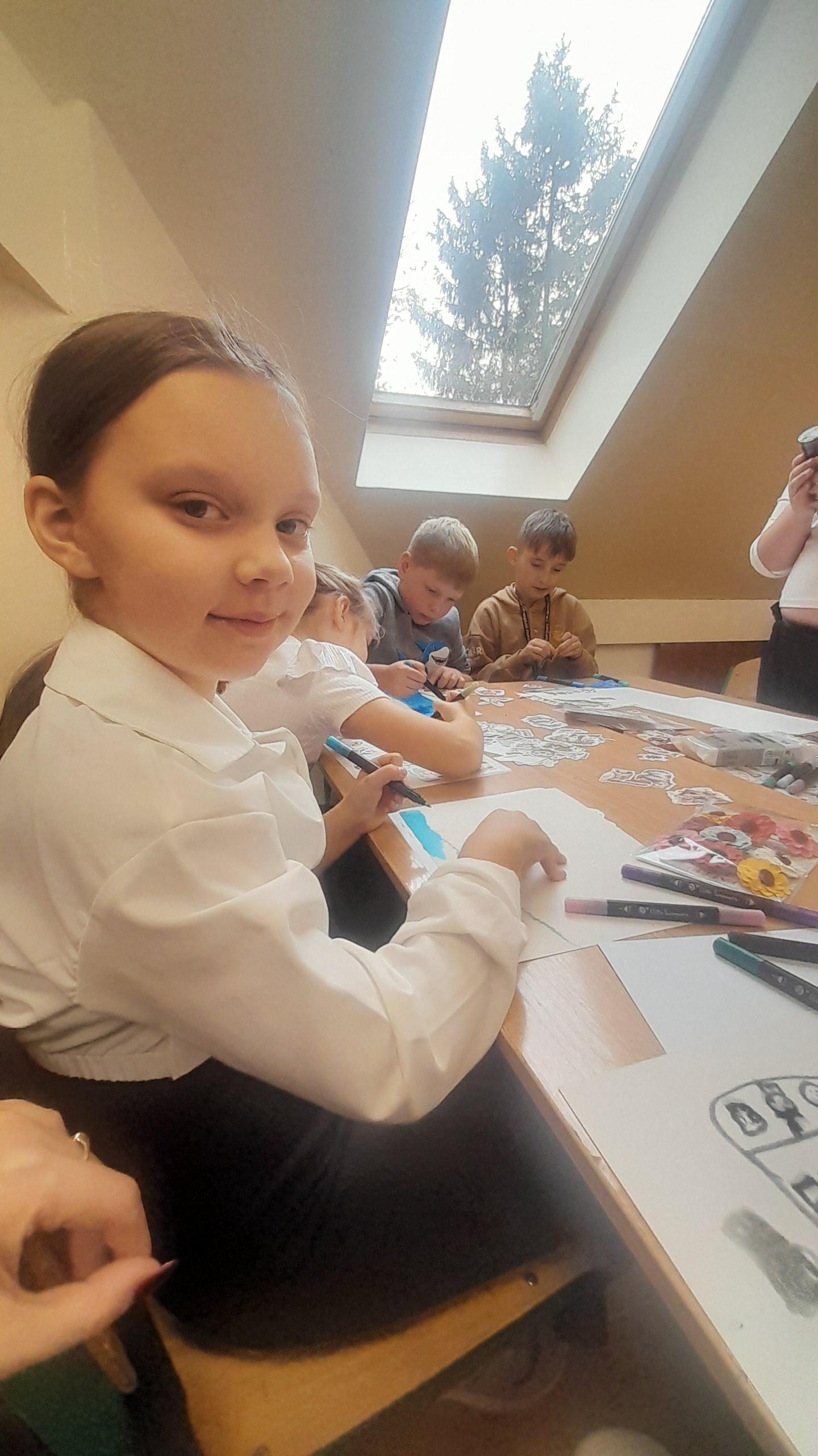 W każdy czwartek w klasie drugiej odbywają się wyjątkowe zajęcia, podczas których uczniowie często wcielają się w rolę prowadzących. To wspaniała okazja, by podzielić się swoimi pasjami, pomysłami i nauczyć koleżanki oraz kolegów czegoś nowego. Tym razem pomysłodawczynią zajęć była Kaja Mroczek – dziewczynka, która uwielbia wszelkie zajęcia plastyczne. Już od początku było widać, że Kaja doskonale przygotowała swoje spotkanie i z prawdziwym zaangażowaniem poprowadziła zajęcia. Na początku uczniowie tworzyli własne obrazki, korzystając z mazaków, kredek, kolorowych taśm, wyklejanek i różnych ozdobnych materiałów przyniesionych przez Kaję. Pomysły dzieci zaskakiwały swoją oryginalnością, a nasza artystka z uśmiechem podpowiadała, jak łączyć kolory i wzory. W drugiej części zajęć przyszedł czas na lepienie z suszonej powietrzem modeliny, przypominającej glinę. Powstały wyjątkowe figurki i ozdoby – każda inna, każda piękna! Kaja cierpliwie pomagała kolegom i koleżankom, a jej entuzjazm udzielił się wszystkim. Zajęcia były pełne twórczej radości, współpracy i dobrej zabawy. Cała klasa świetnie się bawiła, a prowadząca poradziła sobie z nową rolą znakomicie. Brawo, Kaju! Dziękujemy Ci za pomysł, staranne przygotowanie i cudowną atmosferę, jaką stworzyłaś. Twoja kreatywność i zaangażowanie są prawdziwą inspiracją dla całej klasy!
