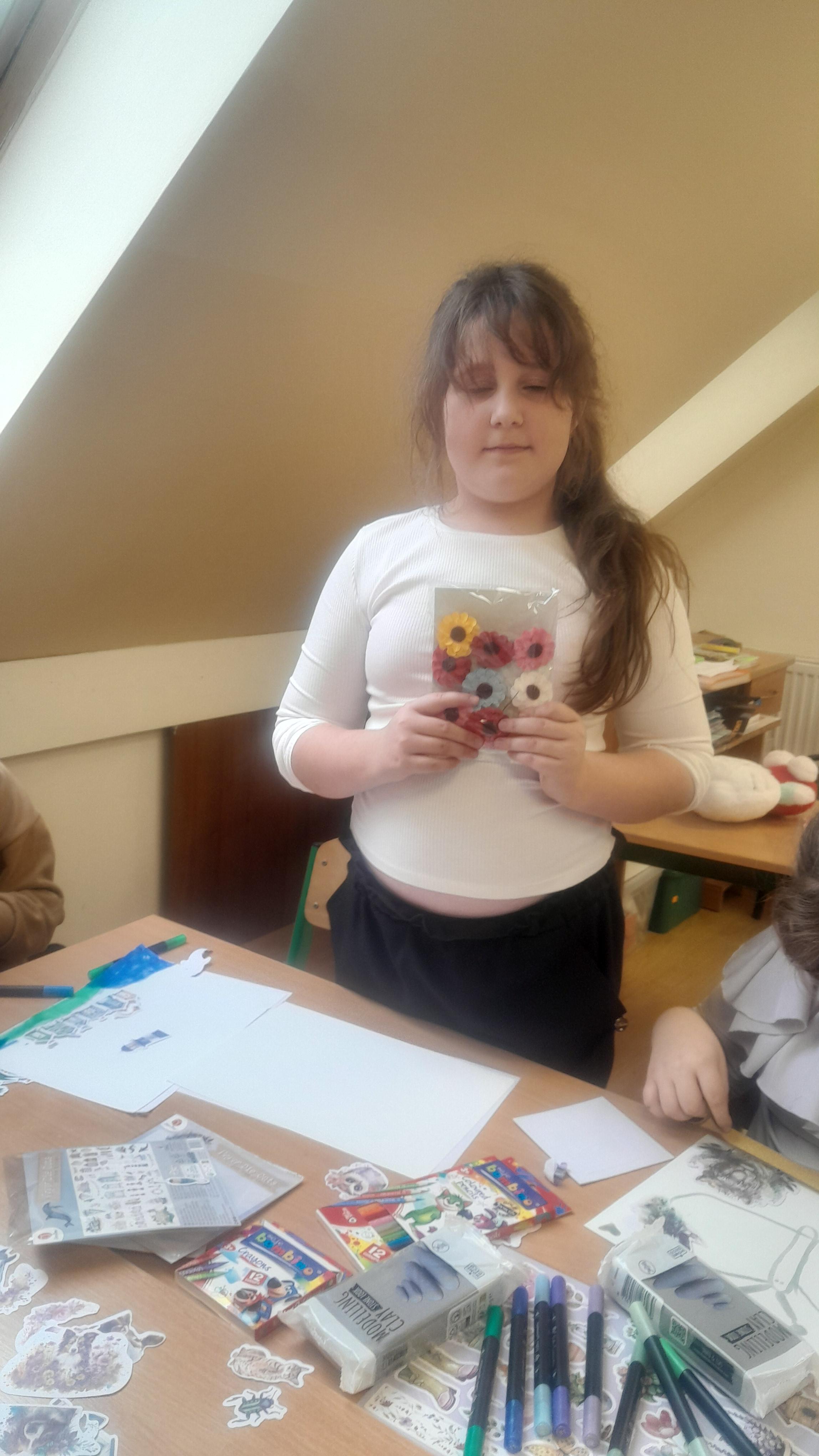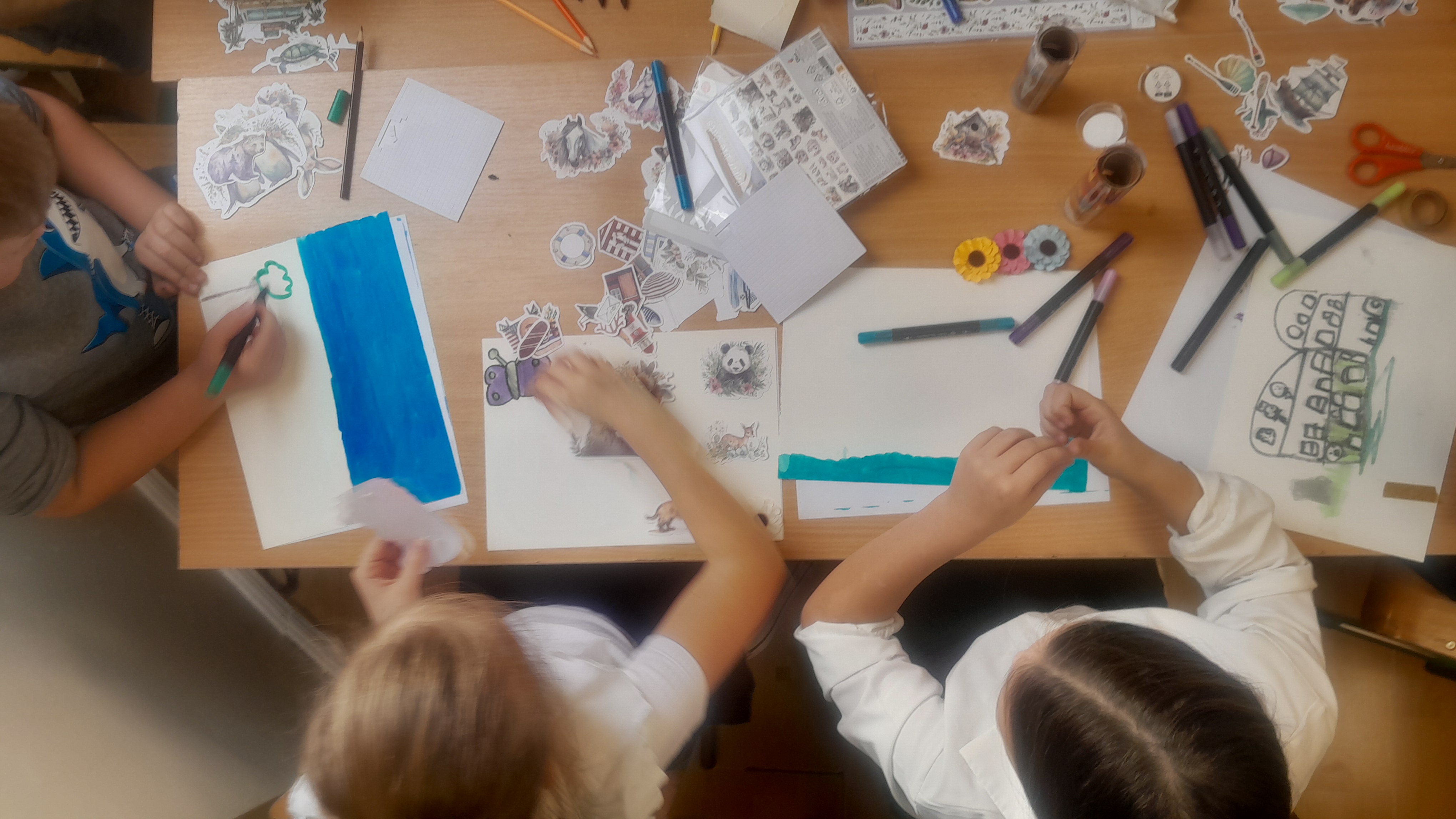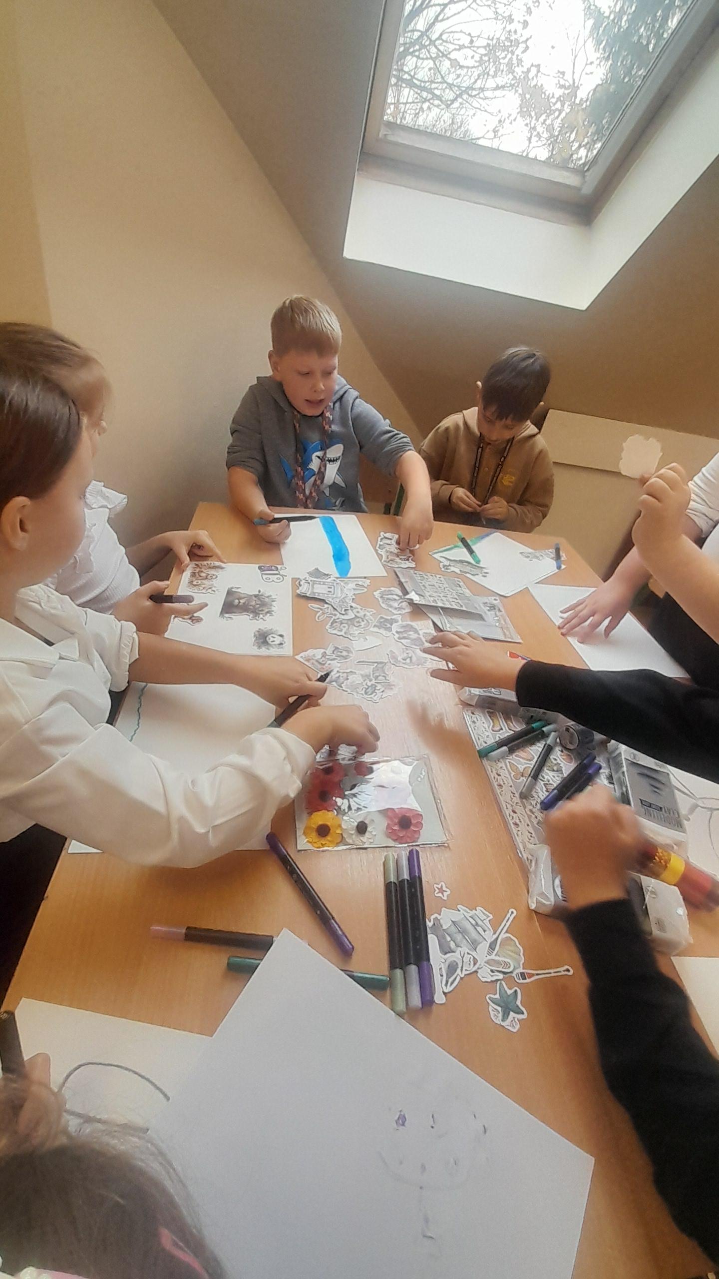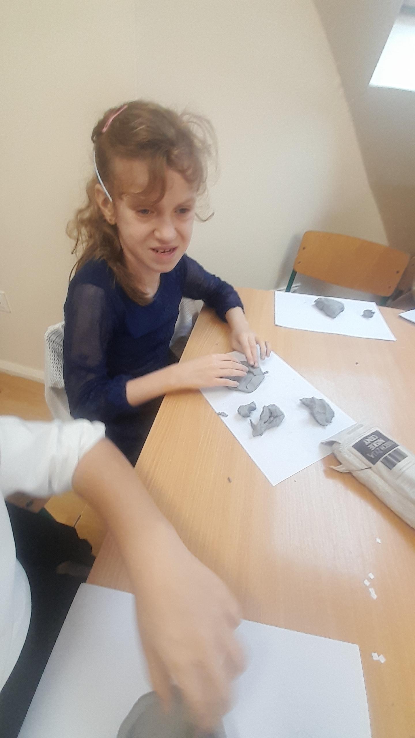 W każdy czwartek w klasie drugiej odbywają się wyjątkowe zajęcia, podczas których uczniowie często wcielają się w rolę prowadzących. To wspaniała okazja, by podzielić się swoimi pasjami, pomysłami i nauczyć koleżanki oraz kolegów czegoś nowego. Tym razem pomysłodawczynią zajęć była Kaja Mroczek – dziewczynka, która uwielbia wszelkie zajęcia plastyczne. Już od początku było widać, że Kaja doskonale przygotowała swoje spotkanie i z prawdziwym zaangażowaniem poprowadziła zajęcia. Na początku uczniowie tworzyli własne obrazki, korzystając z mazaków, kredek, kolorowych taśm, wyklejanek i różnych ozdobnych materiałów przyniesionych przez Kaję. Pomysły dzieci zaskakiwały swoją oryginalnością, a nasza artystka z uśmiechem podpowiadała, jak łączyć kolory i wzory. W drugiej części zajęć przyszedł czas na lepienie z suszonej powietrzem modeliny, przypominającej glinę. Powstały wyjątkowe figurki i ozdoby – każda inna, każda piękna! Kaja cierpliwie pomagała kolegom i koleżankom, a jej entuzjazm udzielił się wszystkim. Zajęcia były pełne twórczej radości, współpracy i dobrej zabawy. Cała klasa świetnie się bawiła, a prowadząca poradziła sobie z nową rolą znakomicie. Brawo, Kaju! Dziękujemy Ci za pomysł, staranne przygotowanie i cudowną atmosferę, jaką stworzyłaś. Twoja kreatywność i zaangażowanie są prawdziwą inspiracją dla całej klasy!