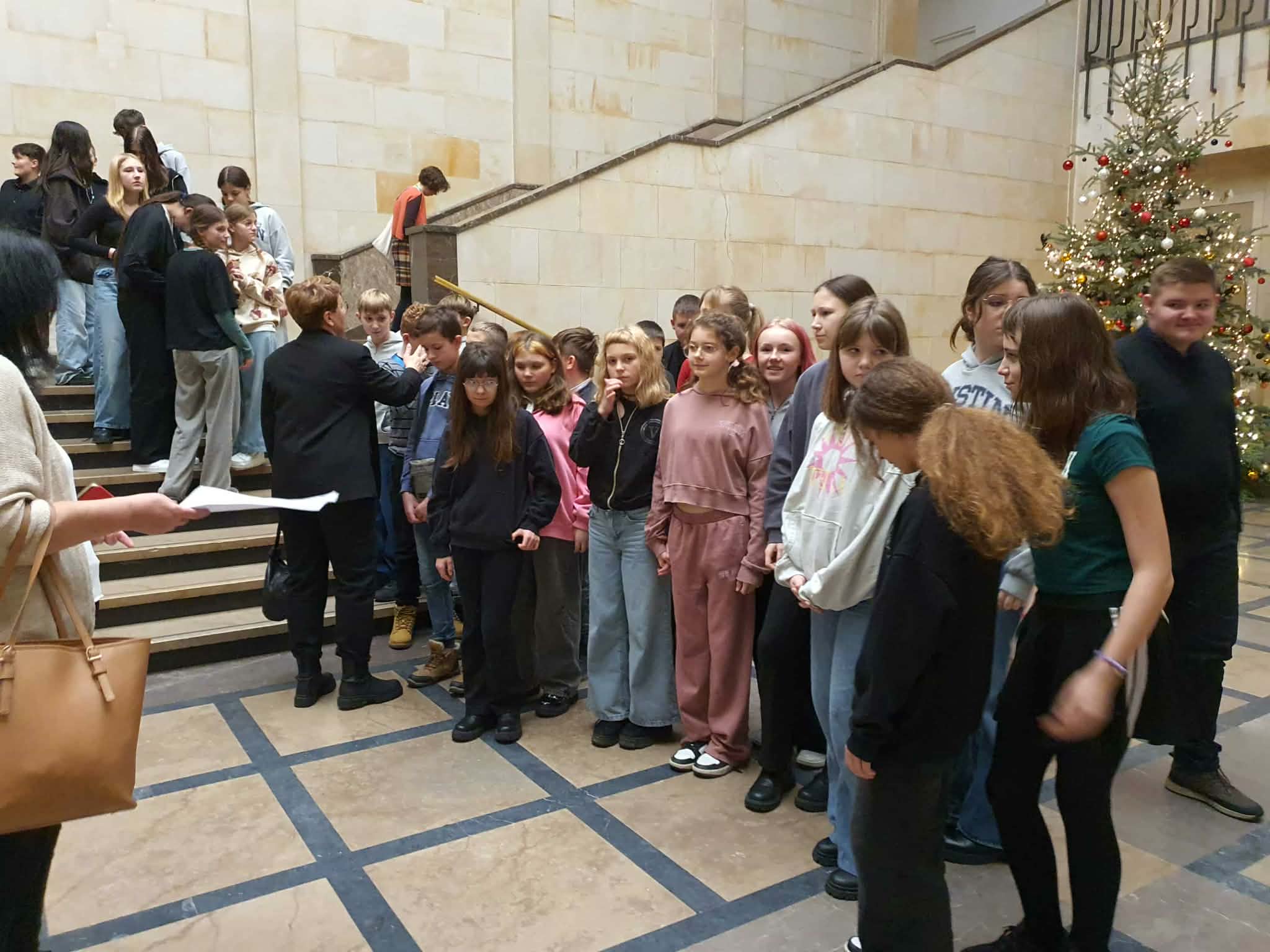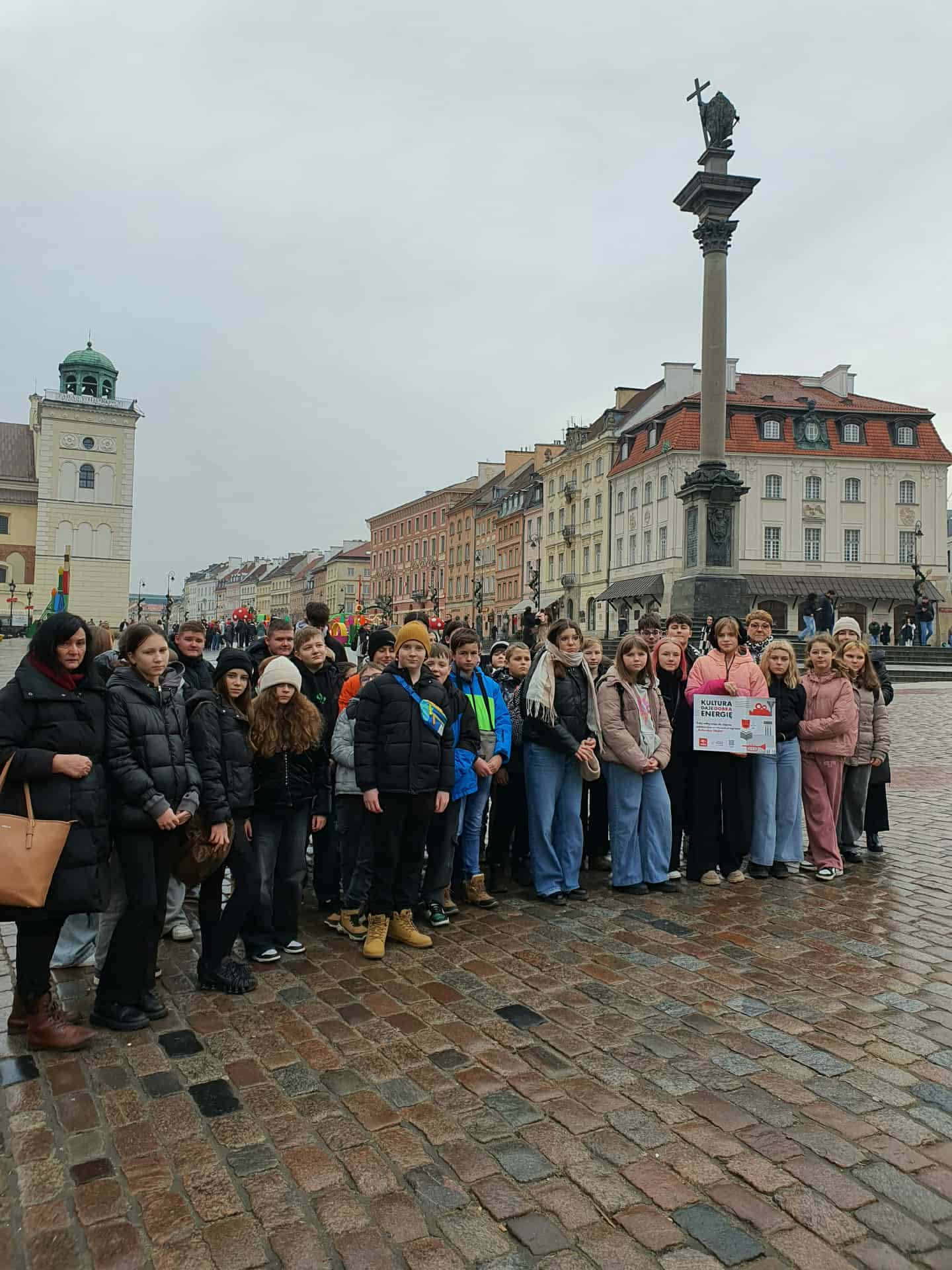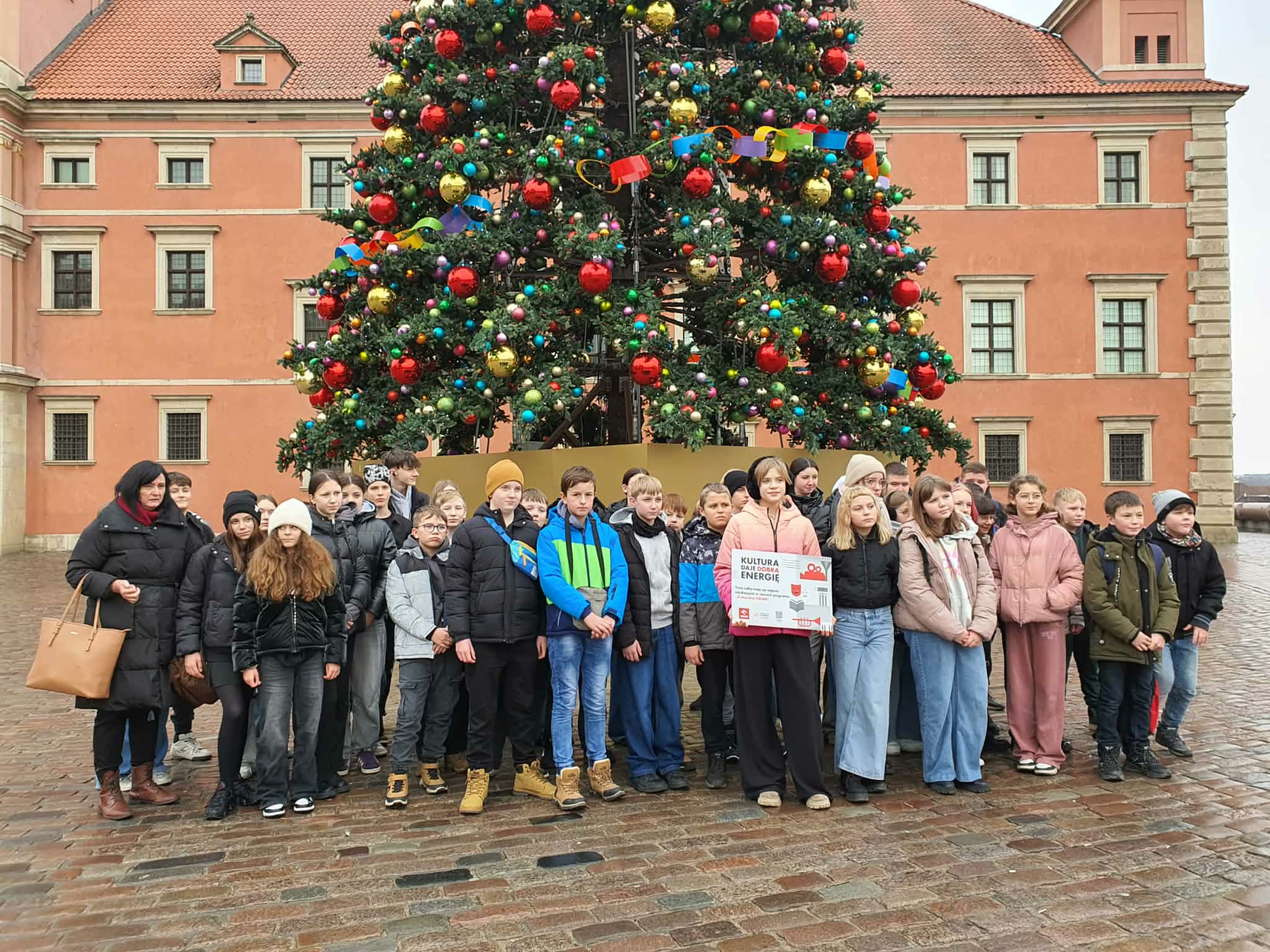 W dniu 10 grudnia uczniowie wyjechali do Warszawy do Muzeum Narodowego. Brali udział w lekcjach muzealnych pt. „Co mówią obrazy”, „Muzealne przeboje”. Lekcja muzealna „Co mówią obrazy”- pomogła uczniom odkryć historie, symbole i techniki ukryte w dziełach malarstwa polskiego i europejskiego, ucząc interpretacji dzieła sztuki w kontekście epoki i artysty. Edukacja stanowiła świetne uzupełnienie szkolnej historii i plastyki. W ten sposób uczniowie mogli rozwijać swoją wrażliwość estetyczną i umiejętność analizy wizualnej. Podczas lekcji muzealnej „Muzealne przeboje” uczestnicy wybrali się w podróż przez najbardziej znane dzieła z kolekcji muzeum. W bardzo przystępny sposób edukatorzy odkrywali „perełki” kolekcji, które cieszą się największą popularnością i mają kluczowe znaczenie dla zrozumienia sztuki. To tematyczne zwiedzanie łączyło elementy zabawy z nauką, a jednocześnie skupiało się na sztukach wizualnych. W czasie pobytu w Warszawie uczniowie zwiedzili Królewskie Ogrody Świateł w Wilanowie. Wielka zimowa wystawa plenerowa z instalacjami LED, która odbywa się w historycznych ogrodach przy Pałacu w Wilanowie wzbudziła zachwyt wszystkich zwiedzających. Magiczne widowisko z tysiącami kolorowych świateł stał się interesującym miejscem, w którym dzieci mogły rozwijać wyobraźnię, uczyły się orientacji w przestrzeni, a światła i dźwięki pobudzały zmysł wzroku i słuchu. Czas spędzony w historycznych ogrodach wilanowskich w subtelny sposób przybliżył dzieciom piękno architektury i przyrody a jednocześnie połączył rozrywkę z elementami edukacji.Pobyt w Teatrze Muzycznym ROMA na musicalu „WICKED”-musical opowiada historię przyjaźni między dwoma młodymi kobietami: Elfabą, która znana jest jako zła Czarownica z Zachodu, Glindą, która słynie jako Dobra Czarownica z Północy. Fabuła odnosi się do stereotypów w postrzeganiu dobra i zła. Uczniowie nie tylko mogli być w miejscu rozrywki, ale także w instytucji, która wspiera rozwój dzieci, dostarczając im wartościowych doświadczeń kulturalnych. Poznanie magii sceny, scenografii, kostiumów, charakteryzacji- to skuteczny sposób, który łączy zabawę z nauką,a jednocześnie odrywa od świata wirtualnego. Dla dzieci ze środowisk wiejskich przebywanie w instytucjach kultury ma duże znaczenie w obszarze wyrównywania szans do wysokiej jakości edukacji i kultury aby w ten sposób pobudzić talenty oraz tworzyć alternatywę dla wirtualnego świata.