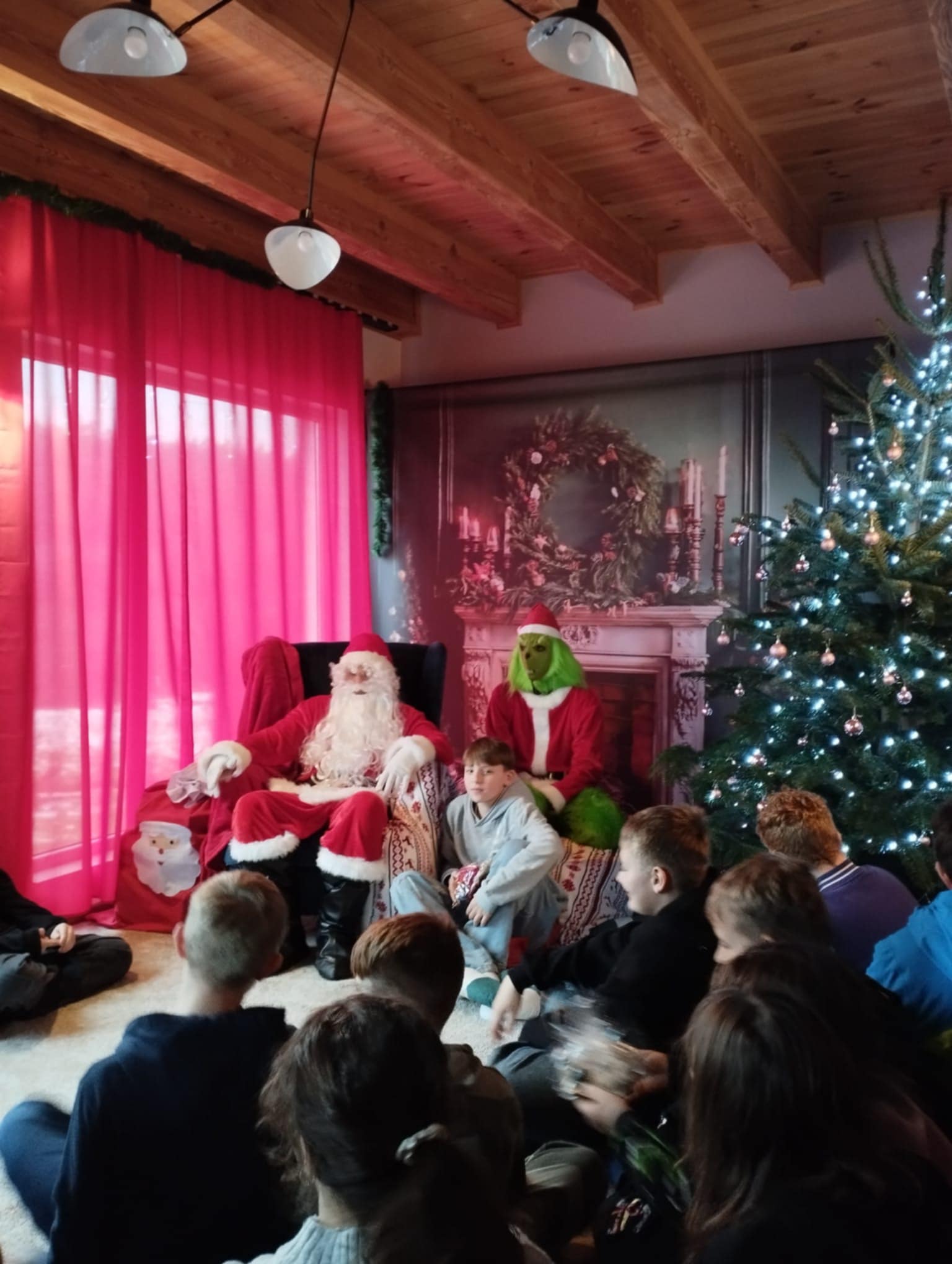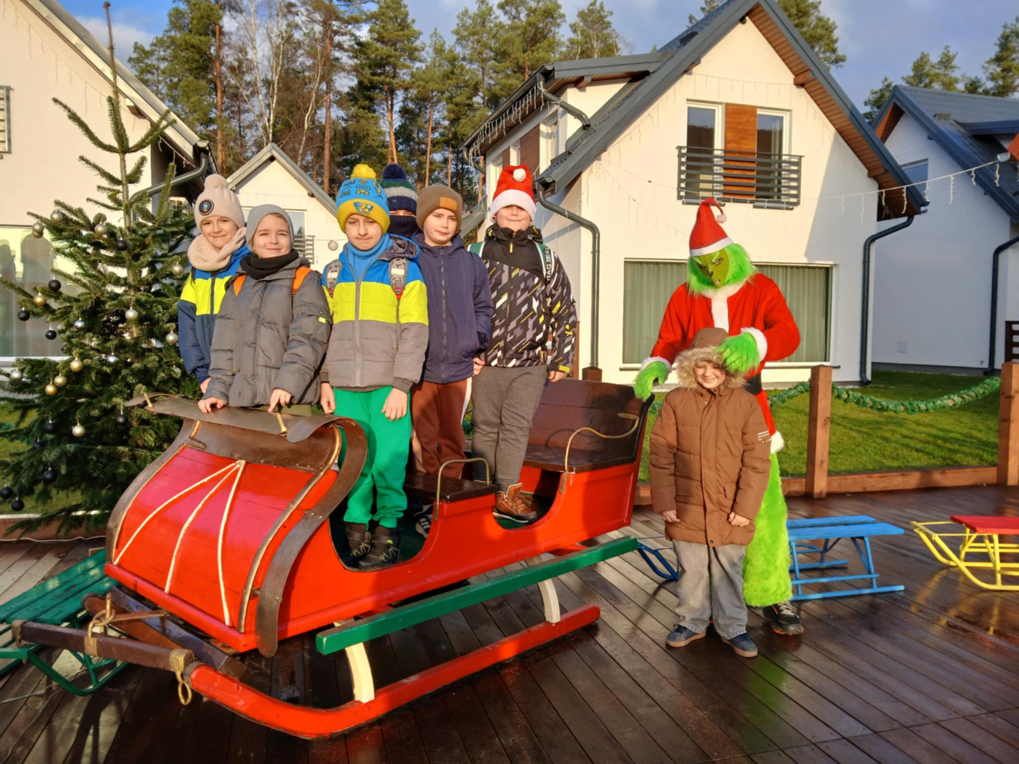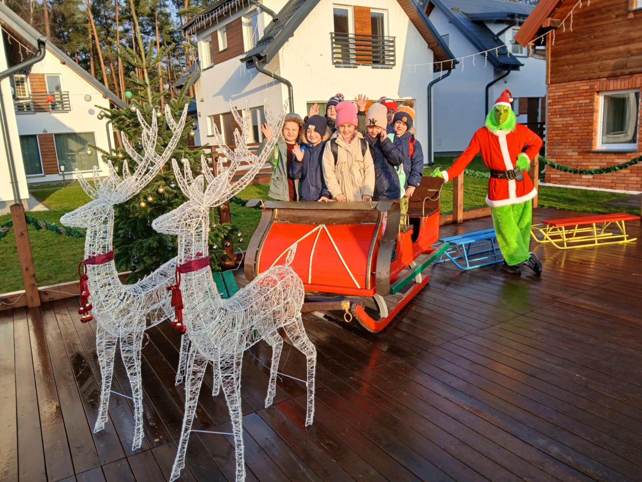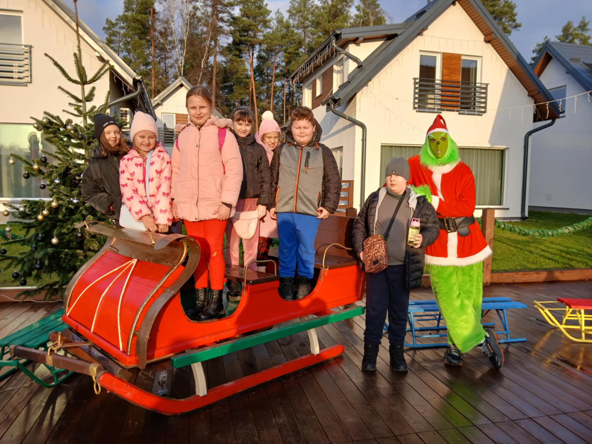 W sercu urokliwej miejscowości Faltyjanki, pośród malowniczych zimowych krajobrazów, na dzieci ze Szkoły Podstawowej im. ks. Jana Twardowskiego w Rumianie czekała wyjątkowa świąteczna przygoda. Przedszkolaki oraz uczniowie klas I - VIII wraz ze swoimi wychowawcami wzięli udział w wycieczkach do Wioski Świętego Mikołaja, zorganizowanych w trzech terminach. Każda z wizyt obfitowała w radość, uśmiech i niezapomniane przeżycia. Już od progu naszych uczniów witała magiczna atmosfera – bajkowe dekoracje, zimowa sceneria oraz dźwięki świątecznych melodii tworzyły wyjątkowy klimat. Najważniejszym punktem programu było oczywiście spotkanie z prawdziwym Świętym Mikołajem. Dzieci mogły porozmawiać z Mikołajem, zrobić pamiątkowe zdjęcie oraz opowiedzieć o swoich świątecznych marzeniach. Mikołaj nie zapomniał o żadnym z uczestników i każdy otrzymał od niego piękny, świąteczny prezent. Pod czujnym okiem elfów dzieci tworzyły własne świąteczne stroiki, rozwijając kreatywność i zdolności manualne. Kolejną atrakcją było pieczenie i dekorowanie pierników. Zapach korzennych przypraw unosił się w powietrzu, wprowadzając wszystkich w prawdziwie świąteczny nastrój. Dużo emocji wzbudziło także spotkanie z Grinchem, który wprowadził odrobinę humorystycznego zamieszania. Psoty, żarty i zabawne interakcje sprawiły, że szybko stał się jednym z ulubieńców dzieci. Z jego udziałem zorganizowano konkurs plastyczny na najładniejszy rysunek Grincha. Cieszył się on ogromnym zainteresowaniem i pobudził w uczestnikach ducha twórczej rywalizacji. Po pełnym atrakcji pobycie na dzieci czekał jeszcze pyszny, ciepły obiad, który był miłym zakończeniem całej wizyty i pozwolił wszystkim odpocząć po intensywnym, radosnym dniu. Wyjazd do Wioski Świętego Mikołaja w Faltyjankach był dla dzieci nie tylko okazją do świetnej zabawy, lecz także do integracji, wspólnego spędzenia czasu i poczucia magii zbliżających się świąt. Uczestnicy wrócili do domów z uśmiechami na twarzach, własnoręcznie wykonanymi ozdobami oraz bagażem pięknych, świątecznych wspomnień. Pragniemy serdecznie podziękować Gospodarzom Wioski Świętego Mikołaja za wspaniały pobyt, ciepłe przyjęcie i wyjątkową gościnność, Bądźcie pewni, że ten dzień na długo pozostanie w pamięci dzieci i opiekunów. Pozdrawiamy i zapraszamy na fotorelacje.