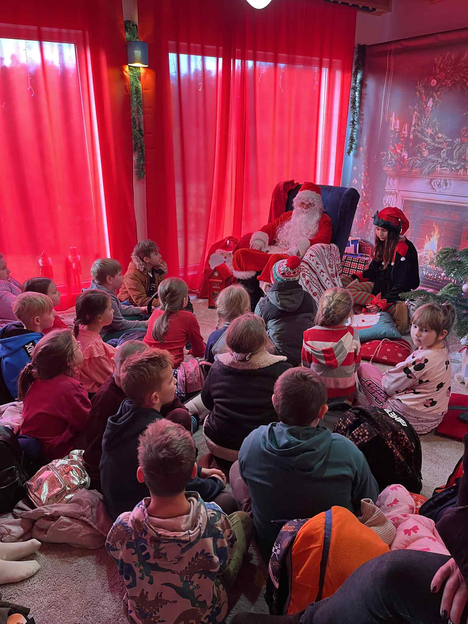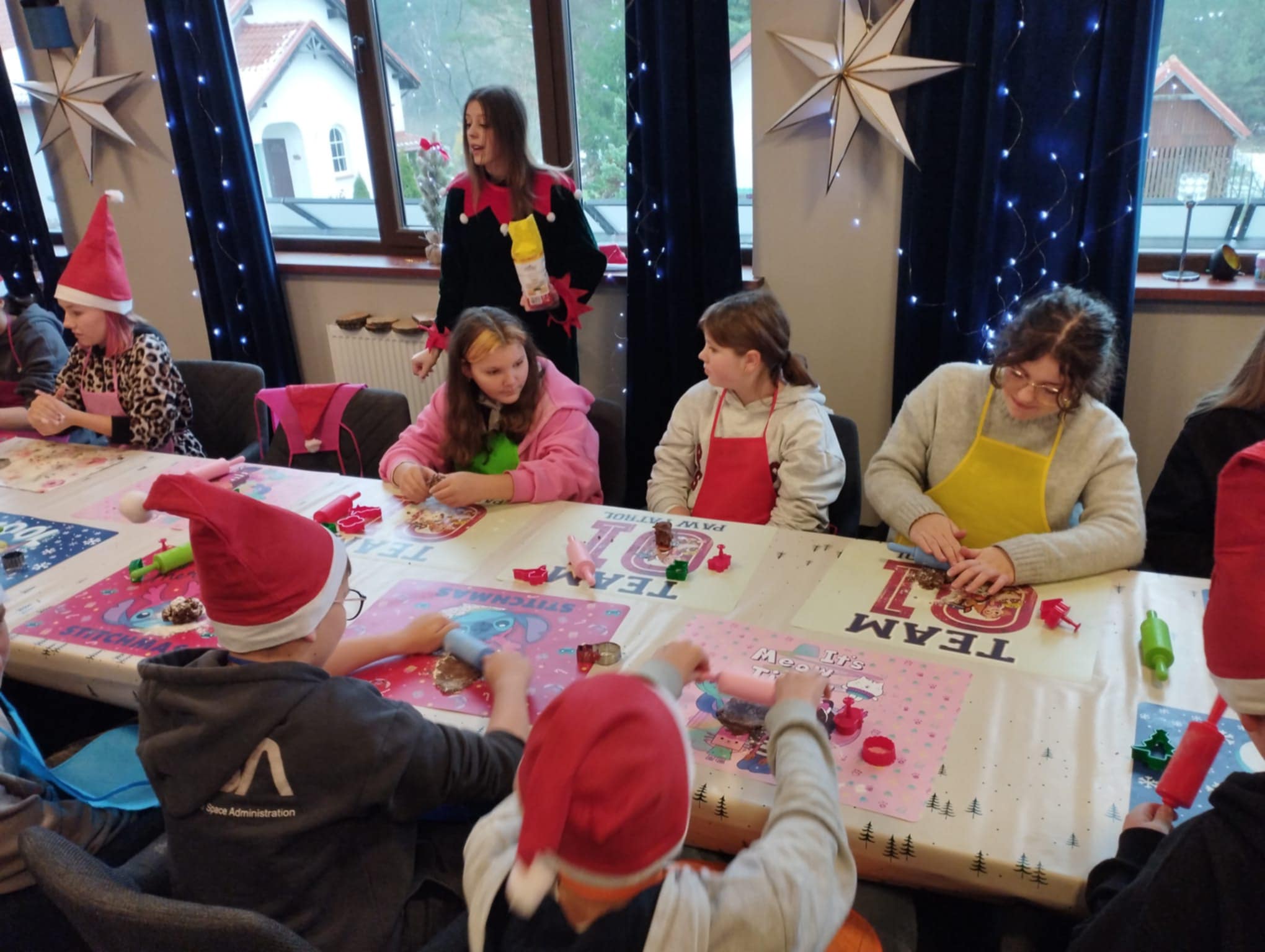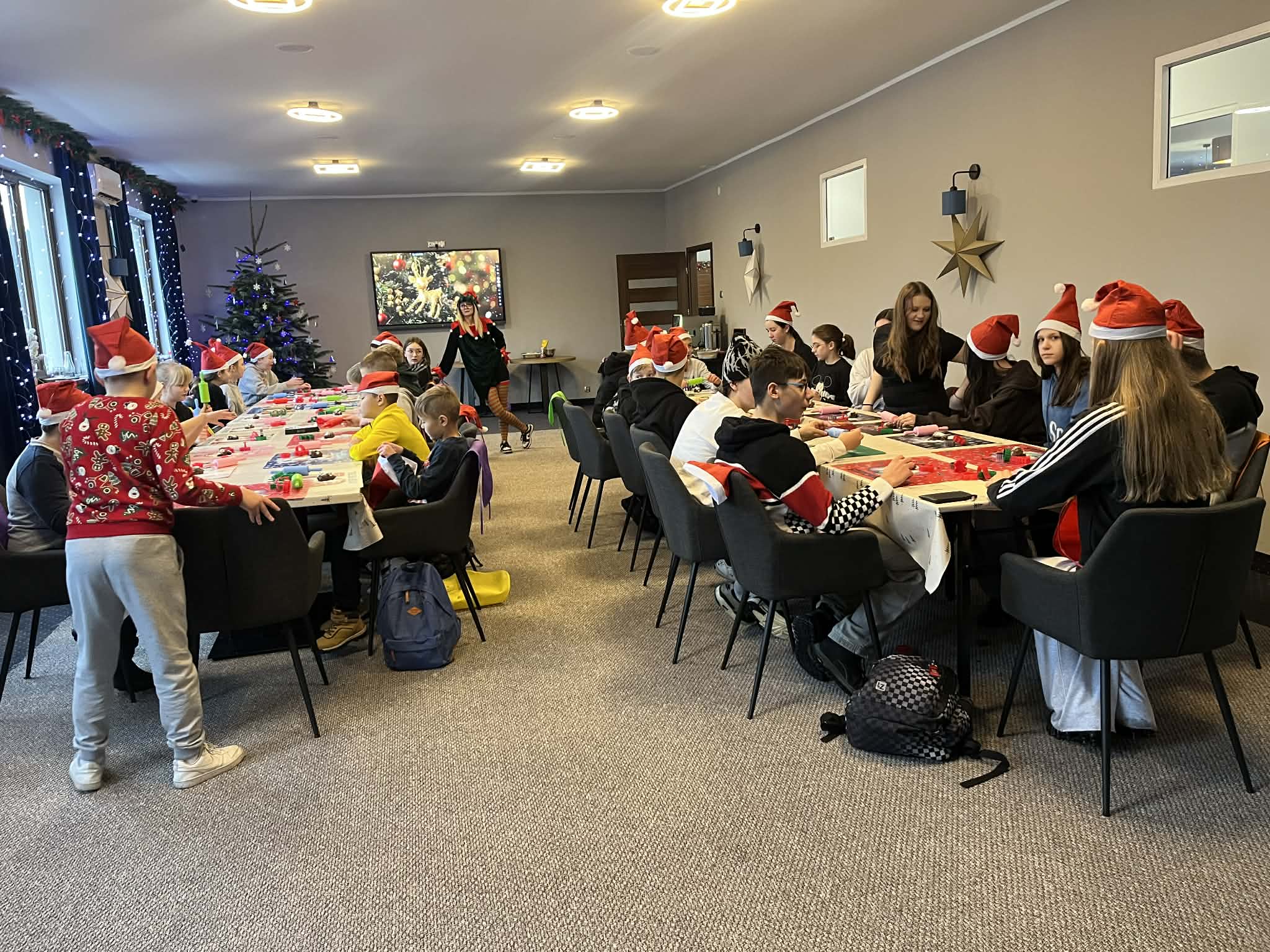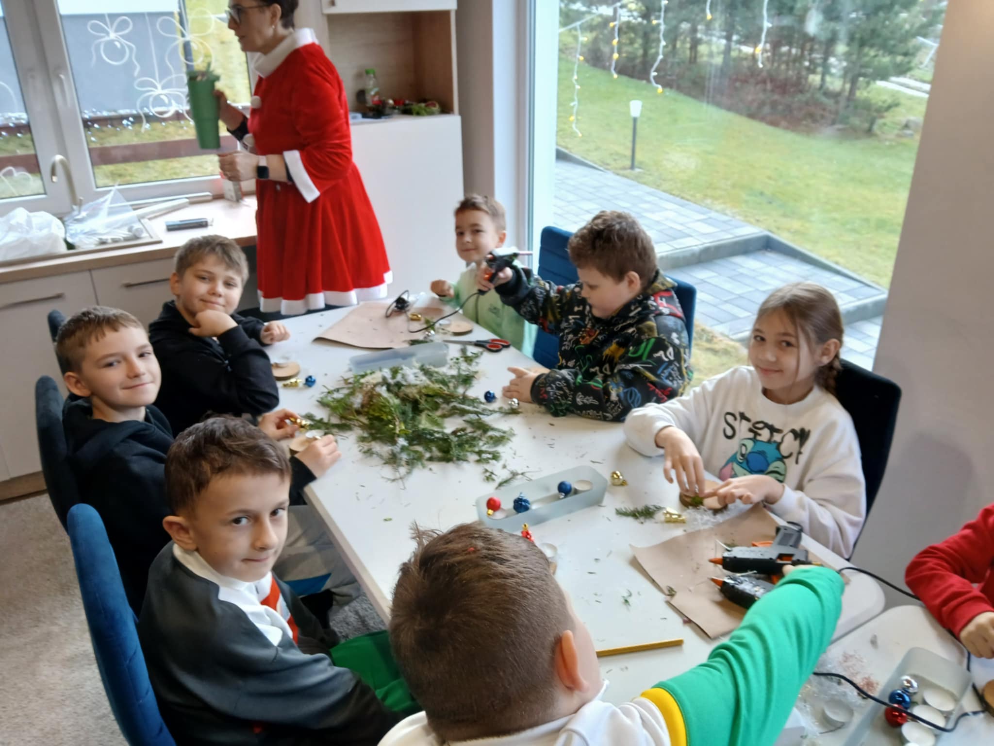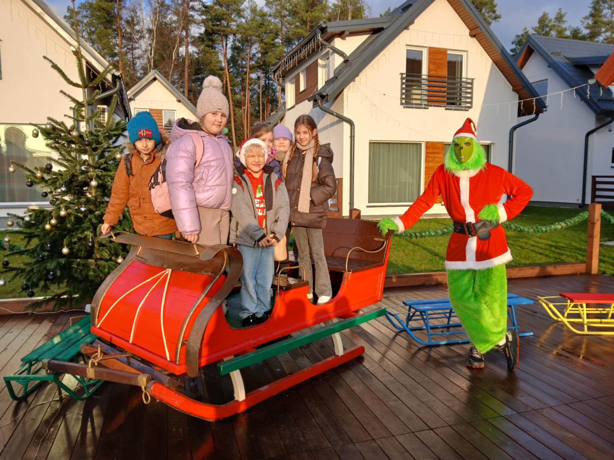 W sercu urokliwej miejscowości Faltyjanki, pośród malowniczych zimowych krajobrazów, na dzieci ze Szkoły Podstawowej im. ks. Jana Twardowskiego w Rumianie czekała wyjątkowa świąteczna przygoda. Przedszkolaki oraz uczniowie klas I - VIII wraz ze swoimi wychowawcami wzięli udział w wycieczkach do Wioski Świętego Mikołaja, zorganizowanych w trzech terminach. Każda z wizyt obfitowała w radość, uśmiech i niezapomniane przeżycia. Już od progu naszych uczniów witała magiczna atmosfera – bajkowe dekoracje, zimowa sceneria oraz dźwięki świątecznych melodii tworzyły wyjątkowy klimat. Najważniejszym punktem programu było oczywiście spotkanie z prawdziwym Świętym Mikołajem. Dzieci mogły porozmawiać z Mikołajem, zrobić pamiątkowe zdjęcie oraz opowiedzieć o swoich świątecznych marzeniach. Mikołaj nie zapomniał o żadnym z uczestników i każdy otrzymał od niego piękny, świąteczny prezent. Pod czujnym okiem elfów dzieci tworzyły własne świąteczne stroiki, rozwijając kreatywność i zdolności manualne. Kolejną atrakcją było pieczenie i dekorowanie pierników. Zapach korzennych przypraw unosił się w powietrzu, wprowadzając wszystkich w prawdziwie świąteczny nastrój. Dużo emocji wzbudziło także spotkanie z Grinchem, który wprowadził odrobinę humorystycznego zamieszania. Psoty, żarty i zabawne interakcje sprawiły, że szybko stał się jednym z ulubieńców dzieci. Z jego udziałem zorganizowano konkurs plastyczny na najładniejszy rysunek Grincha. Cieszył się on ogromnym zainteresowaniem i pobudził w uczestnikach ducha twórczej rywalizacji. Po pełnym atrakcji pobycie na dzieci czekał jeszcze pyszny, ciepły obiad, który był miłym zakończeniem całej wizyty i pozwolił wszystkim odpocząć po intensywnym, radosnym dniu. Wyjazd do Wioski Świętego Mikołaja w Faltyjankach był dla dzieci nie tylko okazją do świetnej zabawy, lecz także do integracji, wspólnego spędzenia czasu i poczucia magii zbliżających się świąt. Uczestnicy wrócili do domów z uśmiechami na twarzach, własnoręcznie wykonanymi ozdobami oraz bagażem pięknych, świątecznych wspomnień. Pragniemy serdecznie podziękować Gospodarzom Wioski Świętego Mikołaja za wspaniały pobyt, ciepłe przyjęcie i wyjątkową gościnność, Bądźcie pewni, że ten dzień na długo pozostanie w pamięci dzieci i opiekunów. Pozdrawiamy i zapraszamy na fotorelacje.