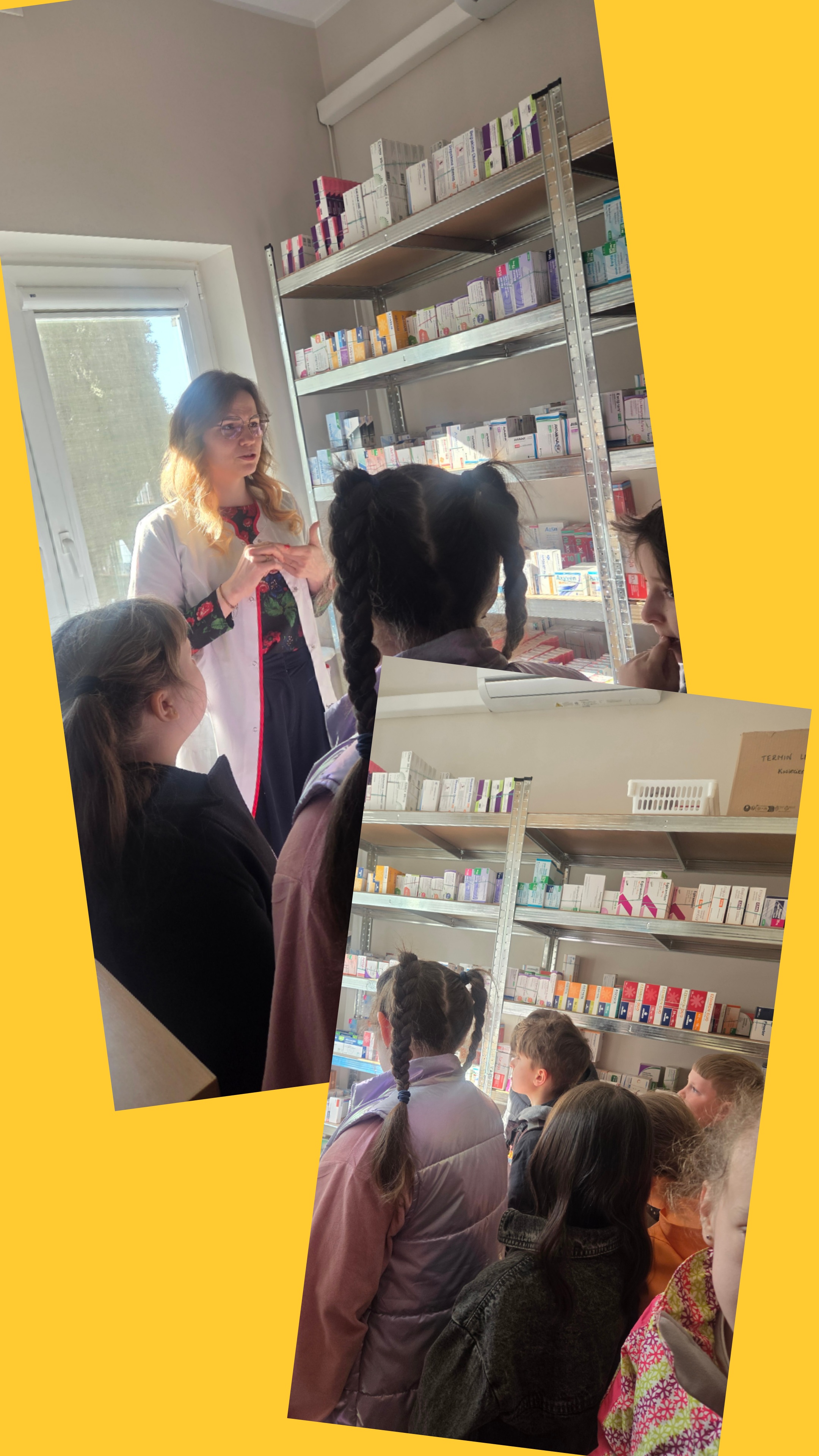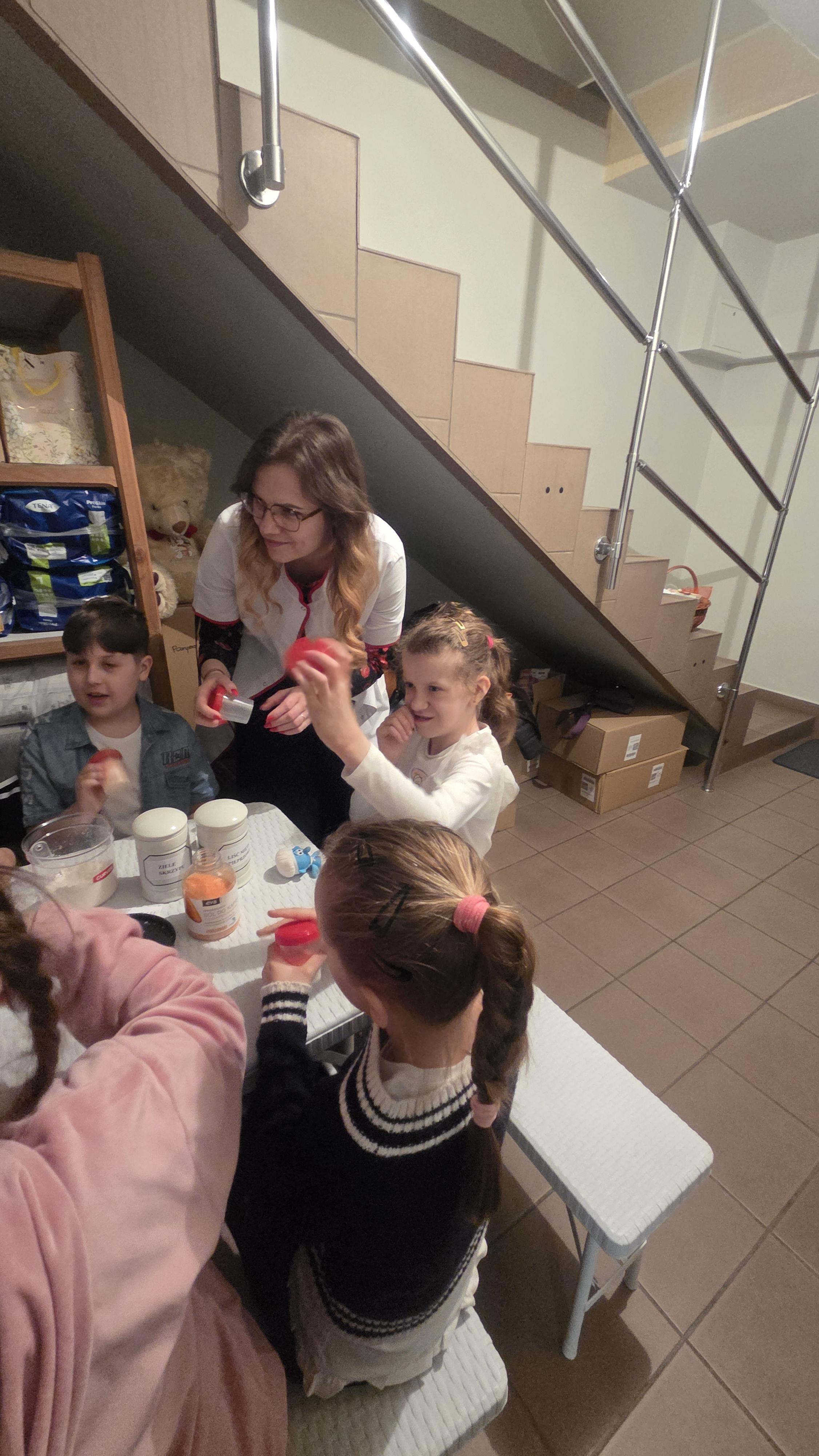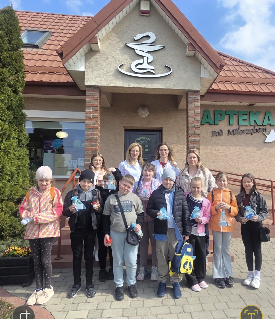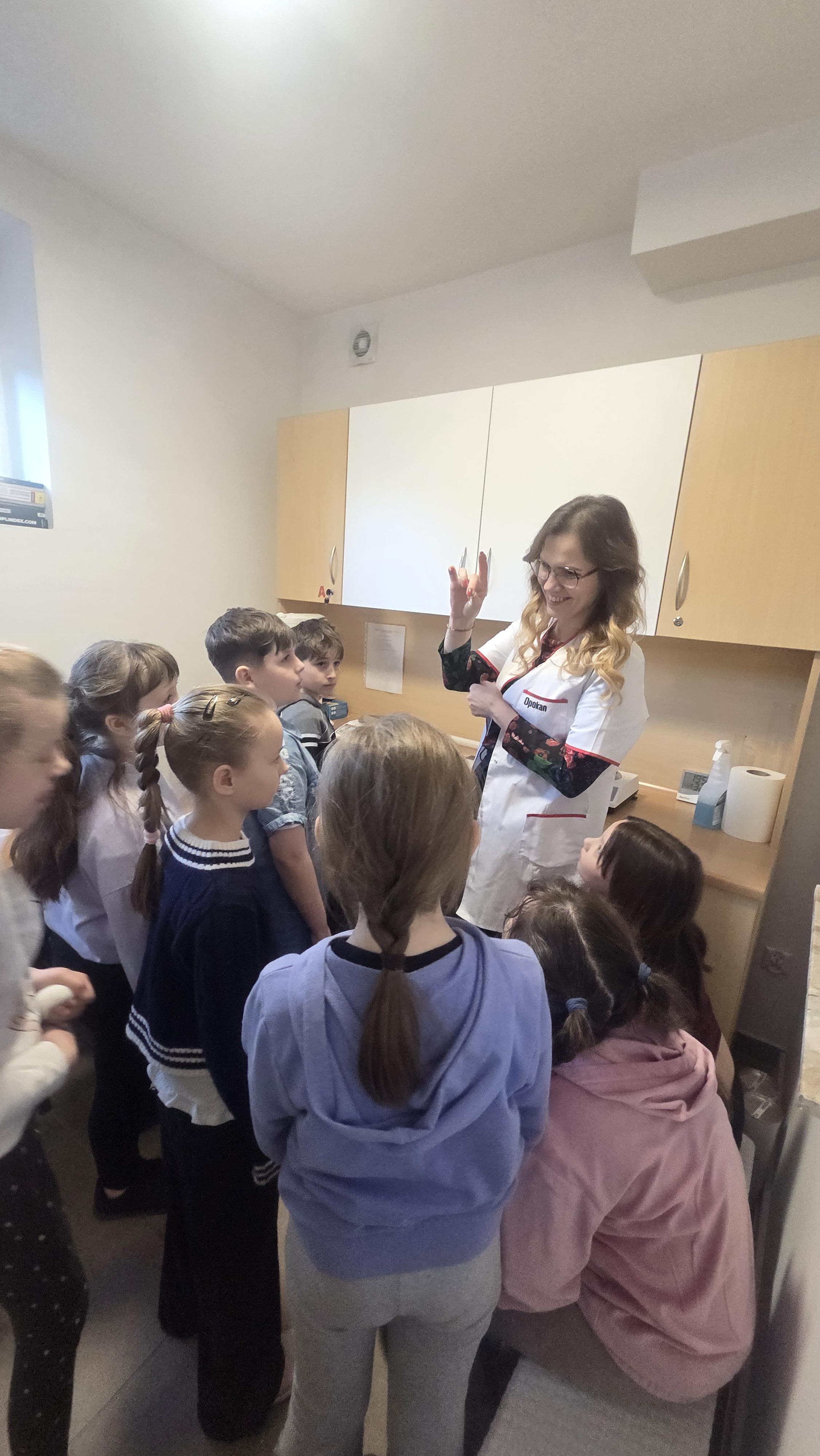 Dzisiejszy dzień na długo pozostanie w pamięci uczniów klasy drugiej, którzy wraz ze swoimi wychowawcami mieli okazję uczestniczyć w niezwykłej i bardzo pouczającej wycieczce. Dzięki uprzejmości mamy Alicji, Pani Julity Lewalskiej oraz właścicielki Apteki Pod Miłorzębem w Rybnie, Pani Aleksandry Hillar dzieci mogły odwiedzić aptekę i poznać jej funkcjonowanie „od zaplecza”. Panie bardzo ciepło i serdecznie powitały dzieci, od samego początku tworząc przyjazną atmosferę sprzyjającą nauce i wspólnemu odkrywaniu tajników pracy farmaceuty. Już od pierwszych chwil uczniowie z ogromnym zainteresowaniem słuchali opowieści Pań Farmaceutek, które w przystępny i ciekawy sposób przybliżyły im specyfikę swojej pracy. Dzieci dowiedziały się, jak wygląda codzienność w aptece, w jaki sposób przechowywane są leki oraz na czym polega odpowiedzialna rola farmaceuty. Najwięcej emocji wzbudziła część praktyczna. Pani Ola wprowadziła dzieci w fascynujący świat ziół, opowiadając o ich właściwościach i zastosowaniu. Następnie, pod czujnym okiem Pani Oli i Pani Julity, uczniowie tworzyli sól do kąpieli stóp z naturalnych składników, wykorzystując zdobytą wiedzę w praktyce. Uczniowie mieli także okazję wcielić się w rolę małych medyków, ucząc się podstaw udzielania pierwszej pomocy. „Leczyli” pluszowe misie - odkażali i opatrywali rany, naklejali plasterki, a nawet wykonywali zastrzyki. Dzięki temu mogli w bezpieczny i przyjazny sposób oswoić się z podstawowymi czynnościami medycznymi oraz przełamać ewentualne obawy związane z wizytami u lekarza. Dużym zainteresowaniem cieszyła się również możliwość obserwowania, jak przygotowywana jest indywidualna recepta dla pacjenta, którą wykonywała pani Julita. Dzieci z dużą uwagą obserwowały, jak precyzyjnie odmierza ona odpowiednie składniki i dba o każdy szczegół, by lek został przygotowany prawidłowo. Nie zabrakło także chwili na rozwijanie kreatywności. Uczniowie rysowali i kolorowali swoje misie, co sprawiło im wiele radości i pozwoliło na moment relaksu po intensywnych zajęciach.