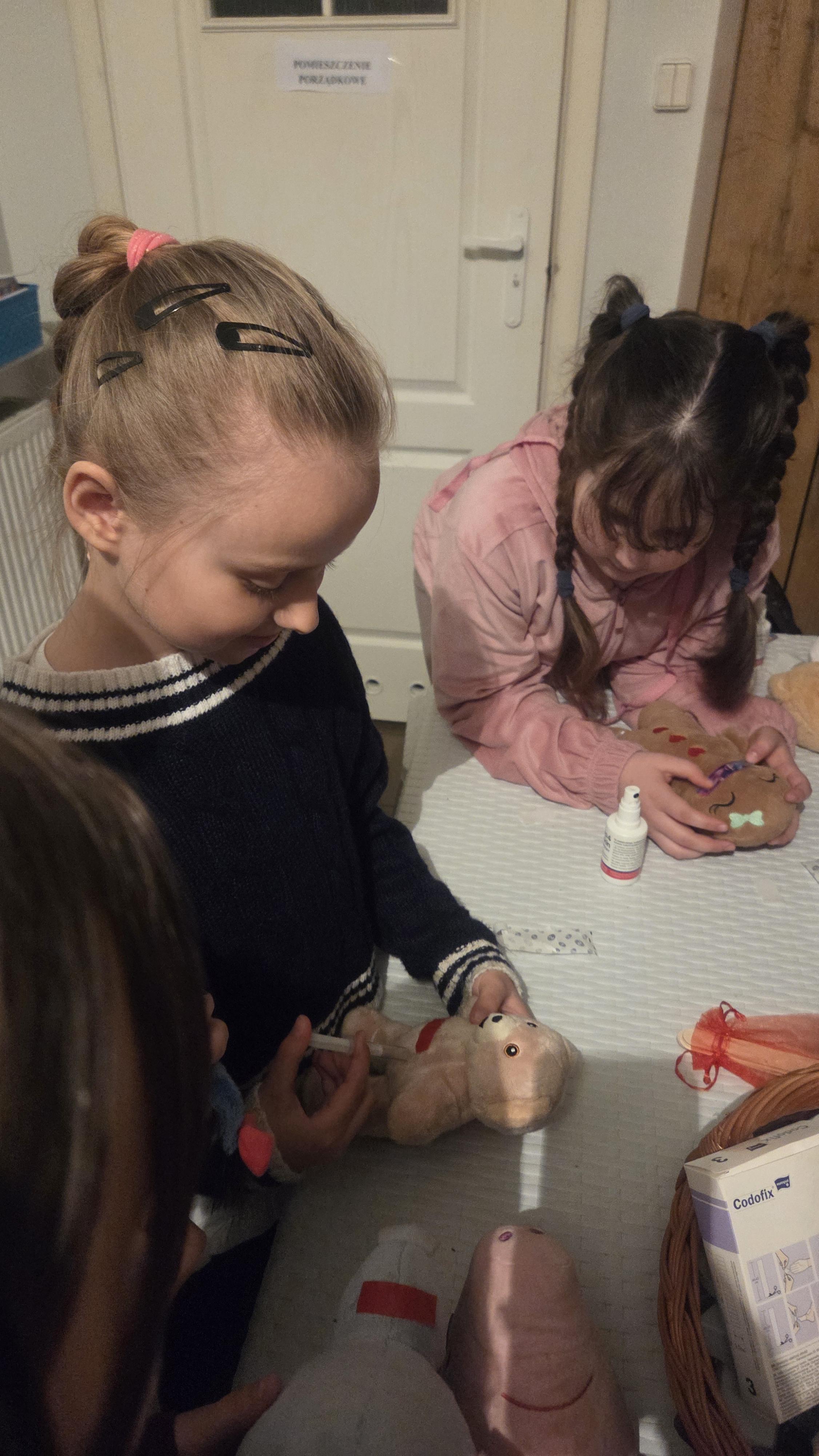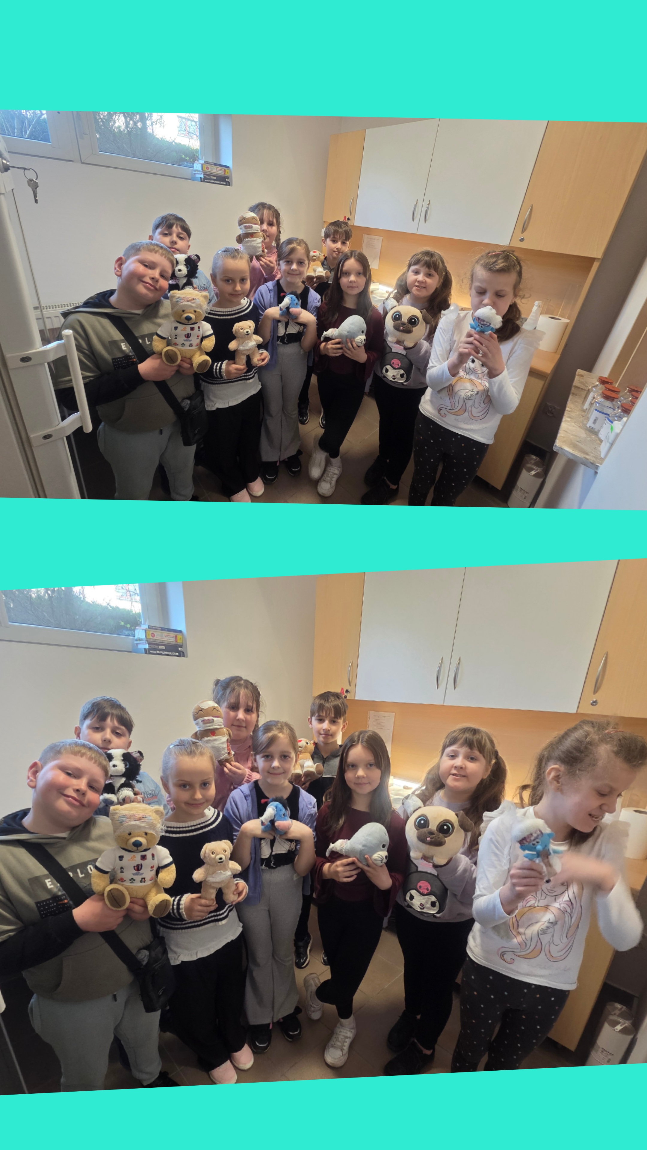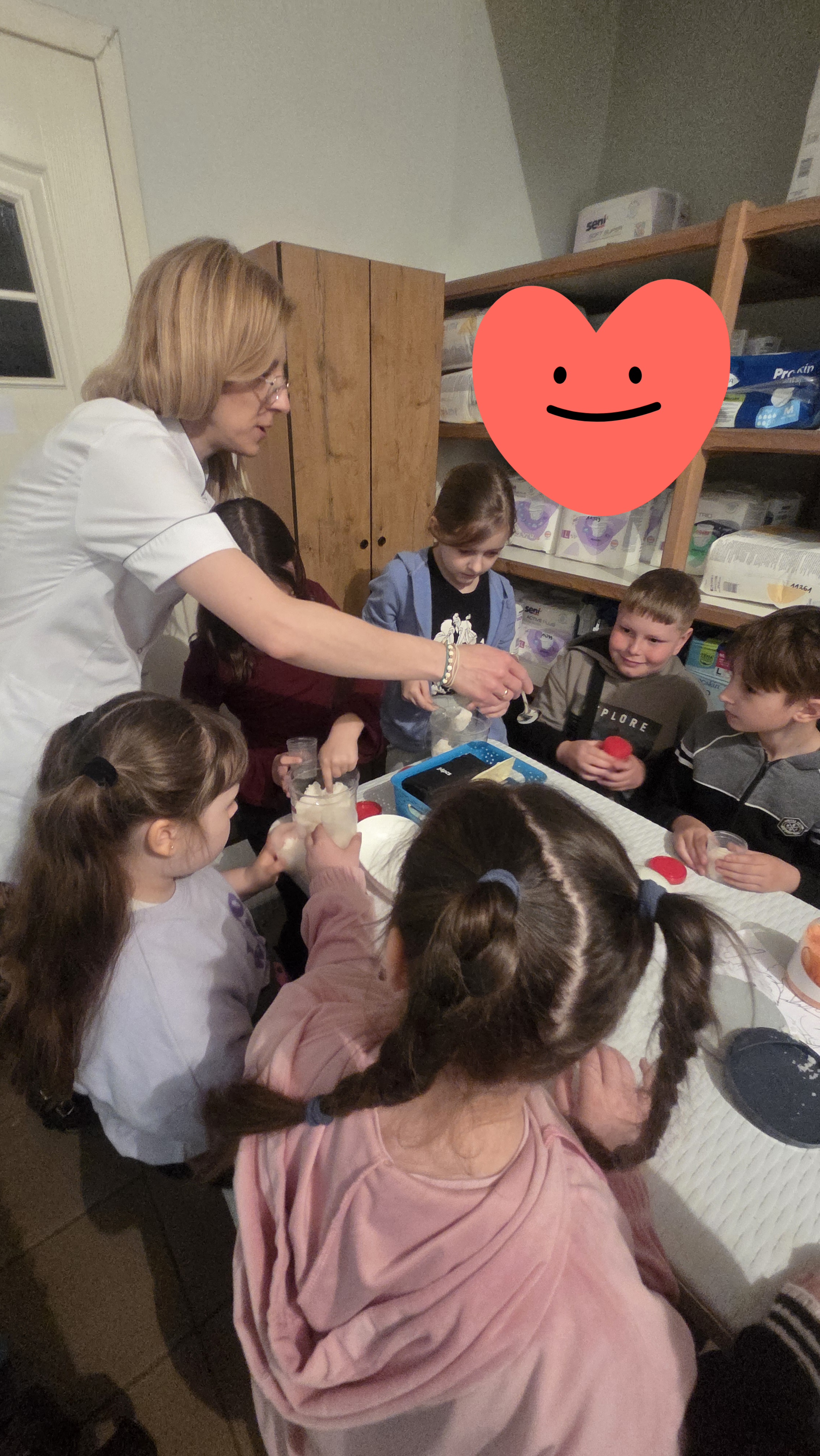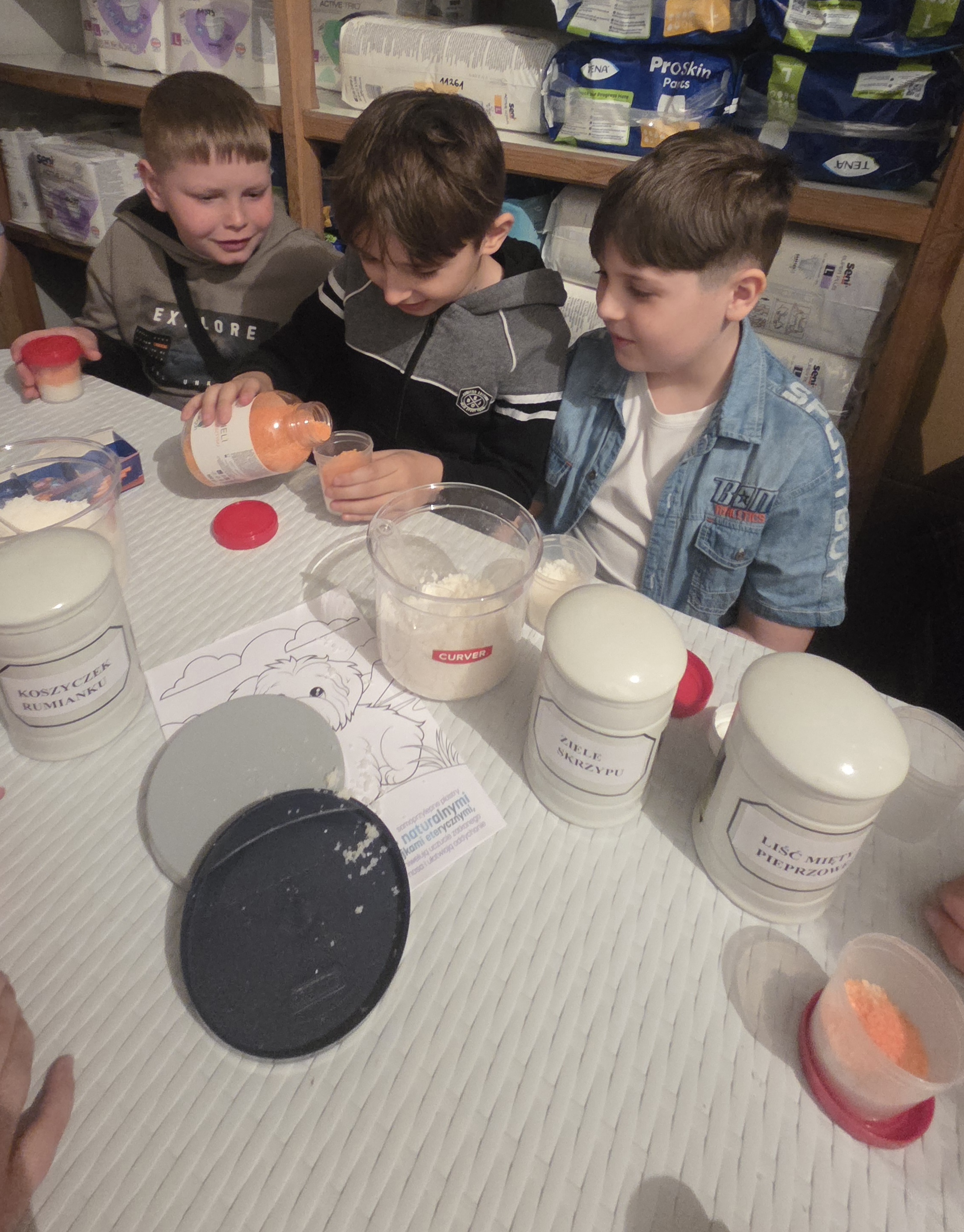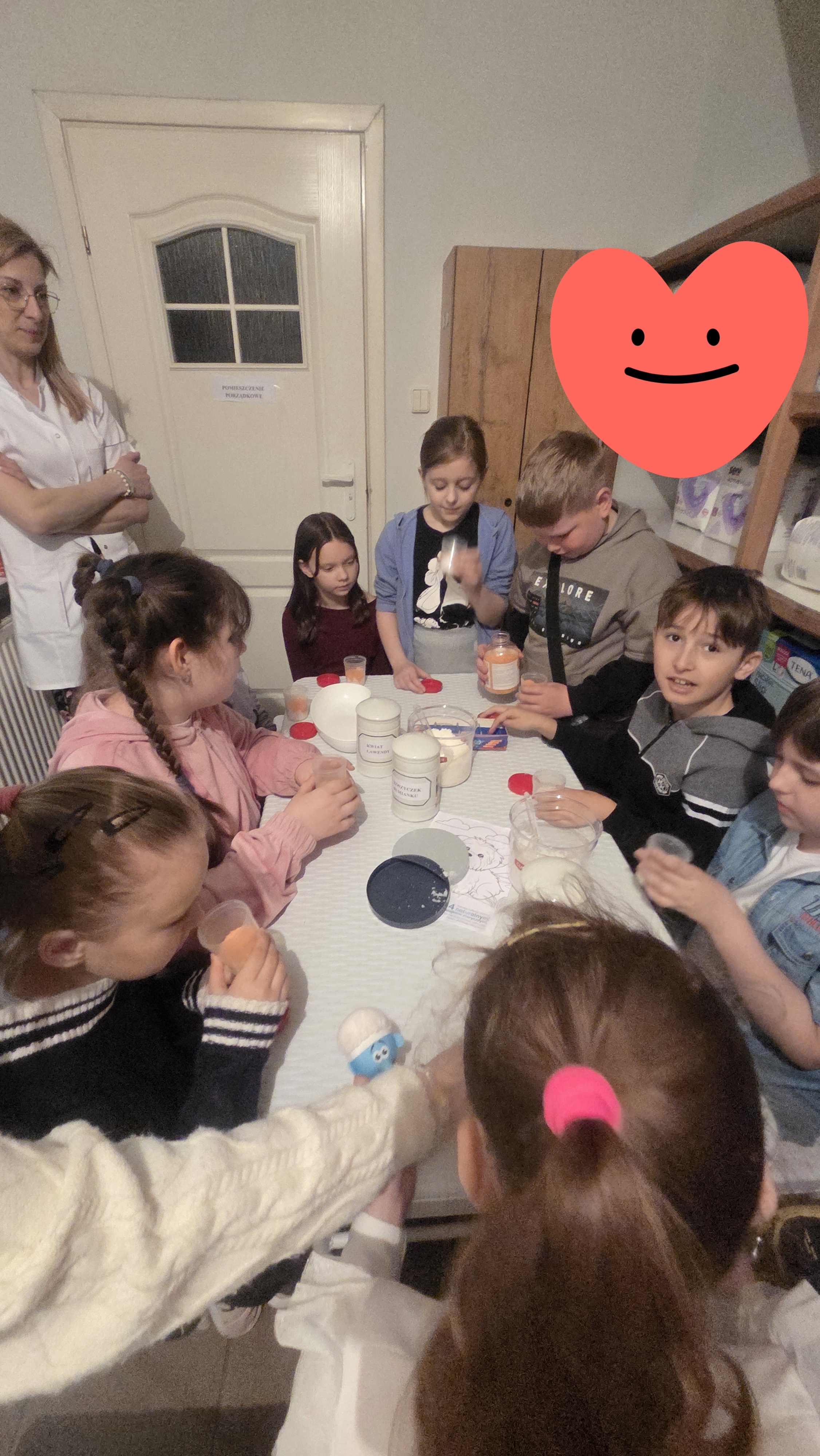 Dzisiejszy dzień na długo pozostanie w pamięci uczniów klasy drugiej, którzy wraz ze swoimi wychowawcami mieli okazję uczestniczyć w niezwykłej i bardzo pouczającej wycieczce. Dzięki uprzejmości mamy Alicji, Pani Julity Lewalskiej oraz właścicielki Apteki Pod Miłorzębem w Rybnie, Pani Aleksandry Hillar dzieci mogły odwiedzić aptekę i poznać jej funkcjonowanie „od zaplecza”. Panie bardzo ciepło i serdecznie powitały dzieci, od samego początku tworząc przyjazną atmosferę sprzyjającą nauce i wspólnemu odkrywaniu tajników pracy farmaceuty. Już od pierwszych chwil uczniowie z ogromnym zainteresowaniem słuchali opowieści Pań Farmaceutek, które w przystępny i ciekawy sposób przybliżyły im specyfikę swojej pracy. Dzieci dowiedziały się, jak wygląda codzienność w aptece, w jaki sposób przechowywane są leki oraz na czym polega odpowiedzialna rola farmaceuty. Najwięcej emocji wzbudziła część praktyczna. Pani Ola wprowadziła dzieci w fascynujący świat ziół, opowiadając o ich właściwościach i zastosowaniu. Następnie, pod czujnym okiem Pani Oli i Pani Julity, uczniowie tworzyli sól do kąpieli stóp z naturalnych składników, wykorzystując zdobytą wiedzę w praktyce. Uczniowie mieli także okazję wcielić się w rolę małych medyków, ucząc się podstaw udzielania pierwszej pomocy. „Leczyli” pluszowe misie - odkażali i opatrywali rany, naklejali plasterki, a nawet wykonywali zastrzyki. Dzięki temu mogli w bezpieczny i przyjazny sposób oswoić się z podstawowymi czynnościami medycznymi oraz przełamać ewentualne obawy związane z wizytami u lekarza. Dużym zainteresowaniem cieszyła się również możliwość obserwowania, jak przygotowywana jest indywidualna recepta dla pacjenta, którą wykonywała pani Julita. Dzieci z dużą uwagą obserwowały, jak precyzyjnie odmierza ona odpowiednie składniki i dba o każdy szczegół, by lek został przygotowany prawidłowo. Nie zabrakło także chwili na rozwijanie kreatywności. Uczniowie rysowali i kolorowali swoje misie, co sprawiło im wiele radości i pozwoliło na moment relaksu po intensywnych zajęciach.