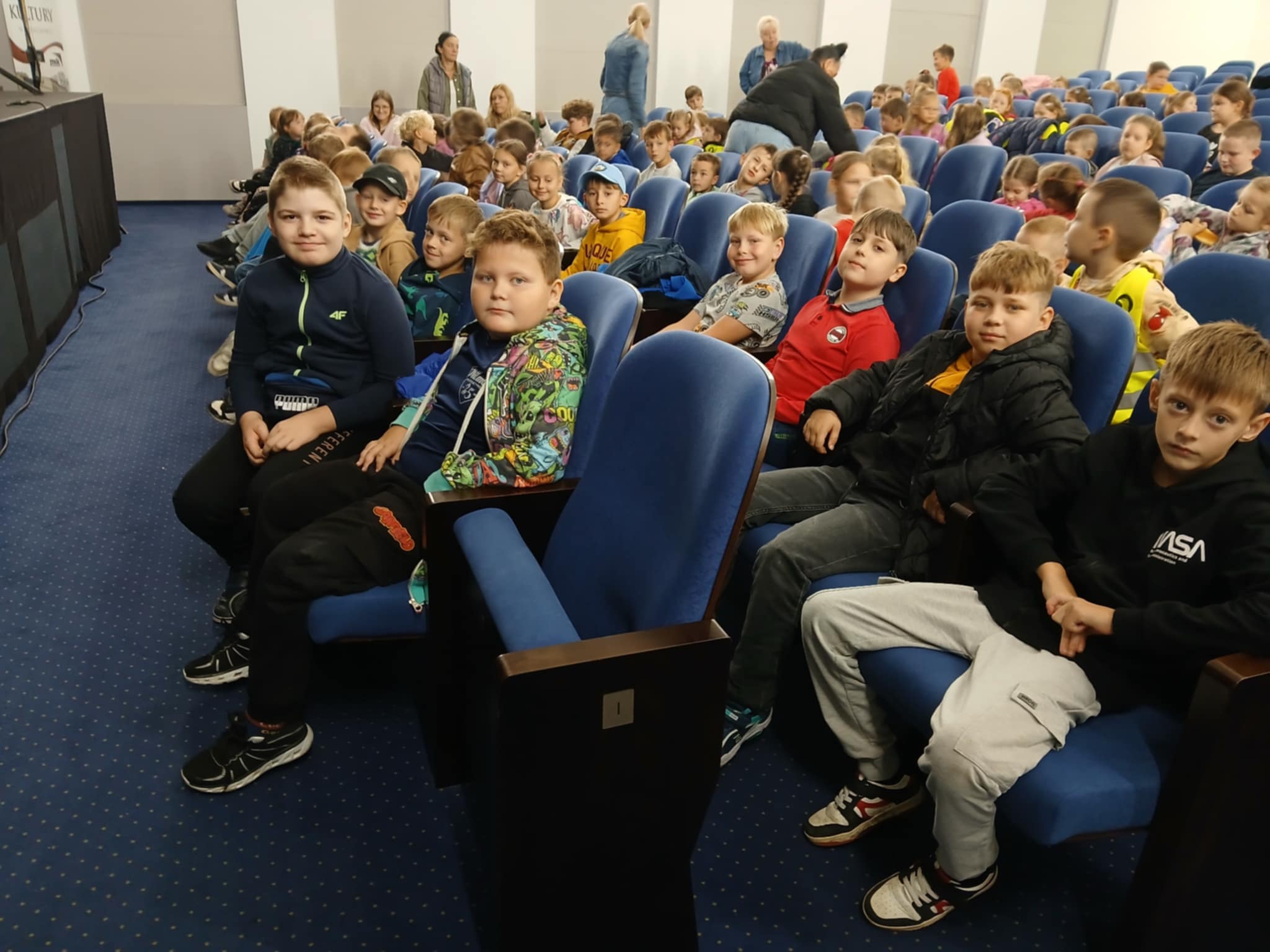 26 września uczniowie klas I - III naszej szkoły uczestniczyli w wyjątkowym wydarzeniu kulturalnym. Wraz z wychowawcami wybrali się do Miejskiego Domu Kultury w Działdowie, gdzie obejrzeli spektakl pt. „Karolcia’’, zaprezentowany przez objazdowy Narodowy Teatr Edukacji im. Adama Mickiewicza z Wrocławia. Przedstawienie powstało na podstawie znanej książki Marii Krüger, opowiadającej o dziewczynce, która znajduje magiczny koralik spełniający życzenia. Dzieci z zapartym tchem śledziły przygody Karolci i jej przyjaciela Piotrusia, odkrywając, że dobroć, odwaga i chęć niesienia pomocy mają niezwykłą moc. Aktorzy oczarowali młodych widzów barwną scenografią, wspaniałą muzyką i pełnymi humoru dialogami, które jednocześnie przekazywały ważne wartości. Spektakl nie tylko bawił, ale również uczył rozwijając wyobraźnię, empatię i wrażliwość najmłodszych. Dla niektórych uczniów była to być może pierwsza wizyta w teatrze – pełna emocji, śmiechu i zachwytu. To spotkanie ze sztuką z pewnością na długo pozostanie w pamięci naszych uczniów. Serdecznie dziękujemy organizatorom za tę inspirującą podróż do świata wyobraźni i już nie możemy się doczekać kolejnych artystycznych przygód.