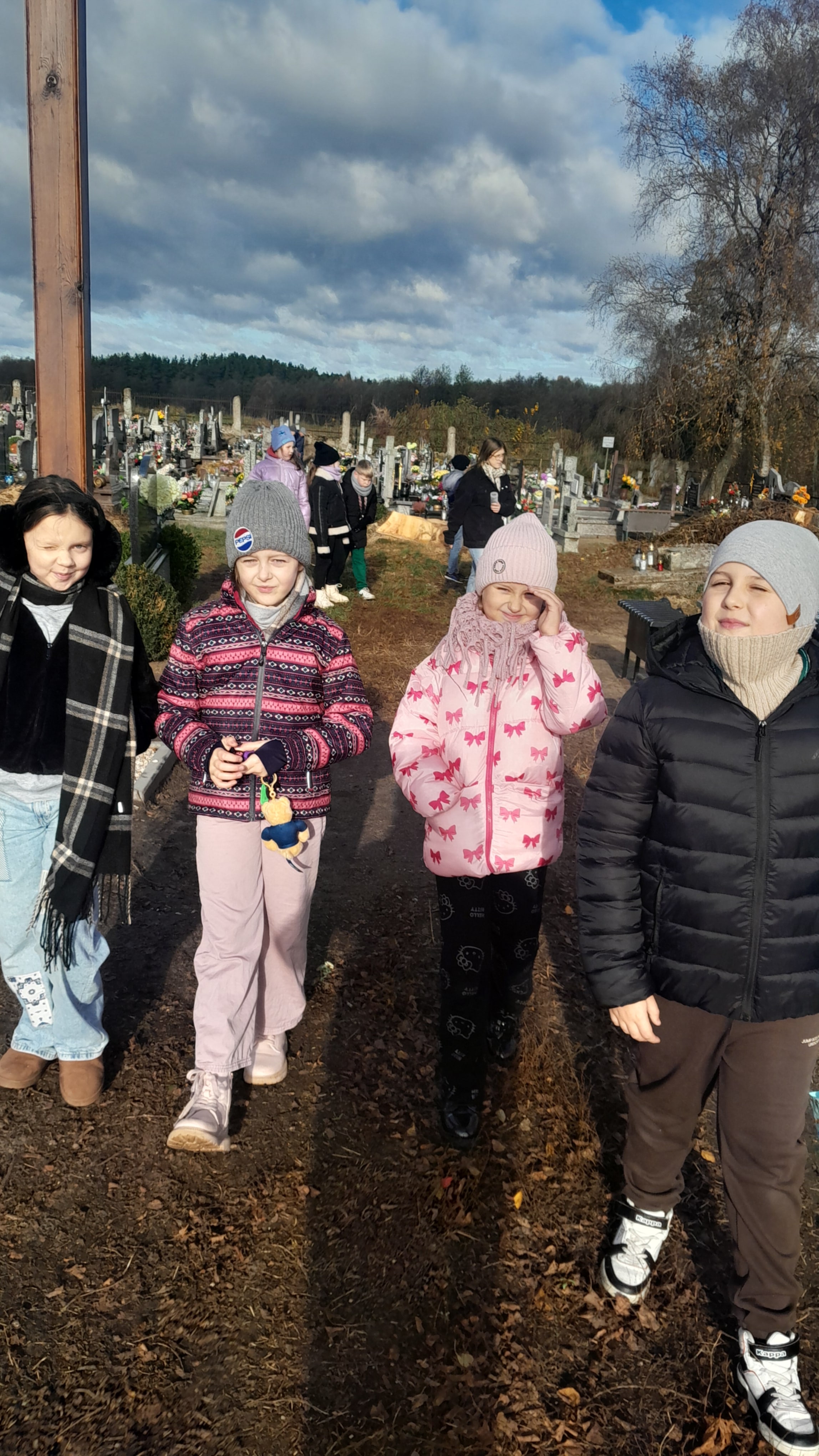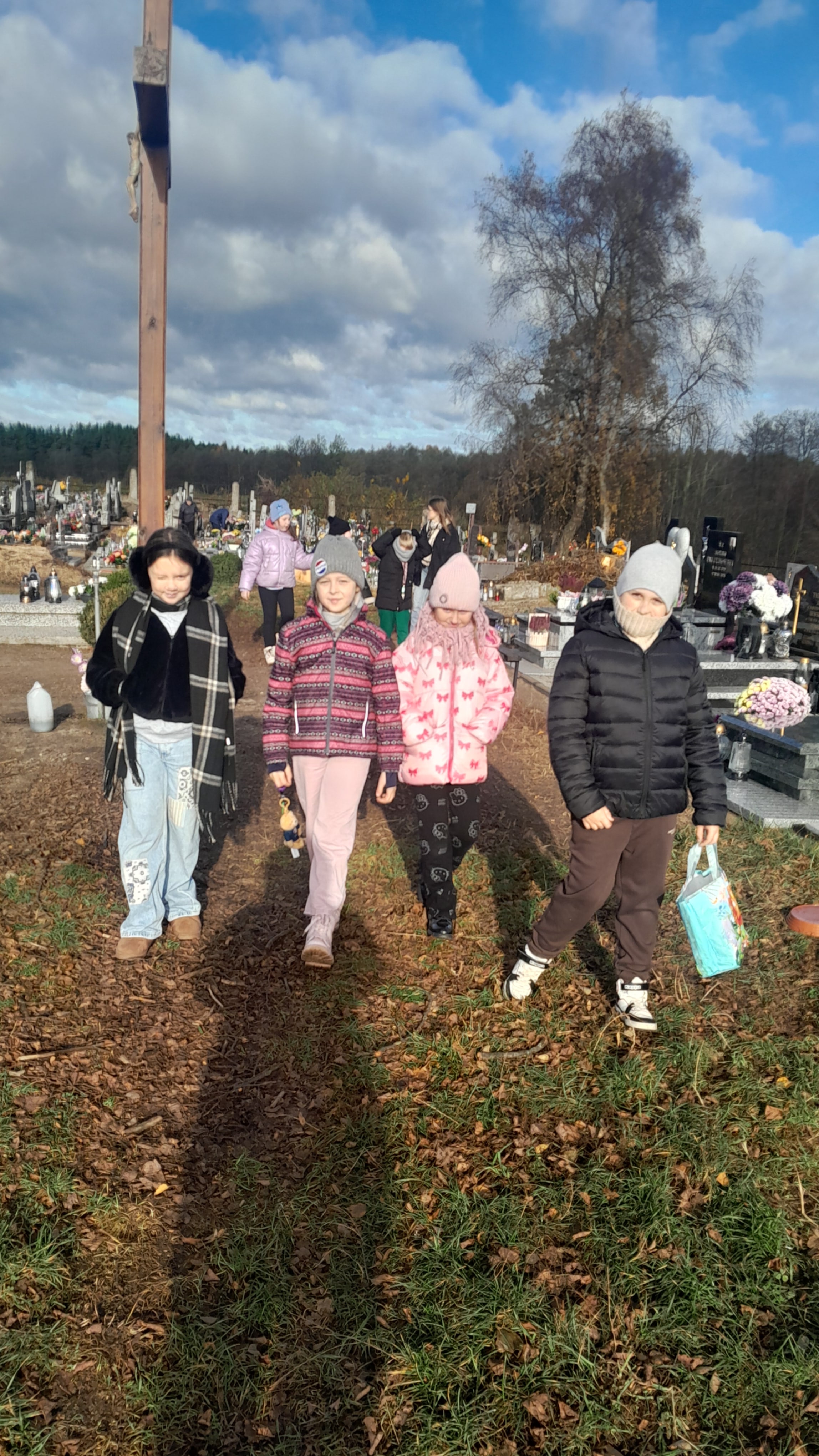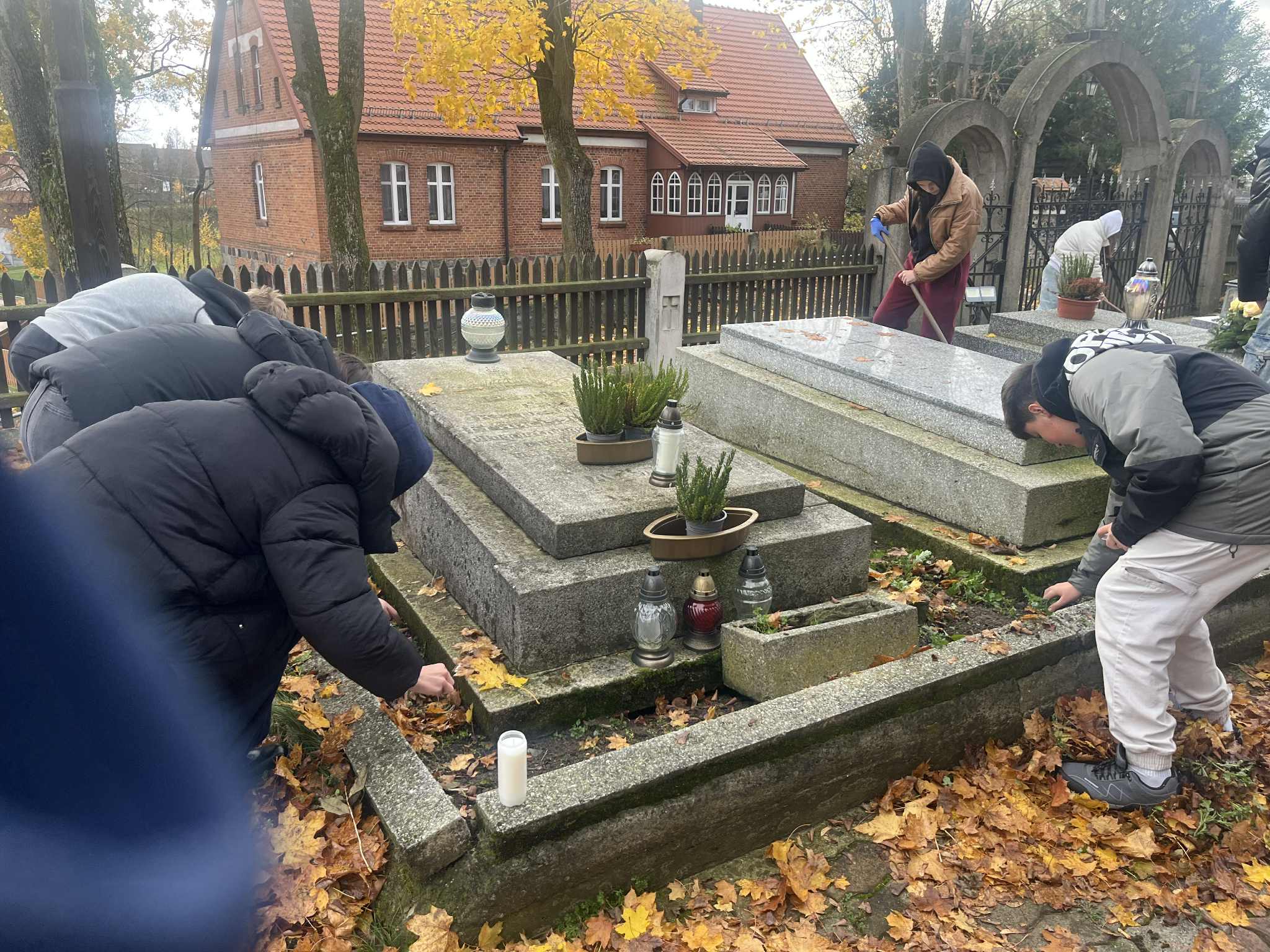 W związku ze zbliżającą się uroczystością Wszystkich Świętych uczniowie naszej szkoły wraz z wychowawcami odwiedzili cmentarz parafialny i cmentarz przy kościele w Rumianie. W ciszy i skupieniu porządkowali opuszczone groby, grabili liście, zapalali znicze i zatrzymywali się na chwilę zadumy nad miejscami spoczynku dawnych mieszkańców naszej okolicy oraz swoich najbliższych.