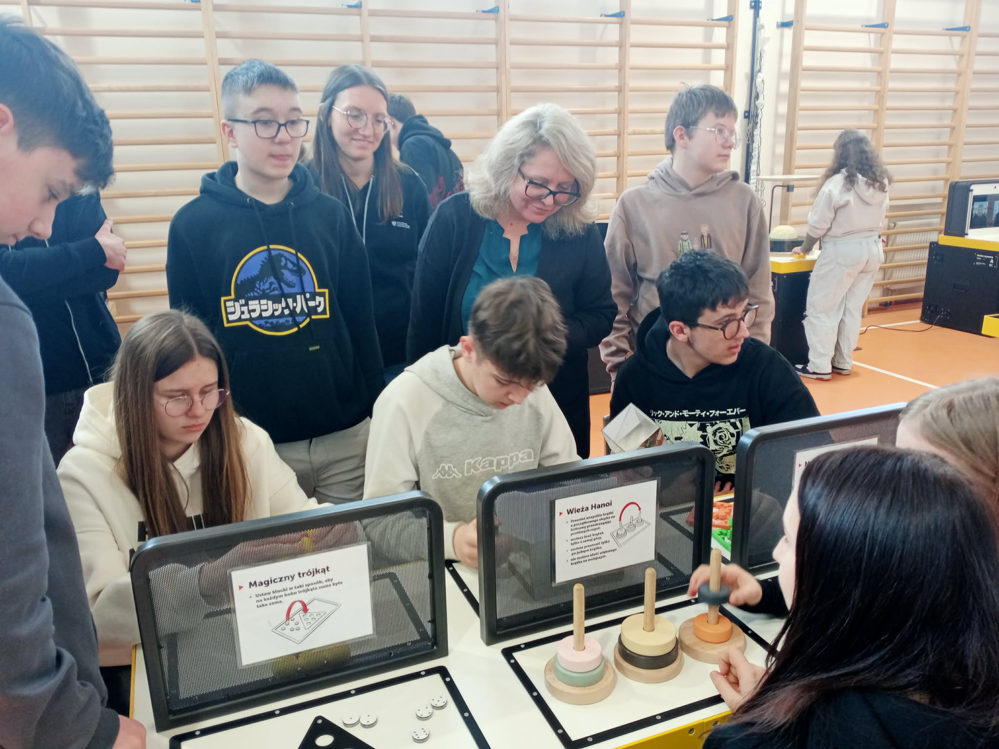 Matematyka jest królową nauk. Badania i statystyki pokazują, że to właśnie ona jest przysłowiową piętą achillesową polskich uczniów. Dlatego też na zaproszenie dyrektora w wystawie wzięli udział uczniowie ze wszystkich szkół podstawowych Gminy Rybno. Byli to głównie uczniowie klas VII i VIII przed, którymi ważny egzamin ósmoklasisty, już w niedalekiej przyszłości. Na wystawie były eksponaty, które w różny sposób związane były z matematyką: świetlne iluzje, spacer z funkcją, teatr cieni, zbuduj łuk, odbijanki, łamigłówki sortowanie, wstęga Móbiusa, szyfr Cezara, rodzina trójkątów, parkietaże, szacowanie. Eksponaty pokazywały, jak fascynującą przygodą jest matematyka i zachęcającą do jej dalszego samodzielnego poznawania.