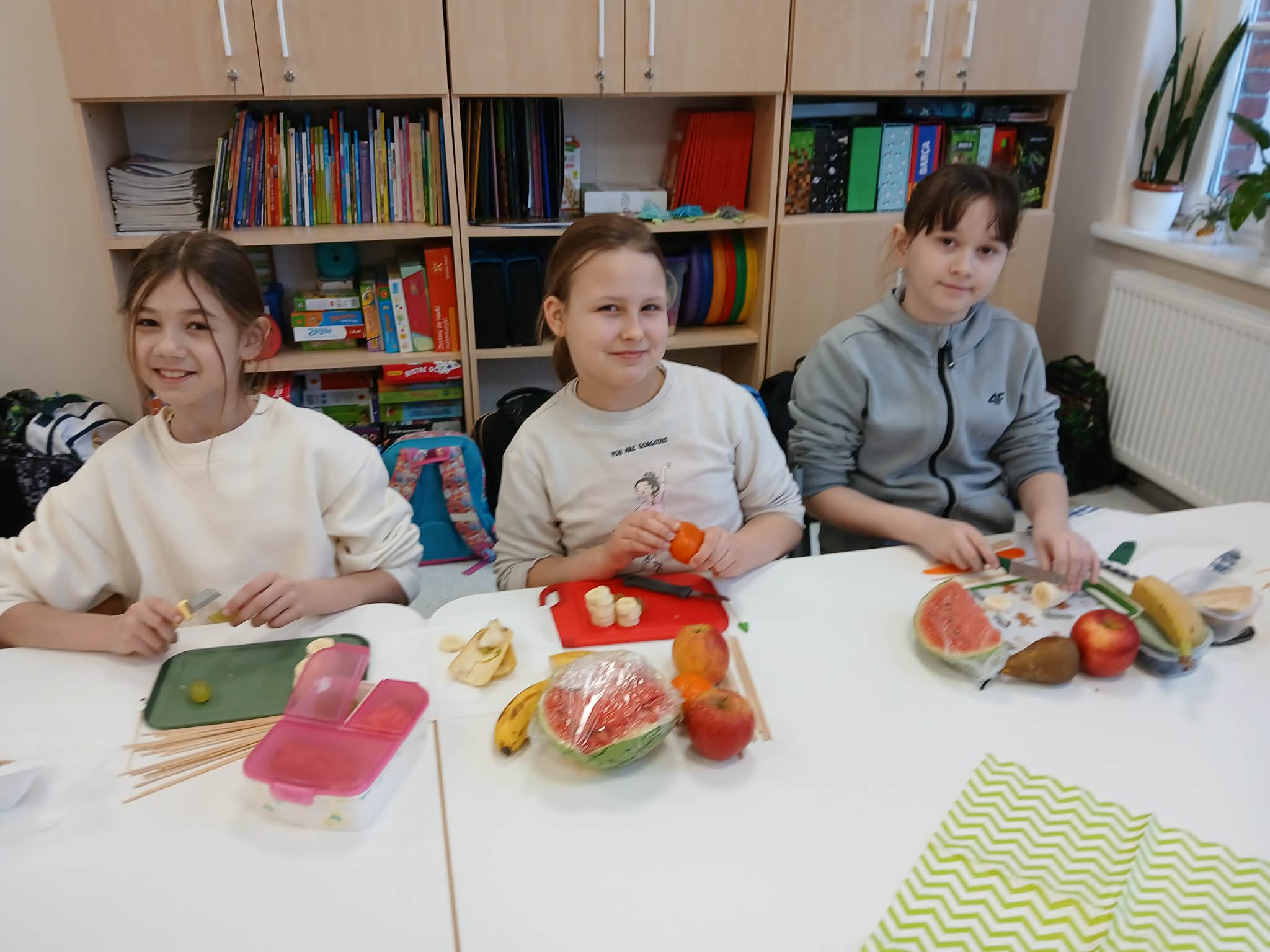 Przygotowywanie owocowych szaszłyków sprawiło wiele radości. Była to także doskonała okazja do rozmowy o zdrowym stylu życia i znaczeniu odpowiedniej diety. Kolorowe przekąski nie tylko świetnie wyglądały, ale przede wszystkim bardzo smakowały młodym kucharzom.