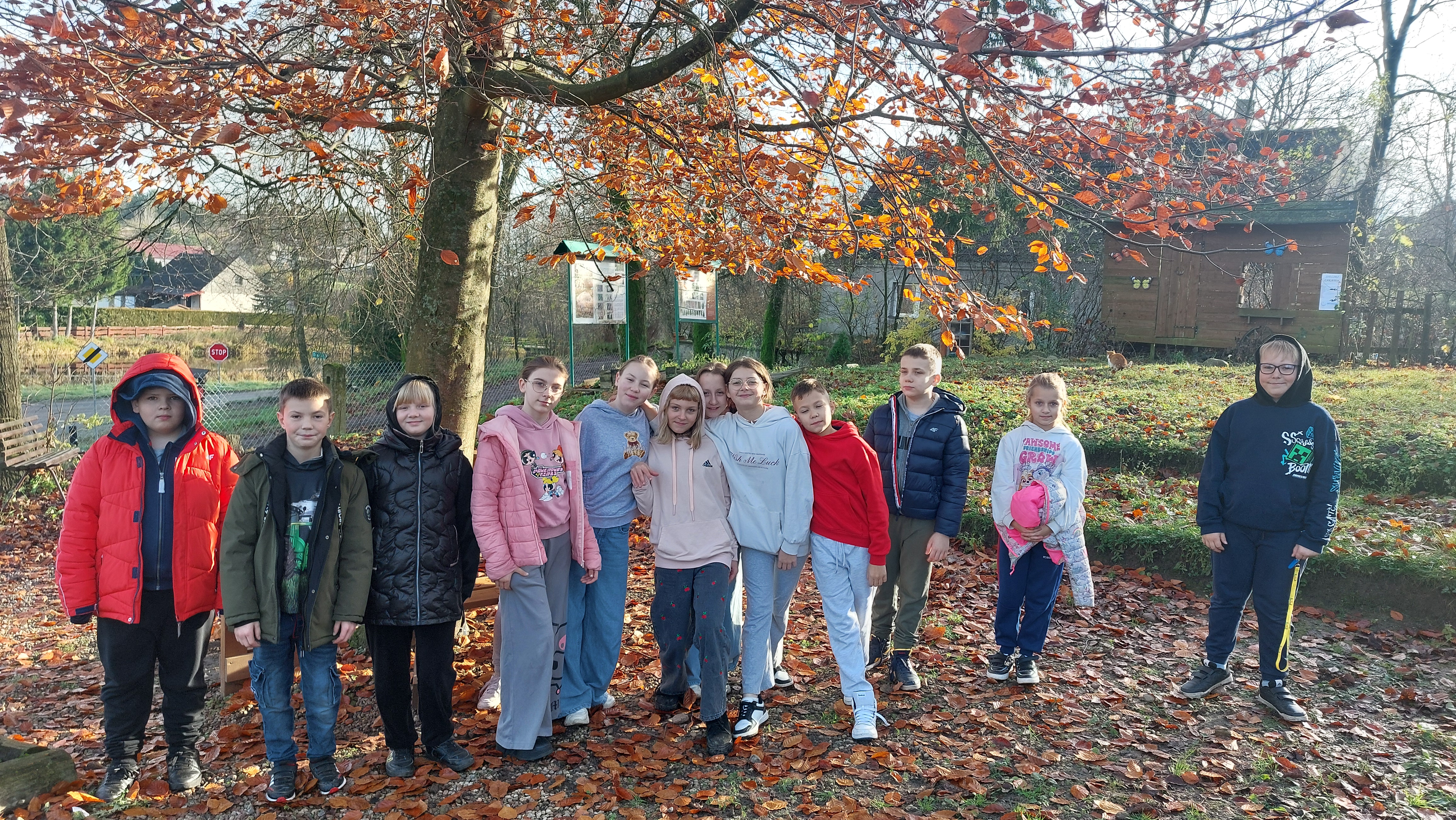 13 listopada odbyła się lekcja przyrody "Rośliny i zwierzęta wokół nas"w ogrodzie deszczowym. Uczniowie obserwowali rośliny i zwierzęta żyjące w najbliższej okolicy. Rozpoznawali gatunki drzew, krzewów oraz roślin zielnych, a także odwiedzili posadzone przez siebie drzewo. Uczniowie rozmawiali o tym, jak dbać o przyrodę i dlaczego nie należy płoszyć zwierząt ani niszczyć roślin. Lekcja pozwoliła lepiej zrozumieć zależności w środowisku oraz znaczenie ochrony przyrody.