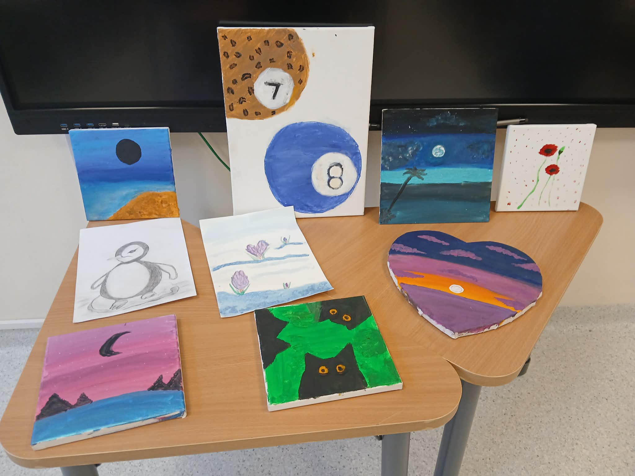 Jego obrazy wzbudziły w klasie duże zainteresowanie. Uczniowie z zaciekawieniem oglądali prace Antka, podziwiając ich kolorystykę, pomysłowość i staranność wykonania. Chłopiec chętnie opowiadał o tym, jak powstają jego obrazy oraz skąd czerpie pomysły do swoich dzieł.