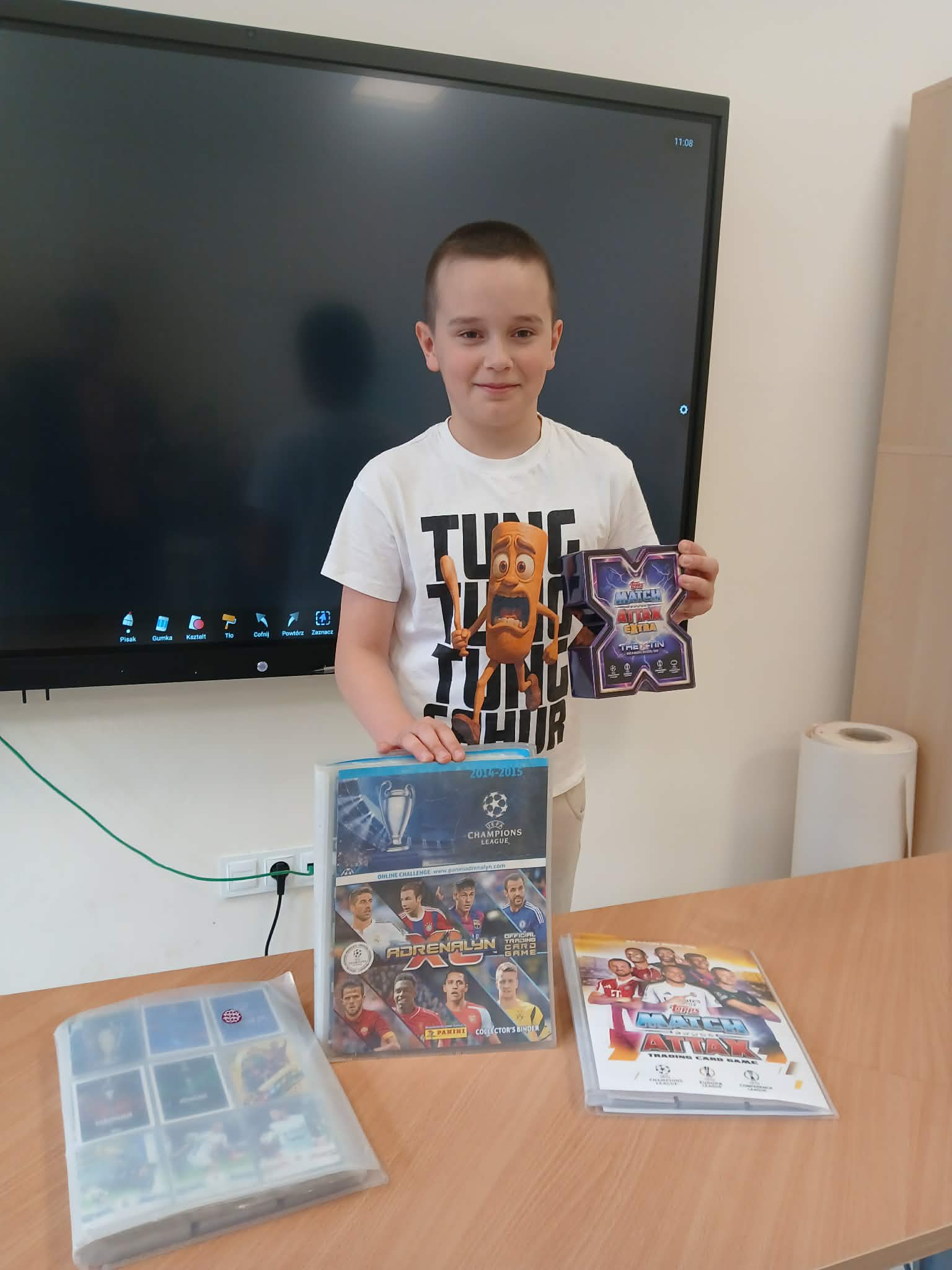Marcel przyniósł do szkoły swoją kolekcję piłek i opowiedział o każdej z nich. Każda miała swoją historię, co było bardzo ciekawe dla całej klasy. Szczególne zainteresowanie wzbudziła jego duża kolekcja kart piłkarskich. Marcel pokazał wiele różnych kart – z ulubionymi zawodnikami, drużynami oraz wyjątkowymi, rzadkimi egzemplarzami. Opowiadał, skąd je zdobył i które są dla niego najcenniejsze. Koledzy z dużym zaciekawieniem oglądali kolekcję i zadawali wiele pytań.