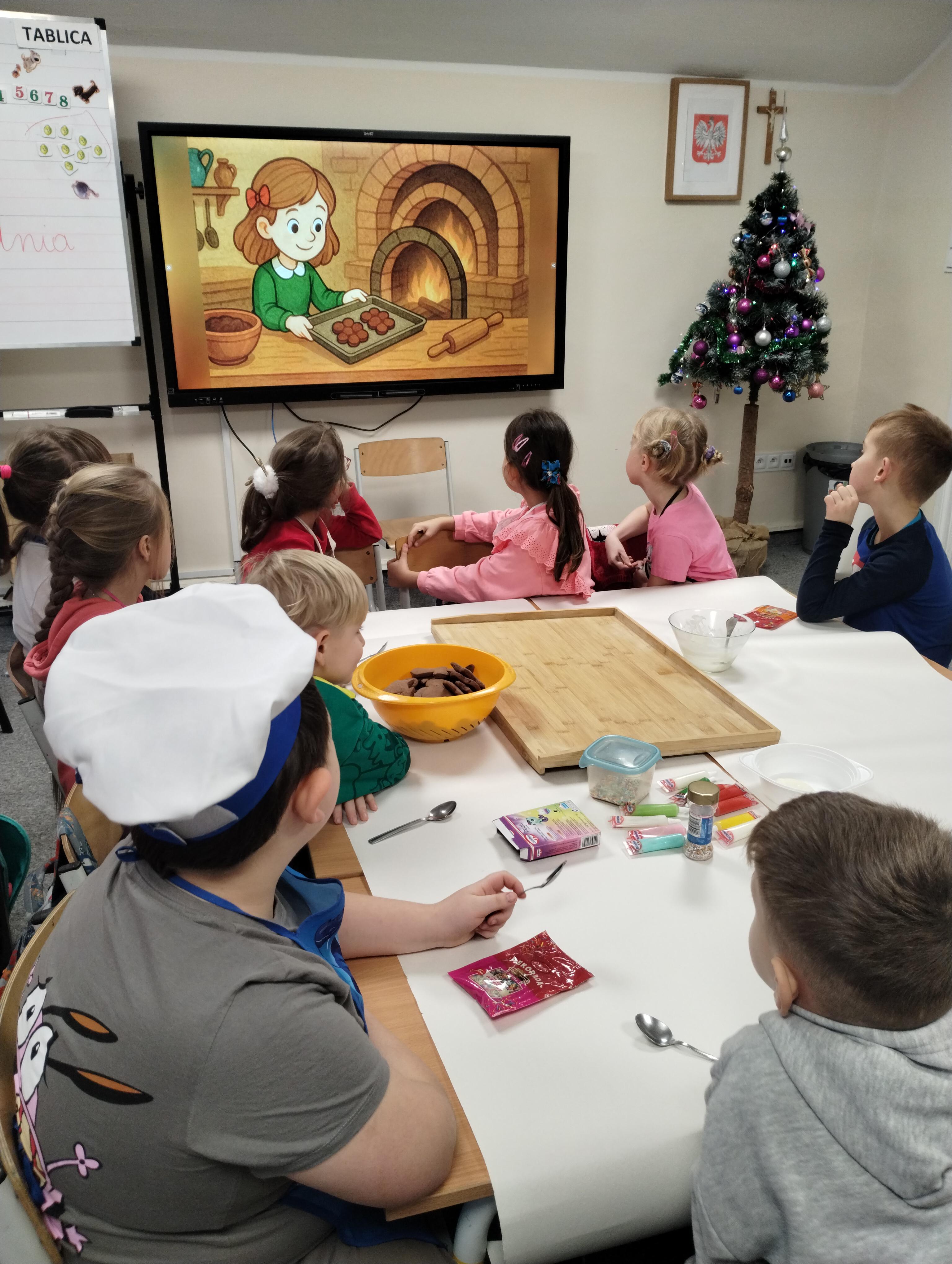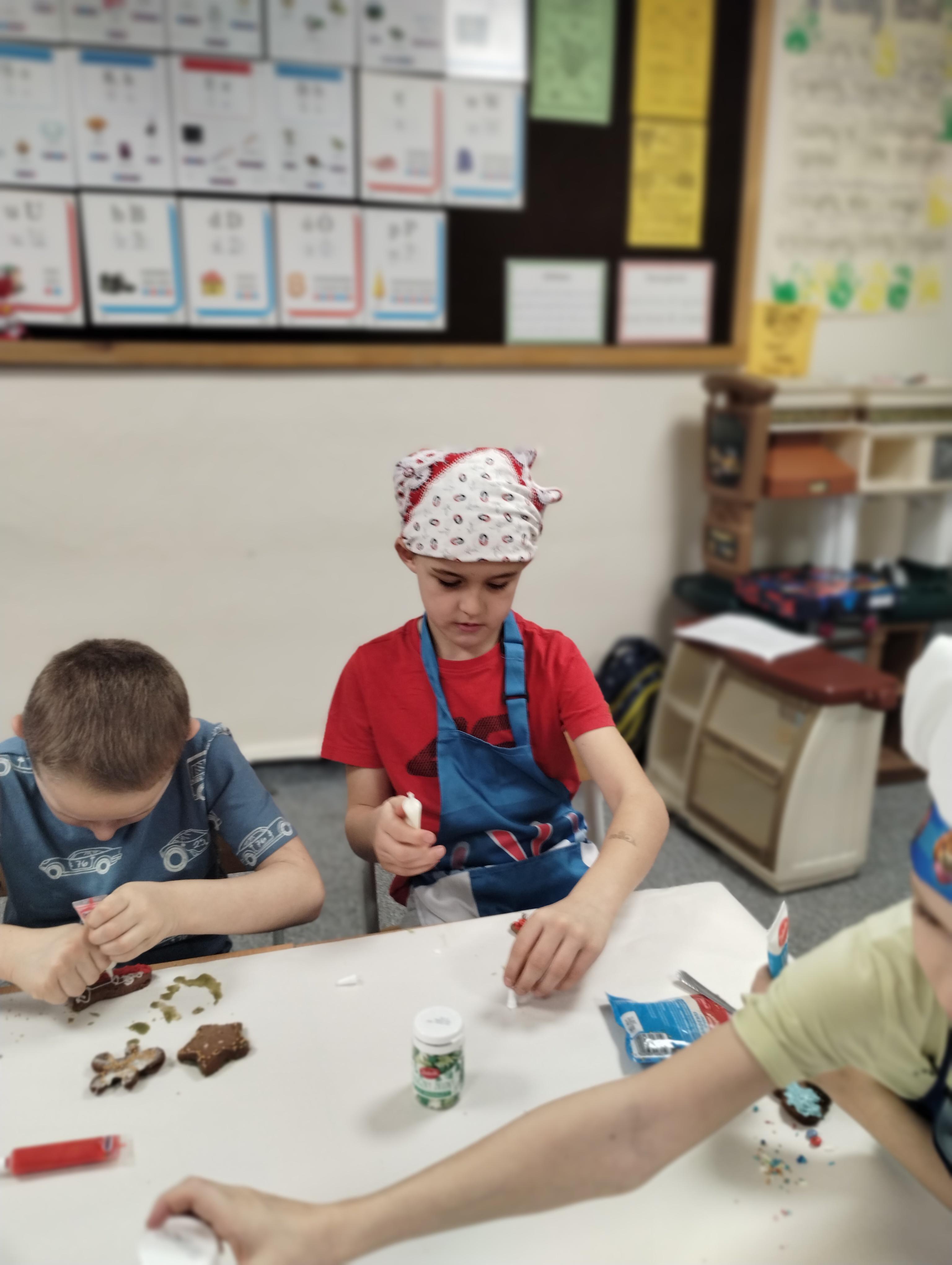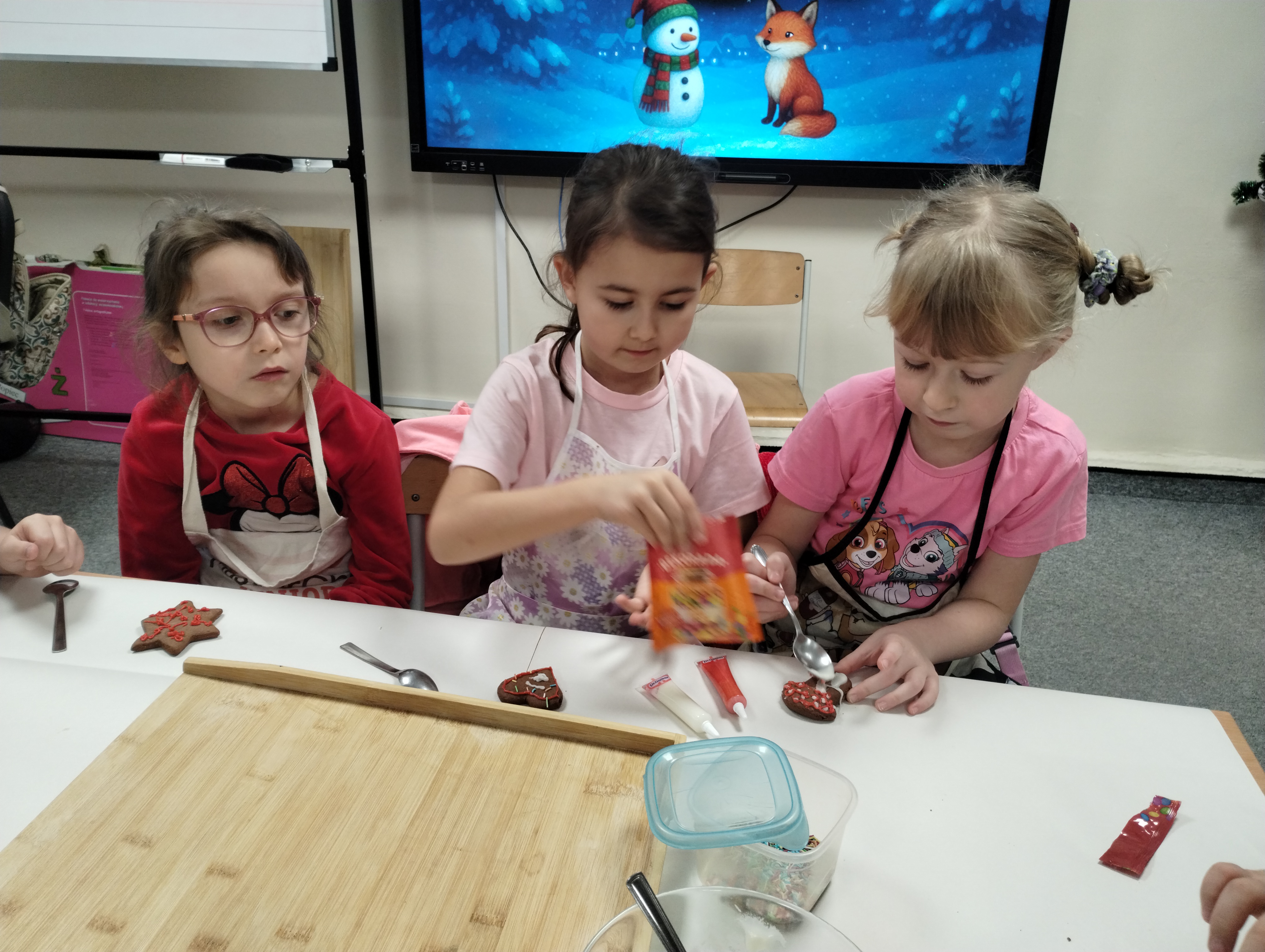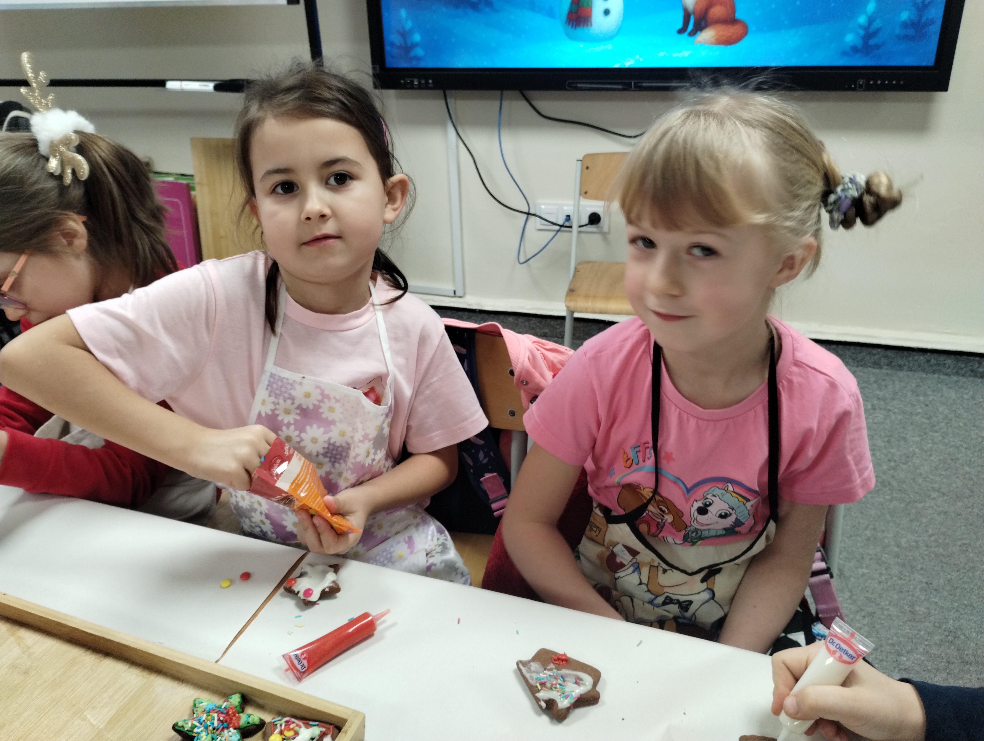 We wtorek, 16 grudnia uczniowie klasy I dekorowali pierniczki. Te pyszne ciasteczka piecze się w okresie przedświątecznym w wielu domach. Ich piękny, korzenny zapach przypomina nam wszystkim, że święta Bożego Narodzenia są tuż za progiem. Nasze zajęcia rozpoczęły się od wprowadzenia w historię piernika i obejrzenia legendy: „O toruńskich piernikach”. Następnie pierwszoklasiści w miłej atmosferze przystąpili do dekorowania ciasteczek lukrem, pisakami, kolorowymi posypkami i cukiereczkami. Pierniki miały różne kształty, a pomysłów na ich dekorowanie było całe mnóstwo. Wszystkie dzieci ozdabiając ciasteczka, wykazały się dużą starannością, pomysłowością i kreatywnością. Trzeba przyznać, że ciasteczka te przypominają małe arcydzieła pełne kolorów i świątecznego blasku. Być może któreś z dzieci w przyszłości zostanie cukiernikiem? Ta kulinarna zabawa zapewne przyczyniła się do nawiązania koleżeńskich relacji między uczniami. Była też świetną okazją do utrwalenia tradycji bożonarodzeniowych oraz źródłem wielu radosnych chwil dla dzieci. Był to także czas wspólnego oczekiwania na radosne święta Bożego Narodzenia. Pięknie udekorowane pierniki znajdą się na wigilijnym stole podczas klasowej wigilii. Wigilię w naszej klasie rozpoczniemy zgodnie z tradycją od połamania się opłatkiem i złożenia sobie świątecznych życzeń.