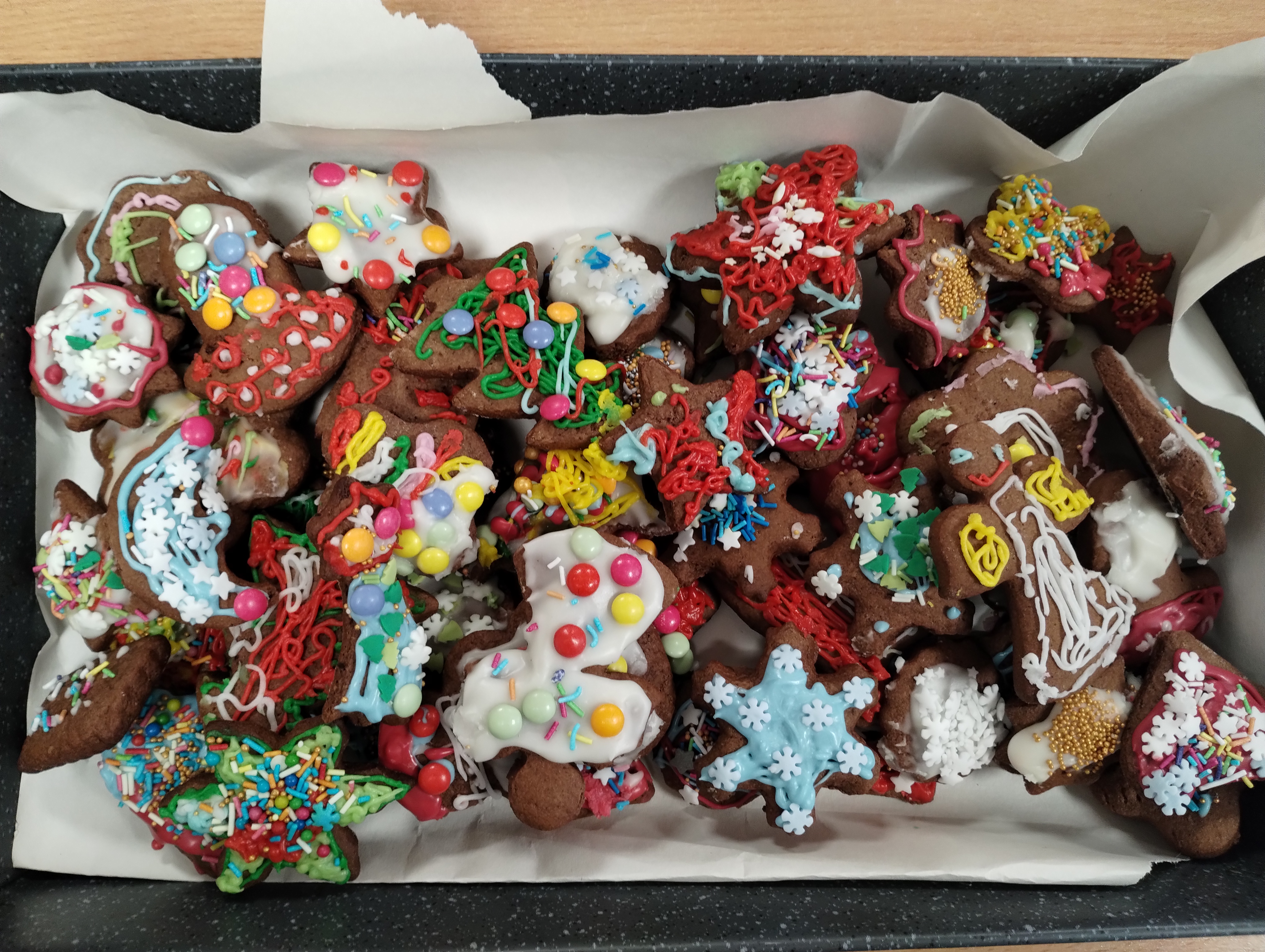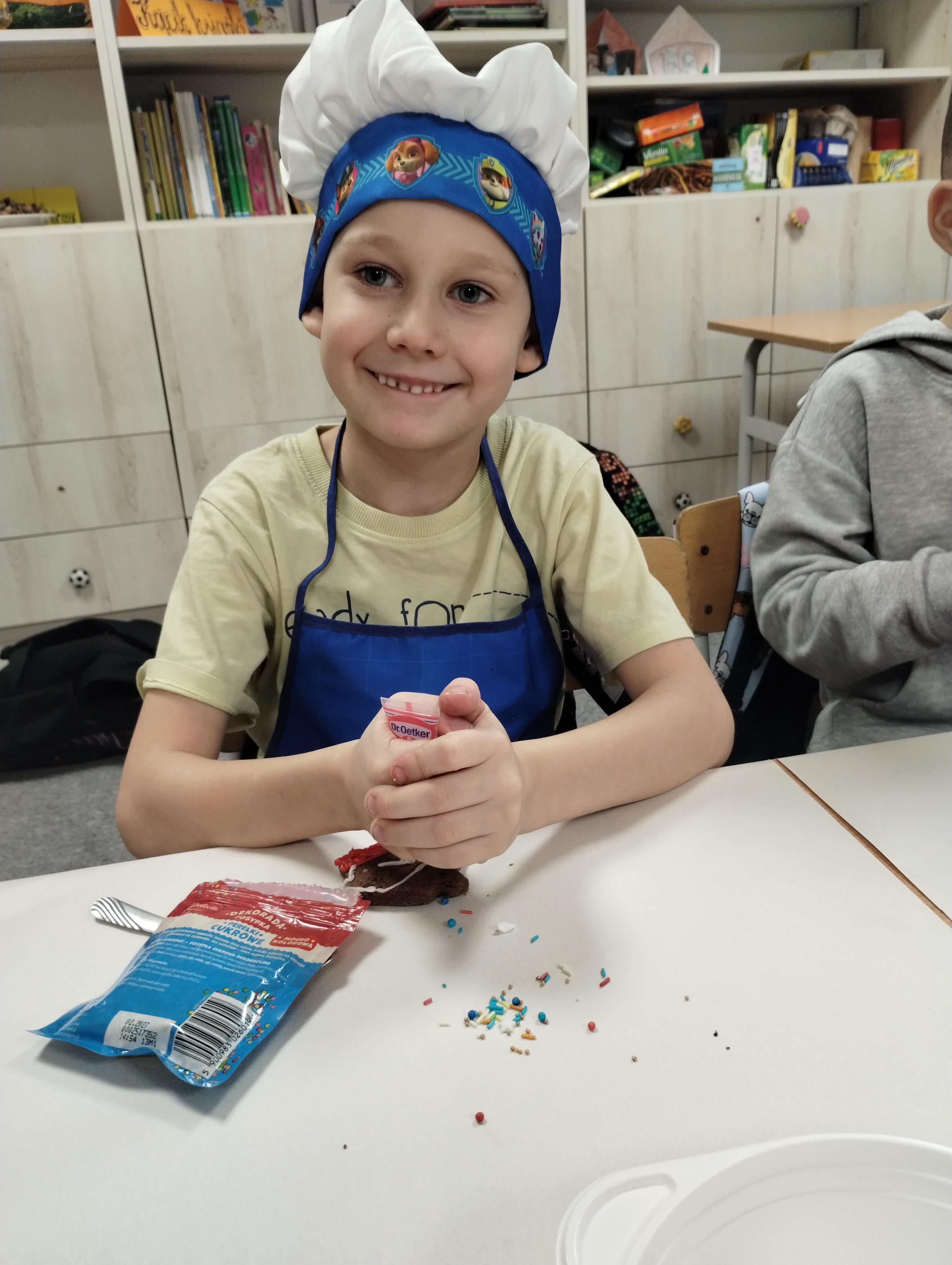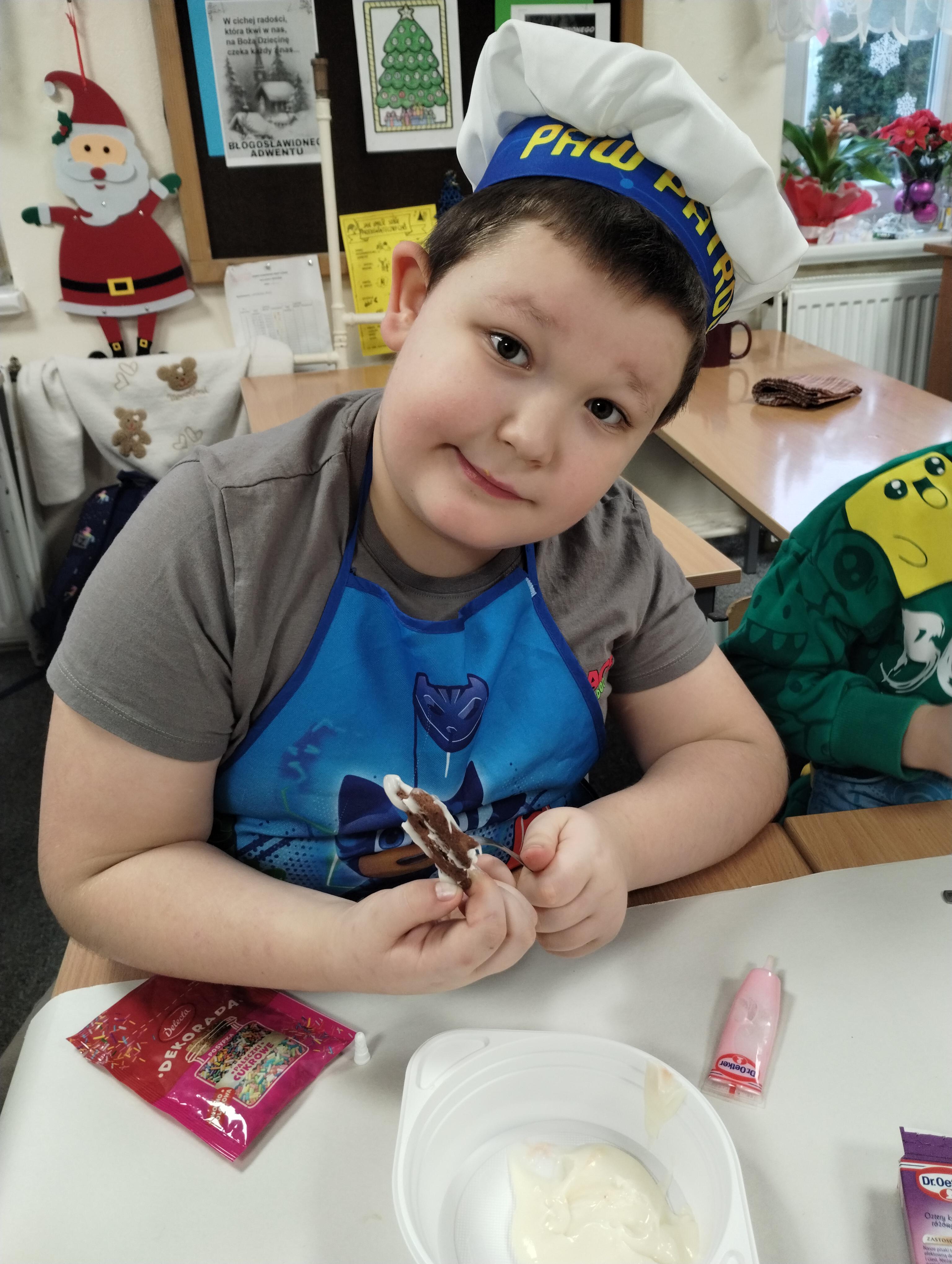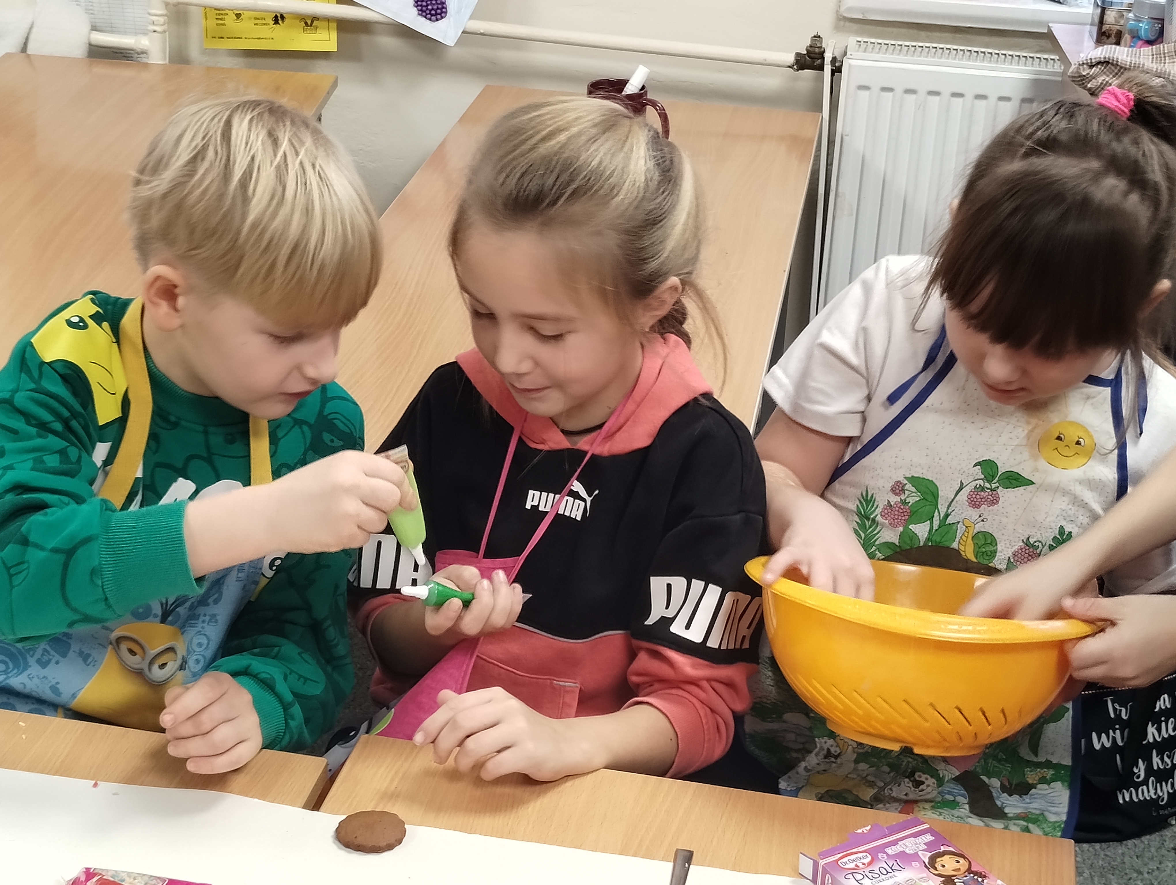 We wtorek, 16 grudnia uczniowie klasy I dekorowali pierniczki. Te pyszne ciasteczka piecze się w okresie przedświątecznym w wielu domach. Ich piękny, korzenny zapach przypomina nam wszystkim, że święta Bożego Narodzenia są tuż za progiem. Nasze zajęcia rozpoczęły się od wprowadzenia w historię piernika i obejrzenia legendy: „O toruńskich piernikach”. Następnie pierwszoklasiści w miłej atmosferze przystąpili do dekorowania ciasteczek lukrem, pisakami, kolorowymi posypkami i cukiereczkami. Pierniki miały różne kształty, a pomysłów na ich dekorowanie było całe mnóstwo. Wszystkie dzieci ozdabiając ciasteczka, wykazały się dużą starannością, pomysłowością i kreatywnością. Trzeba przyznać, że ciasteczka te przypominają małe arcydzieła pełne kolorów i świątecznego blasku. Być może któreś z dzieci w przyszłości zostanie cukiernikiem? Ta kulinarna zabawa zapewne przyczyniła się do nawiązania koleżeńskich relacji między uczniami. Była też świetną okazją do utrwalenia tradycji bożonarodzeniowych oraz źródłem wielu radosnych chwil dla dzieci. Był to także czas wspólnego oczekiwania na radosne święta Bożego Narodzenia. Pięknie udekorowane pierniki znajdą się na wigilijnym stole podczas klasowej wigilii. Wigilię w naszej klasie rozpoczniemy zgodnie z tradycją od połamania się opłatkiem i złożenia sobie świątecznych życzeń.