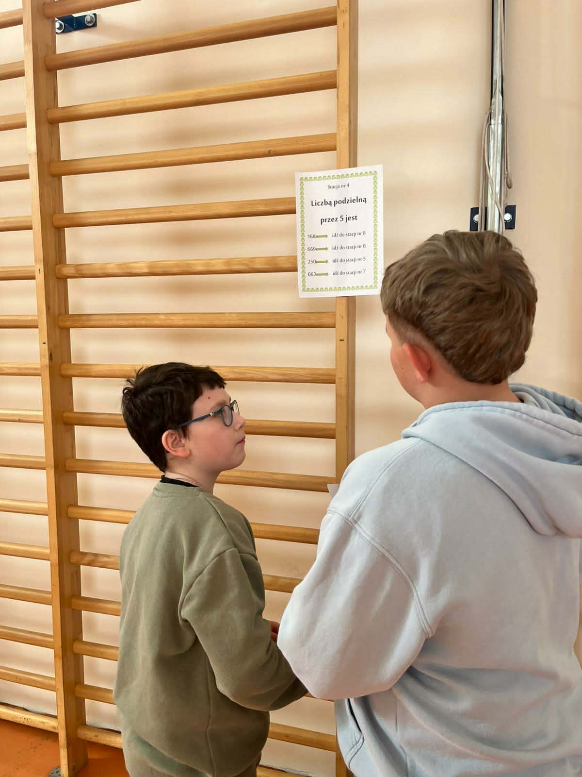 Jak co roku nie zabrakło „matematyki w ruchu”. Uczniowie pracowali przy stacjach zadaniowych, które były przygotowane na różnych poziomach trudności. Od prostych zadań tekstowych, poprzez działania na liczbach, aż po zadania na poziomie przygotowującym do egzaminu ósmoklasisty. Dzięki temu każdy mógł znaleźć coś dla siebie i spróbować swoich sił w matematycznych wyzwaniach. Trzeba zaznaczyć, że większość wykonała wszystkie poziomy stacji.