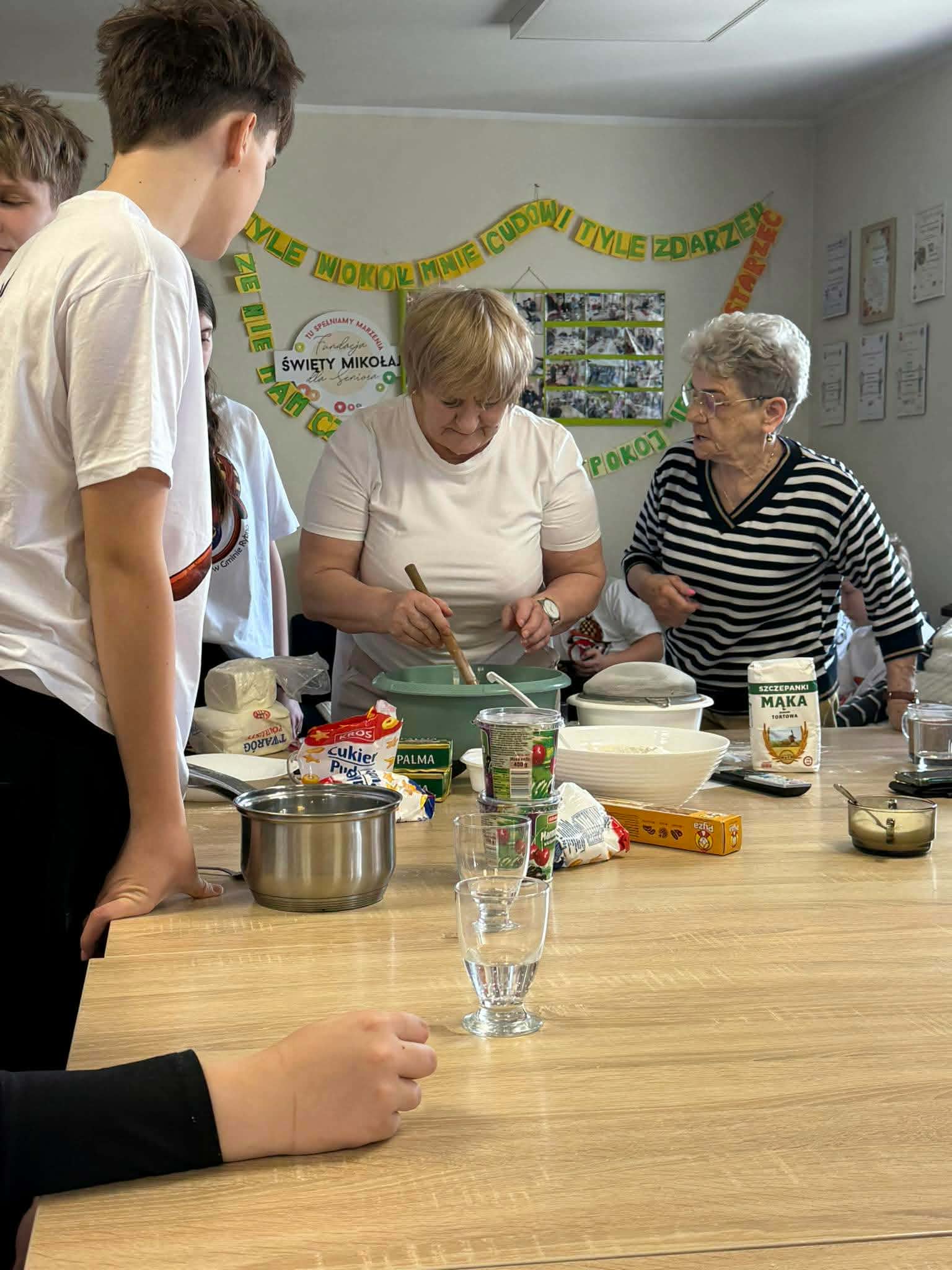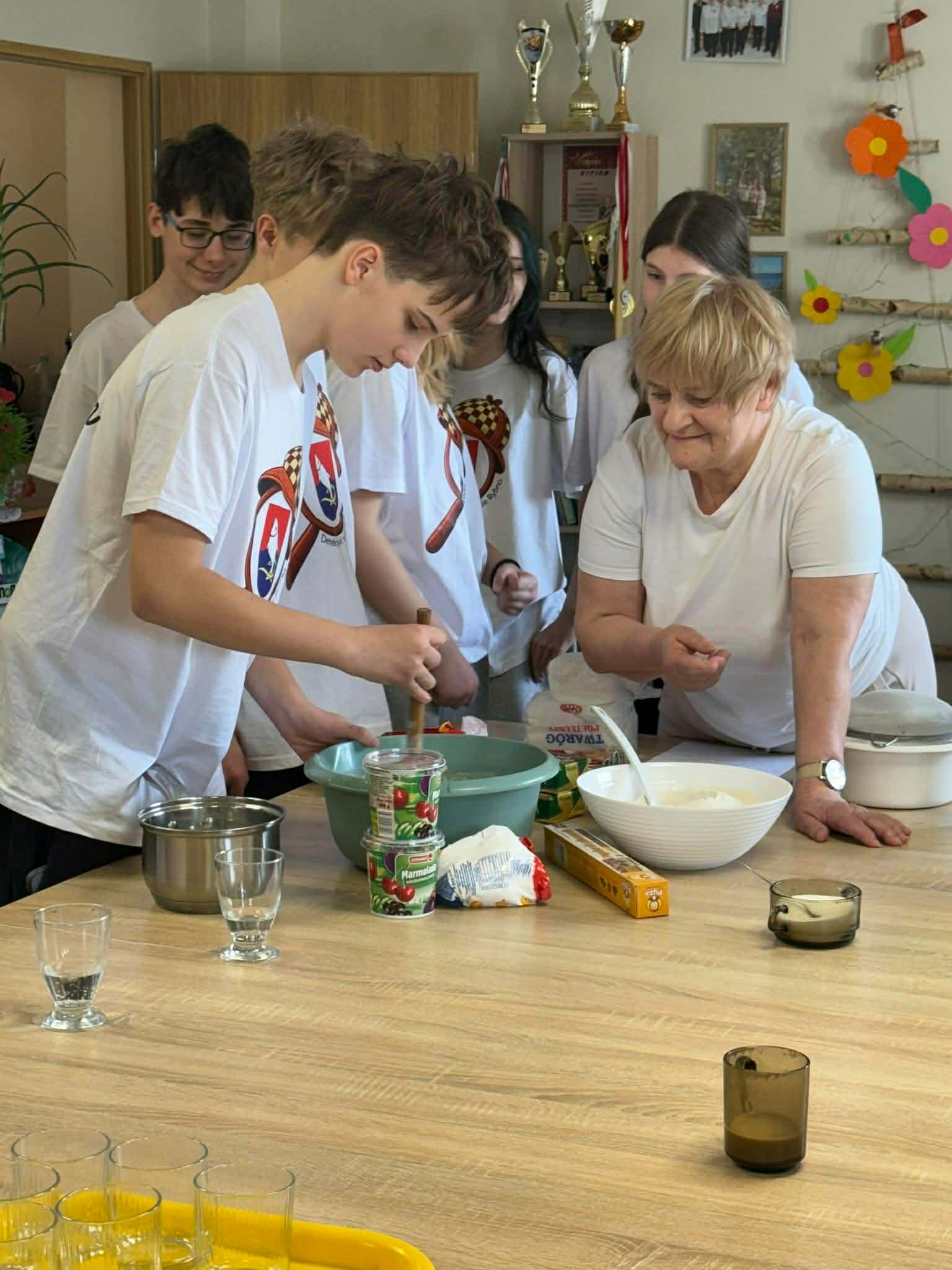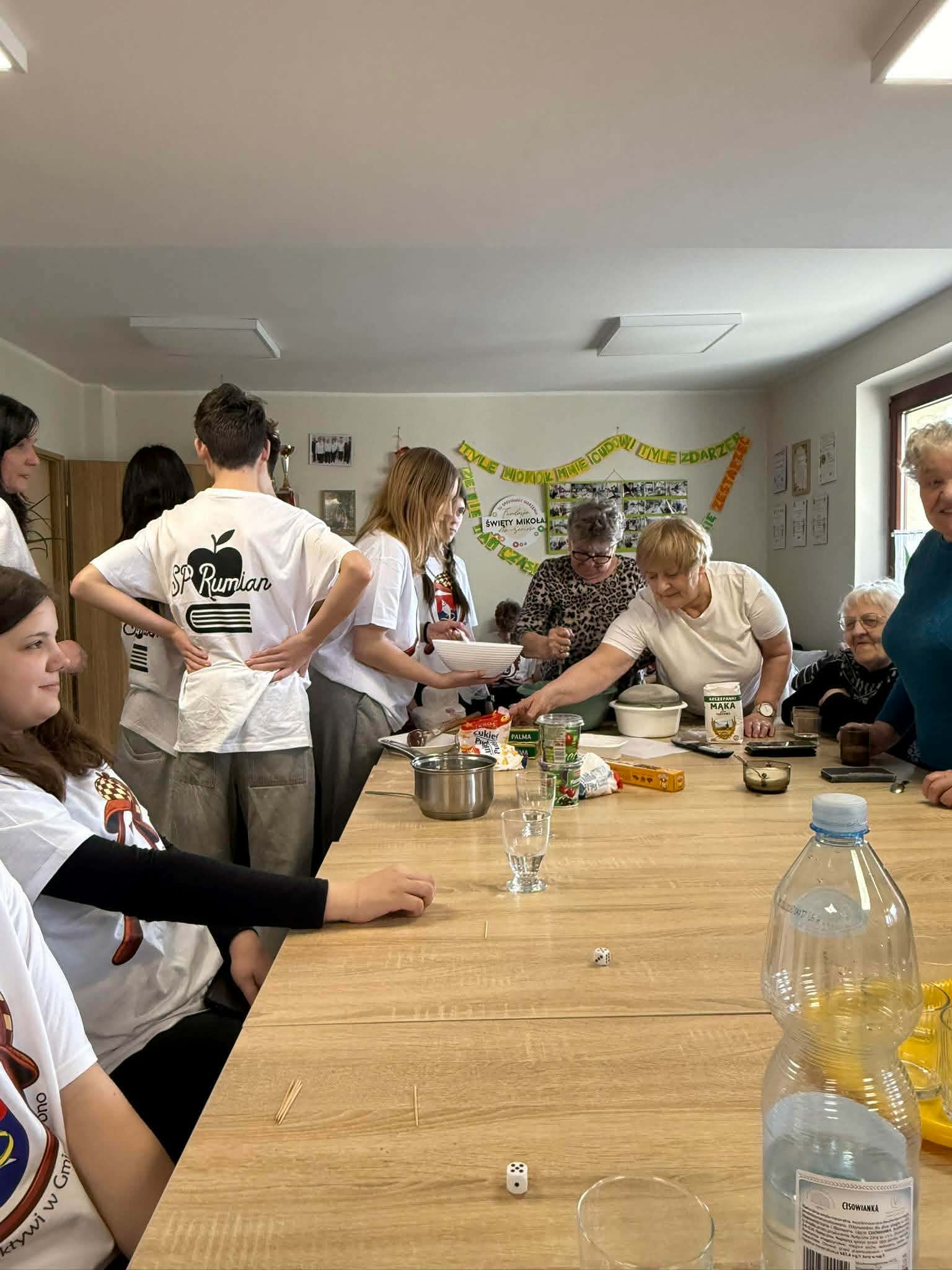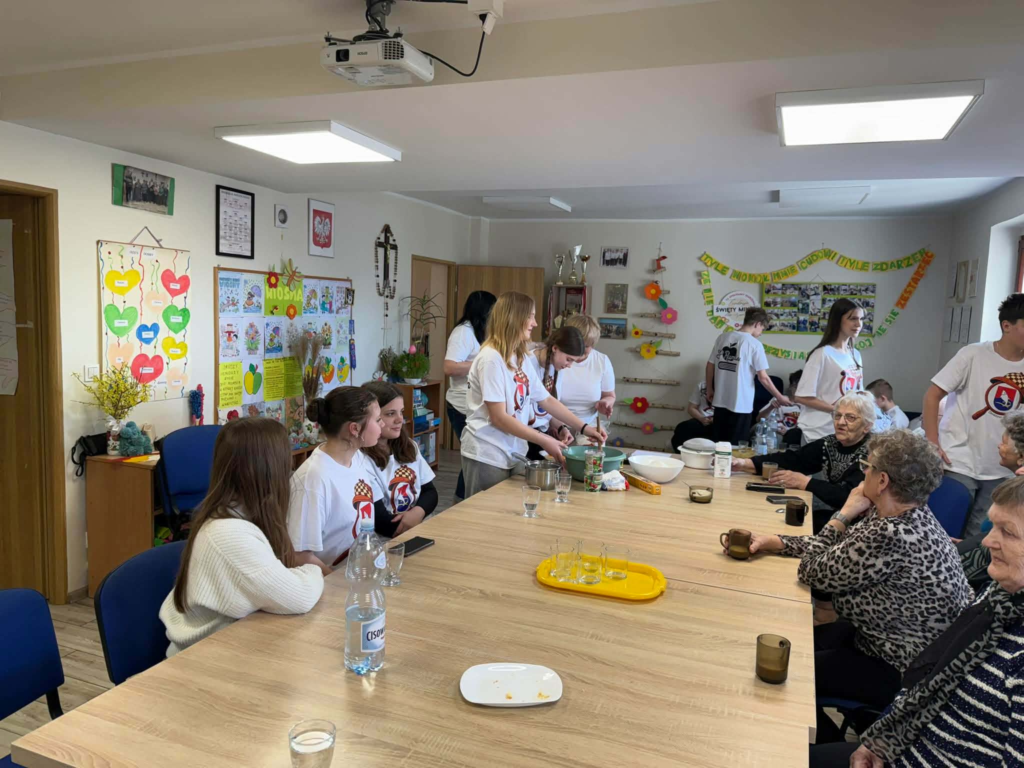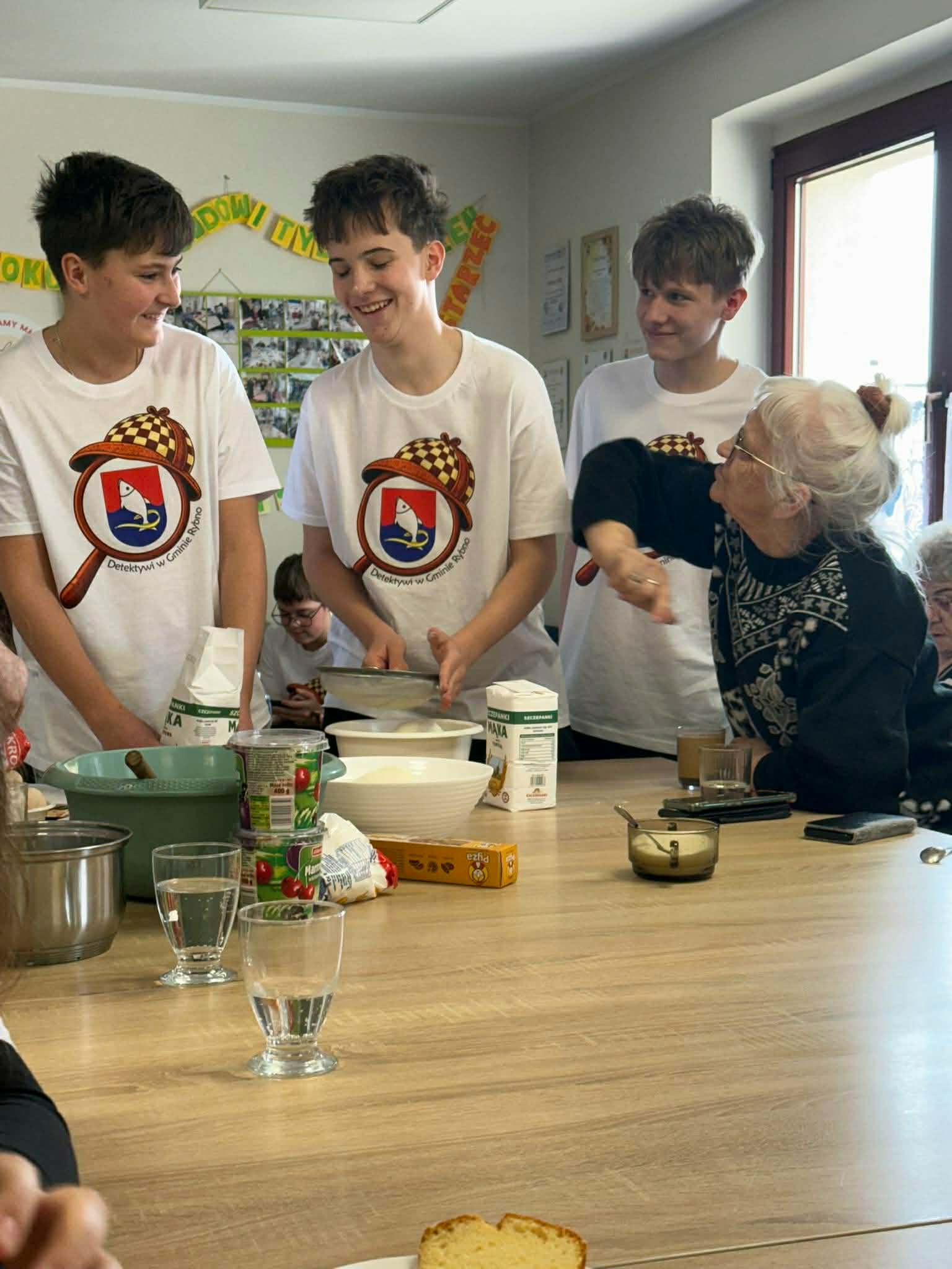 W Domu Seniora w Rybnie uczniowie przeprowadzili wywiady z seniorami w oparciu o eksponaty, które będą tworzyć szkolne muzeum „W starej piwnicy”. Wspólnie z seniorami odtworzyli tradycyjny przepis „Szneka z glancem”. Uczniowie odwiedzili partnerów projektu Gminę Rybno. Opowiedzieli realizację swojego projektu, a wszystkich pracowników poczęstowali przygotowanymi sznekami. Był to dzień pełen wrażeń, wzruszeń i powrotu do smaków dzieciństwa.