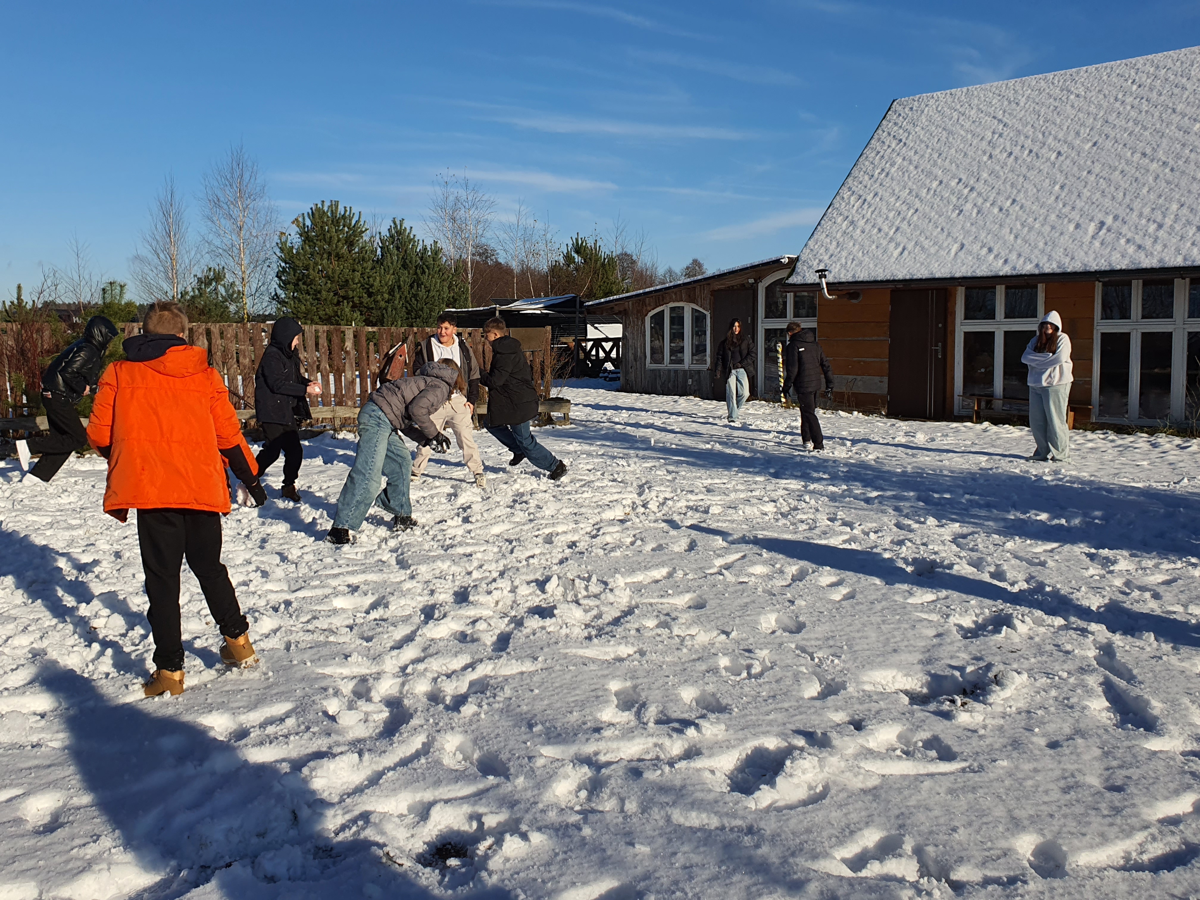 W przerwie oglądaliśmy miejsca pracy i narzędzia stolarza, cieśli, kołodzieja i kowala. Niezwykłą atrakcją była przekąska z ziemniaków podawanych z parnika babci. Na świeżym powietrzu ta prosta potrawa uczniom wyjątkowo smakowała niczym wykwintny smakołyk. Wiele śmiechu i radości przyniosła wesoła zabawa integracyjna na śniegu.