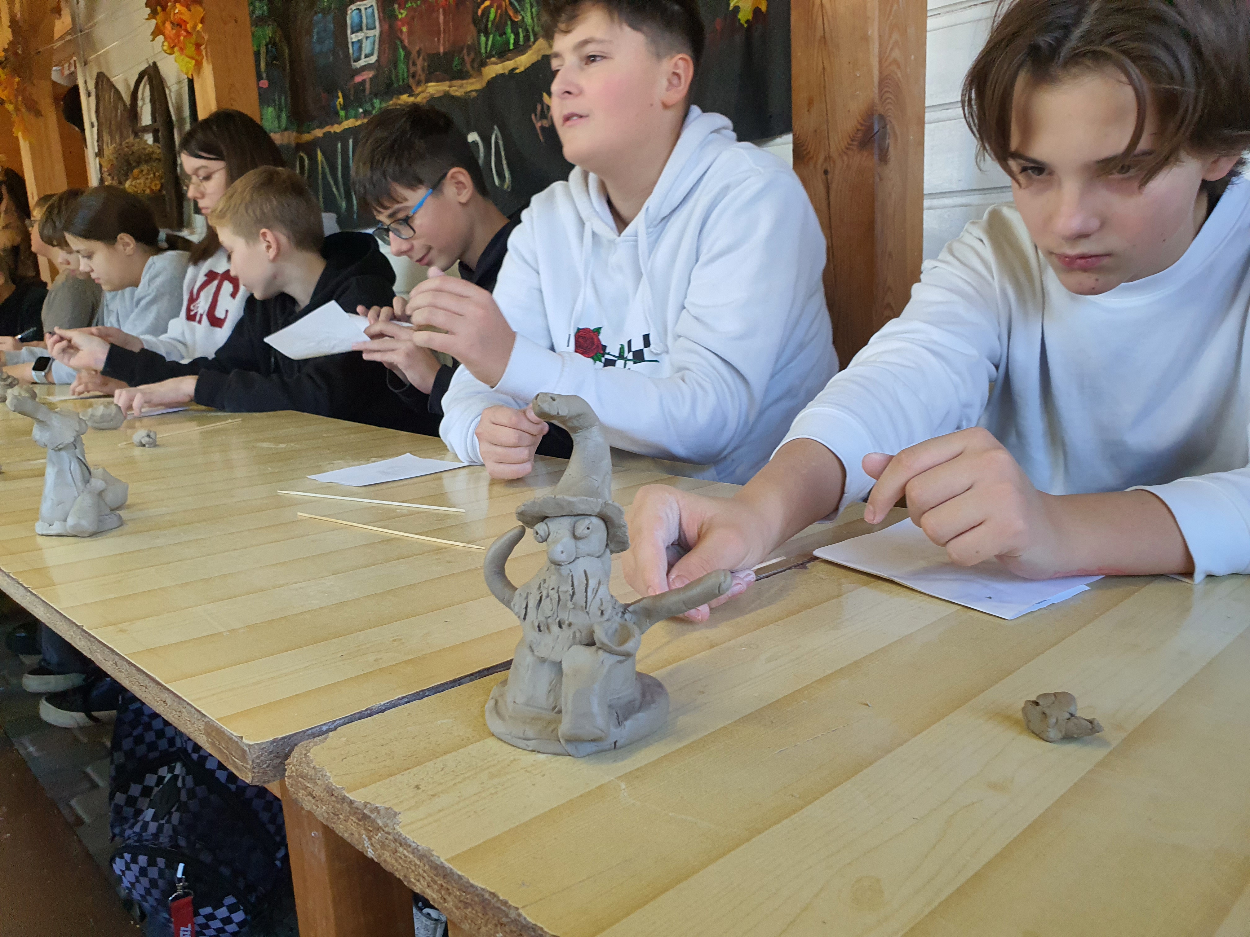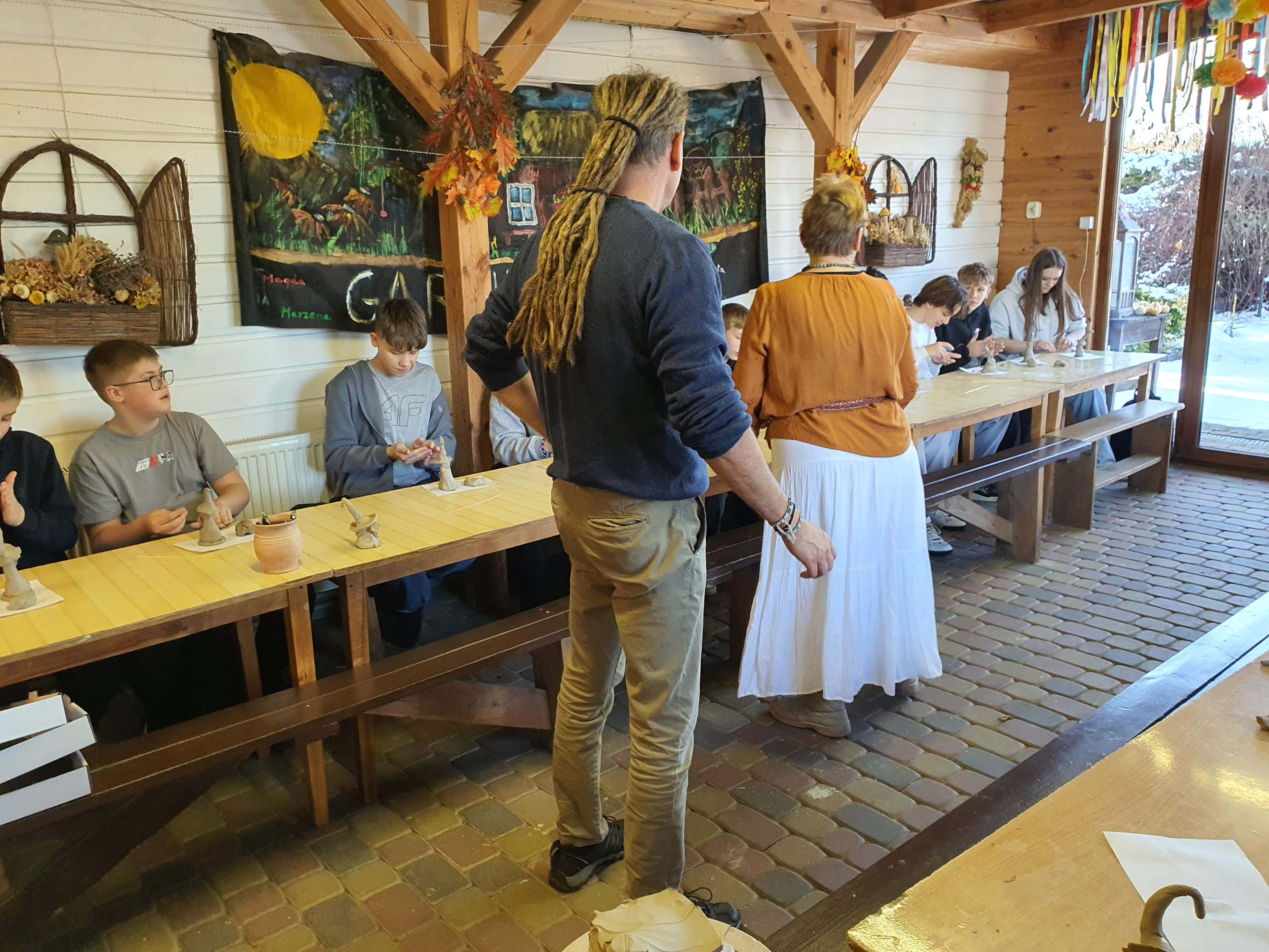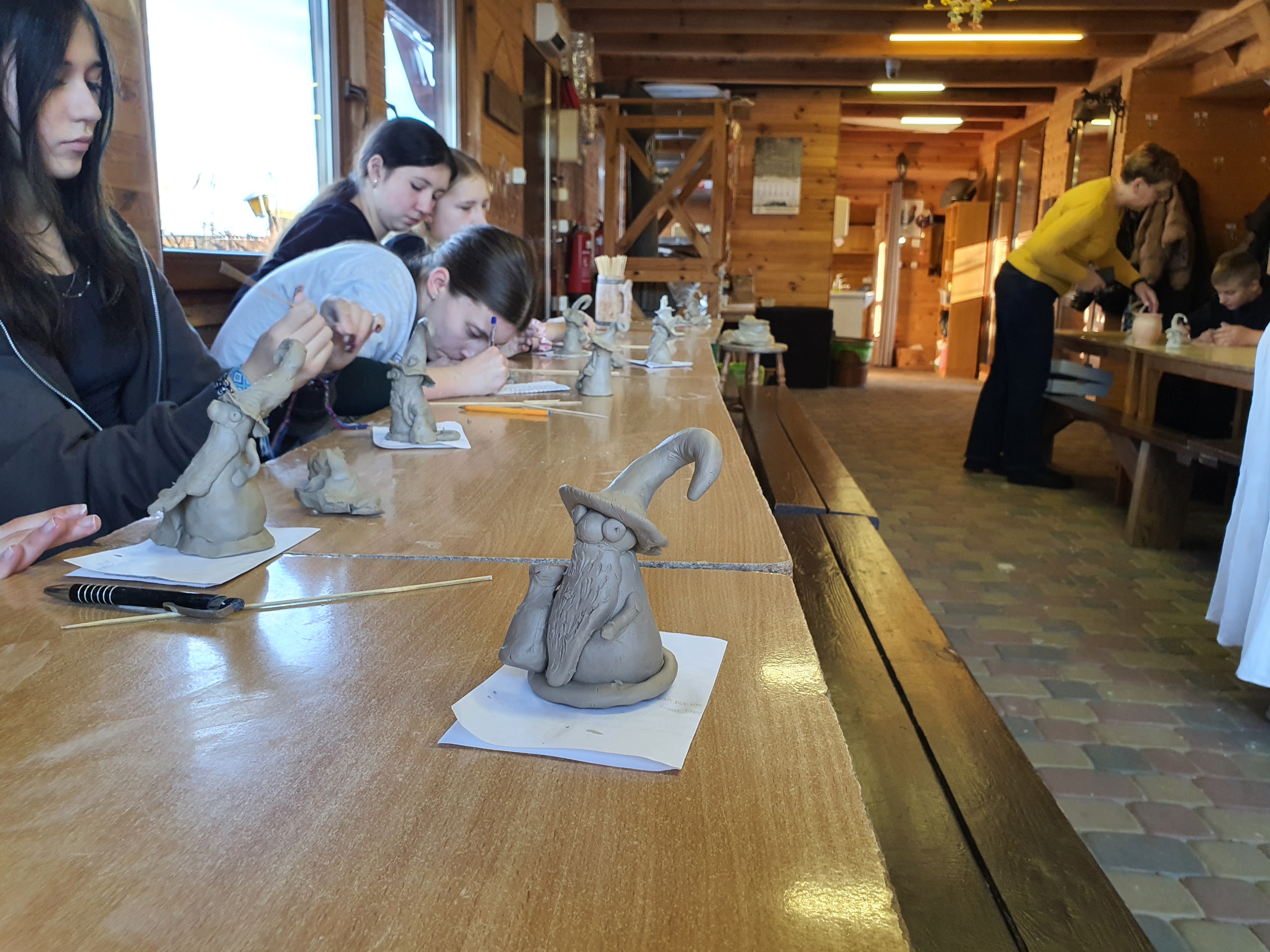 W Sali, ozdobionej artystycznymi wytworami z gliny, zasuszonych roślin i owoców, drewna oraz materiałów włókienniczych, odbyły się warsztaty ceramiczne. Pod okiem pani instruktorki uczniowie tworzyli figurki skrzatów. Krok po kroku, od przygotowania stanowiska pracy, urobienia gliny, aż do końcowego efektu, w rękach młodych twórców powstawały prawdziwe dzieła sztuki.