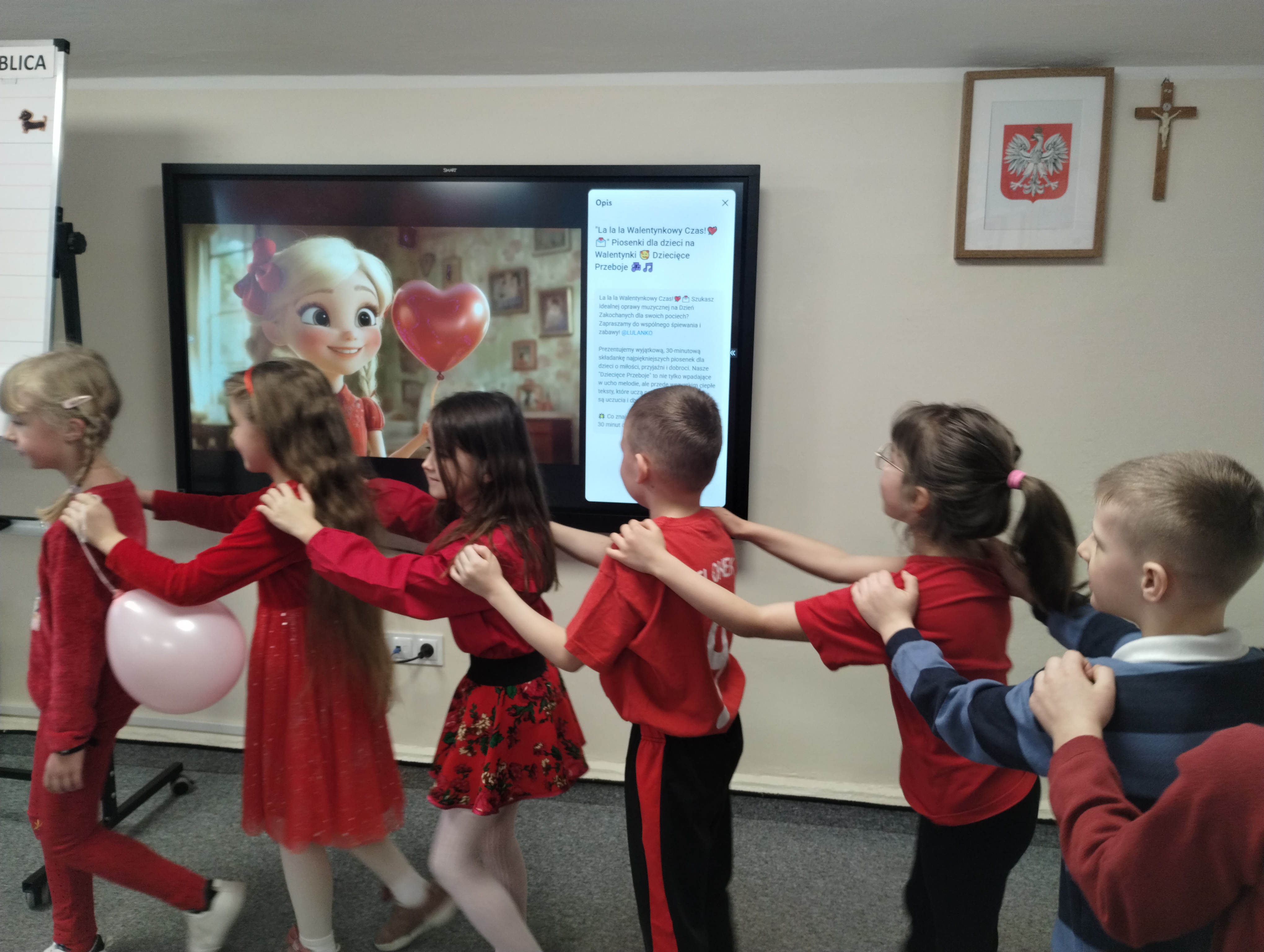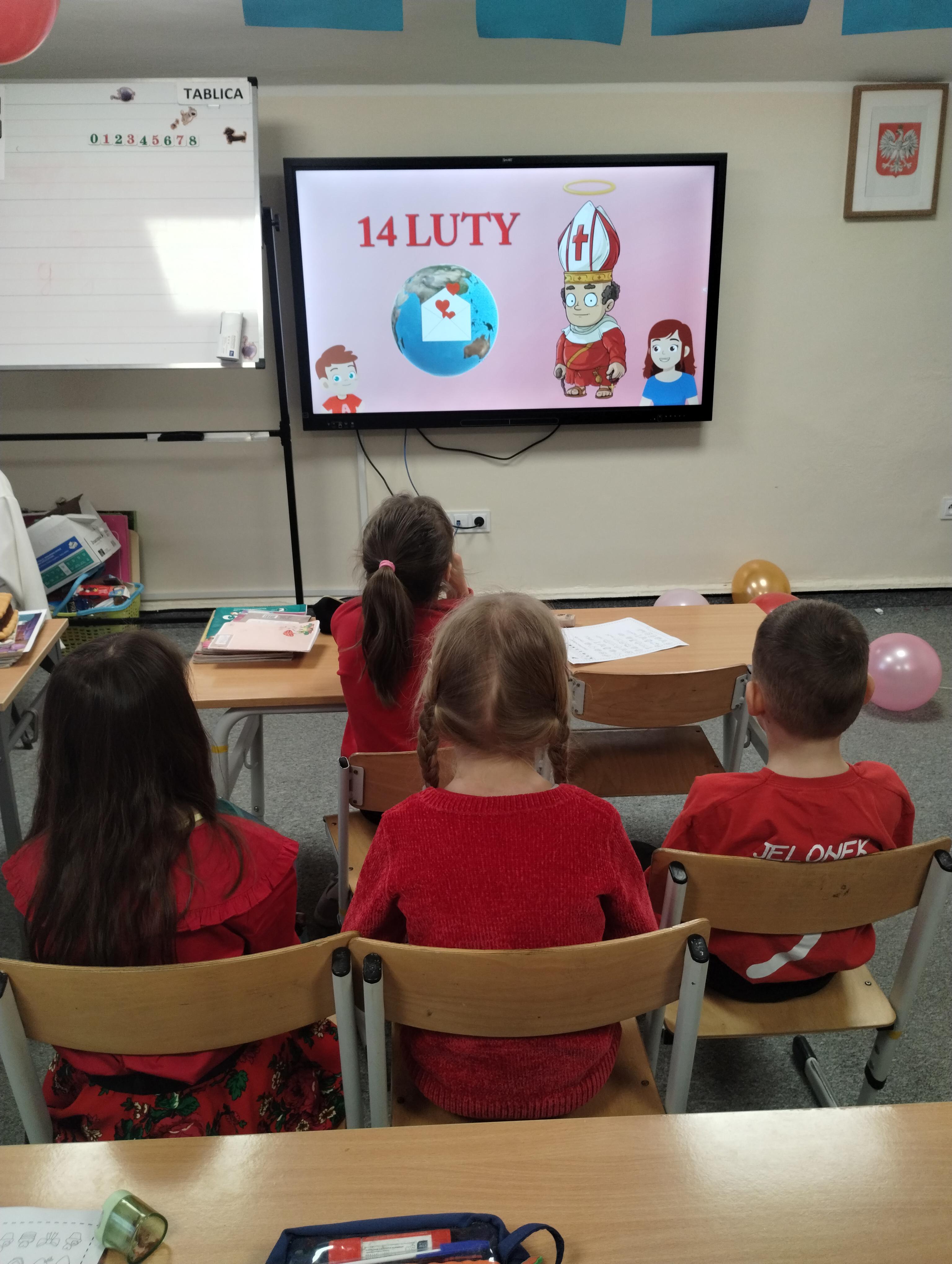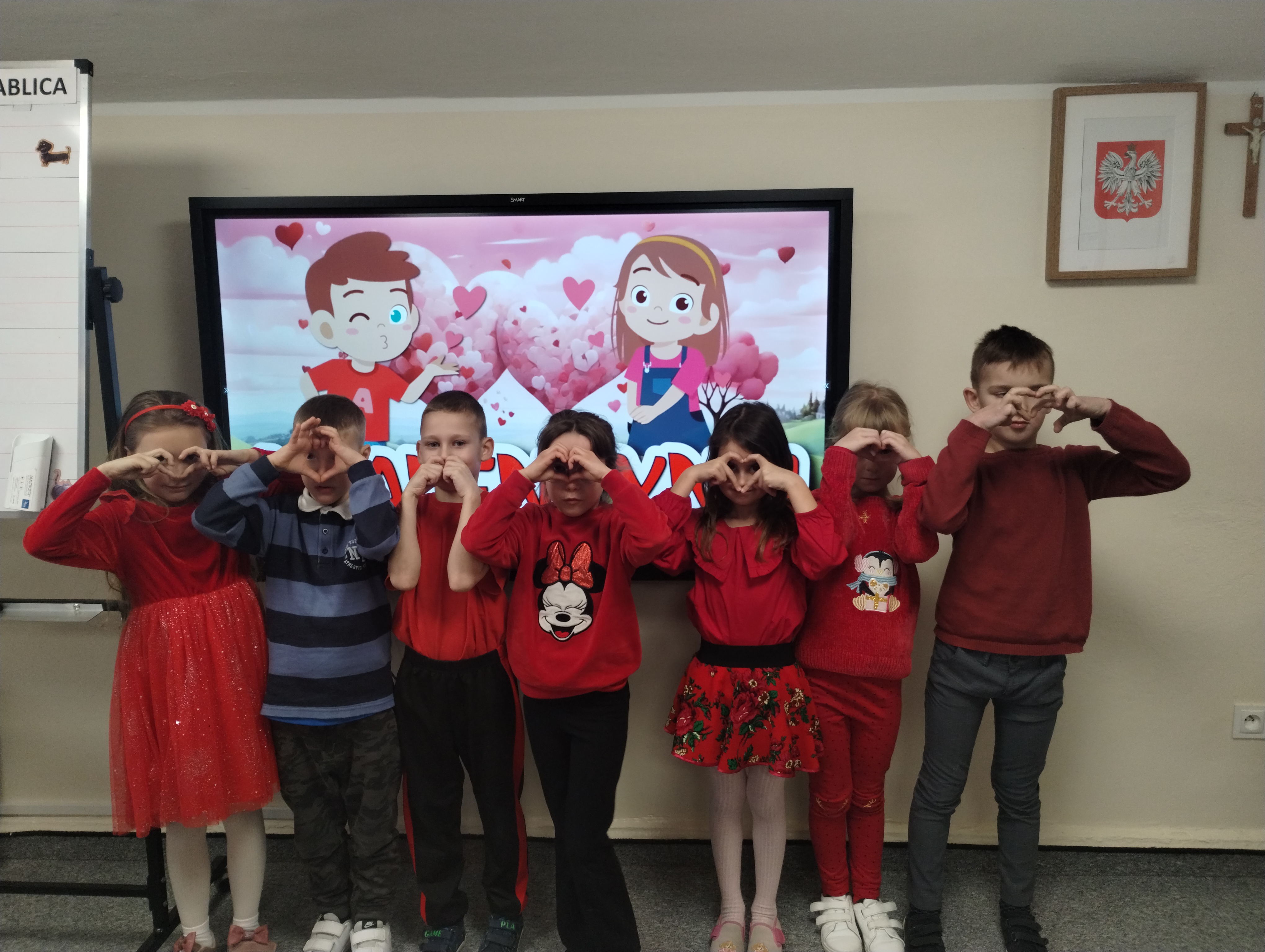 W dniu 13 lutego w klasie I obchodziliśmy Dzień Świętego Walentego, popularnie zwany walentynkami. Wśród uczniów naszej klasy święto to było doskonałą okazją do promowania przyjaźni, koleżeństwa i życzliwości między uczniami. W tym dniu w ubraniach dzieci dominował kolor czerwony. Sala lekcyjna natomiast przybrana została w serduszka i czerwone balony. Na samym początku naszej uroczystości dzieci obejrzały film edukacyjny o walentynkach, dzięki któremu poznały legendę o świętym Walentym, dowiedziały się, dlaczego święty Walenty jest patronem walentynek i jakie tradycje związane są z obchodami tego dnia. Po obejrzeniu filmu odbył się quiz wiedzy walentynkowej. Pierwszoklasiści wykazali się tu dużym zasobem wiedzy. Tego dnia na dzieci czekały różnorodne zadania o tematyce walentynkowej. Były to między innymi: rozsypanki literowe, krzyżówka walentynkowa, zadania matematyczne z serduszkami w roli głównej. Z inicjatywy Samorządu Uczniowskiego tradycyjnie zorganizowana była w szkole „poczta walentynkowa”. Uczniowie klasy I wykonali także laurki dla swoich rodziców, którym to należą się przecież szczególne wyrazy wdzięczności i głębokiej miłości. Na zakończenie tej miłej uroczystości odbyły się pląsy i zabawy przy walentynkowej muzyce dziecięcej. Nie zabrakło również słodkiego poczęstunku. Niepowtarzalna atmosfera klasowych walentynek zapewne na długo pozostanie w pamięci pierwszaków. Trzeba przyznać, że był to dzień spędzony w radosnej i przyjacielskiej atmosferze.