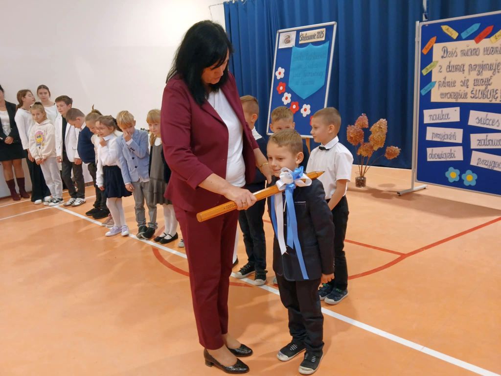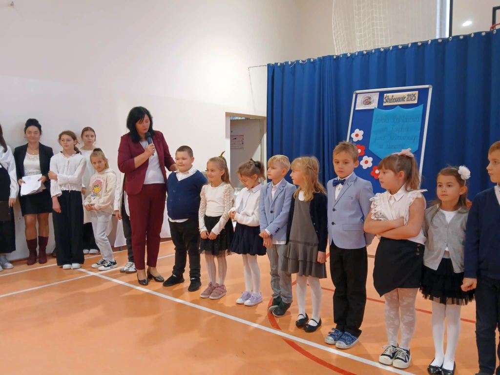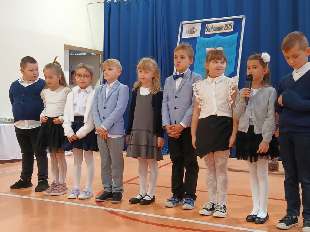 27 października 2025 r. pierwszoklasiści przybyli do szkoły w galowych ubraniach, a na ich twarzach gościł promienny uśmiech. To była bardzo ważna data w ich szkolnym kalendarzu. W tym to bowiem dniu w Szkole Podstawowej im. ks. Jana Twardowskiego w Rumianie odbyła się uroczystość ŚLUBOWANIA I PASOWANIA NA UCZNIA. Do naszej społeczności szkolnej dołączyło 12 pierwszoklasistów. W uroczystości tej uczestniczyli: pani dyrektor Hanna Kirchhof, rodzice, nauczyciele, uczniowie klas młodszych oraz przedszkolaki. Całe wydarzenie prowadzone było przez przedstawicieli Samorządu Szkolnego.