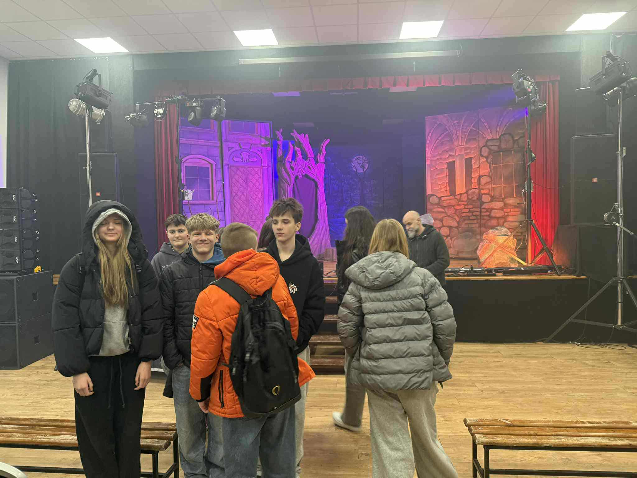 4 lutego 2026 roku uczniowie klasy VII i VIII wzięli udział w wyjeździe do Lubawy na sztukę teatralną pt. „Dziady” część II Adama Mickiewicza. Przedstawienie, zaplanowane w ramach zajęć edukacyjnych, było dla ósmoklasistów doskonałą okazją do przypomnienia sobie treści lektury obowiązkowej, a uczniowie klasy VII, zainspirowani obejrzaną sztuką, na pewno chętnie sięgną po książkę naszego wielkiego poety okresu romantyzmu.