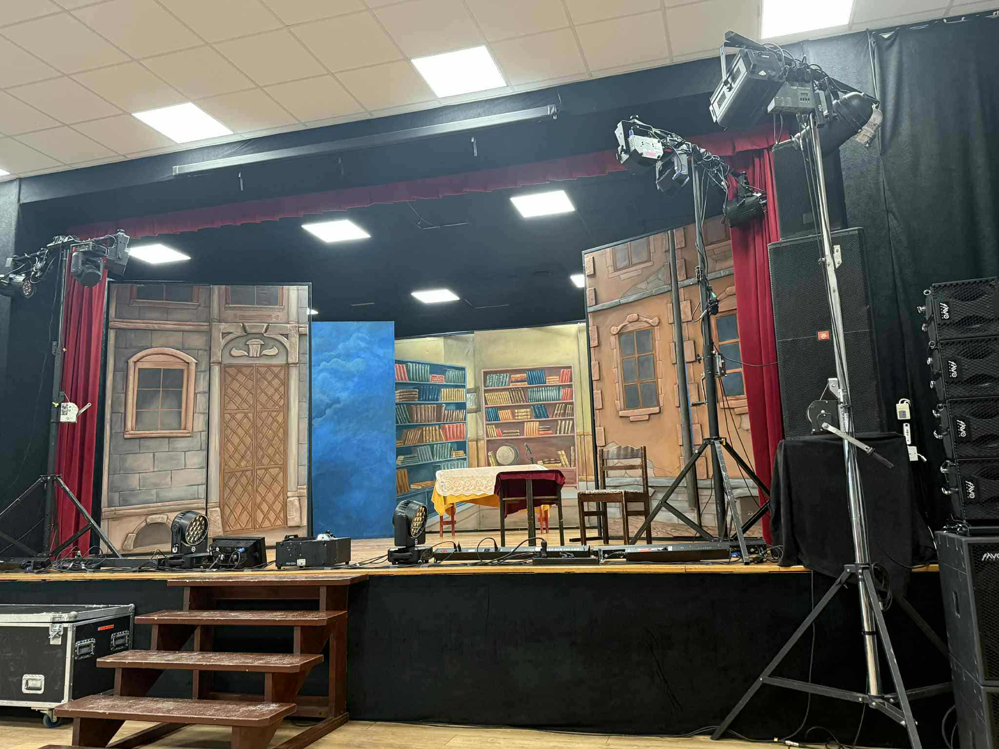 Już zaraz po wejściu na salę Miejskiego Ośrodka Kultury zaskoczyła nas bogata scenografia, którą można było podziwiać dzięki otwartej kurtynie. Przedstawiała wnętrze dziewiętnastowiecznego dworu szlacheckiego. To się nieco kłóciło z naszą wiedzą na temat dramatu. Okazało się jednak, że pierwsza część przedstawienia dotyczyła wydarzeń z biografii Mickiewicza, z czasów nauczycielskiej pracy w Kownie, działalności w patriotycznej organizacji studenckiej Filomatów i znajomości z Marylą Wereszczakówną, jego niespełnioną, młodzieńczą miłością.