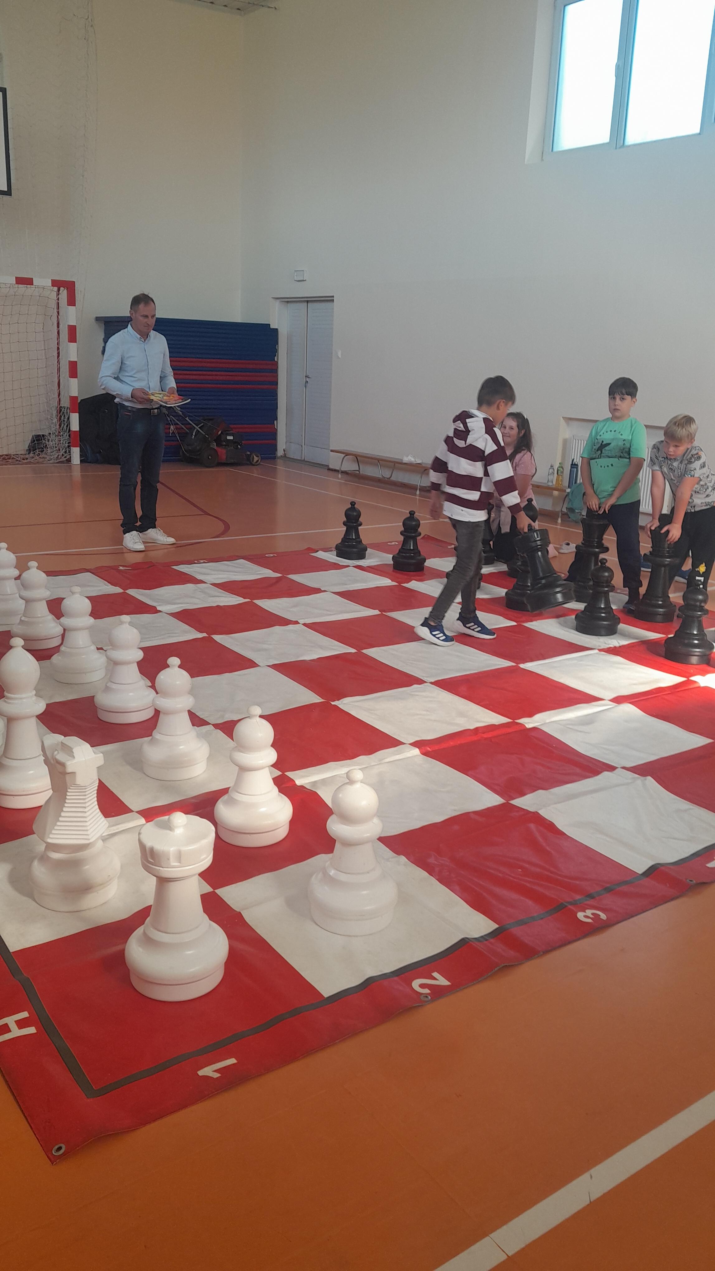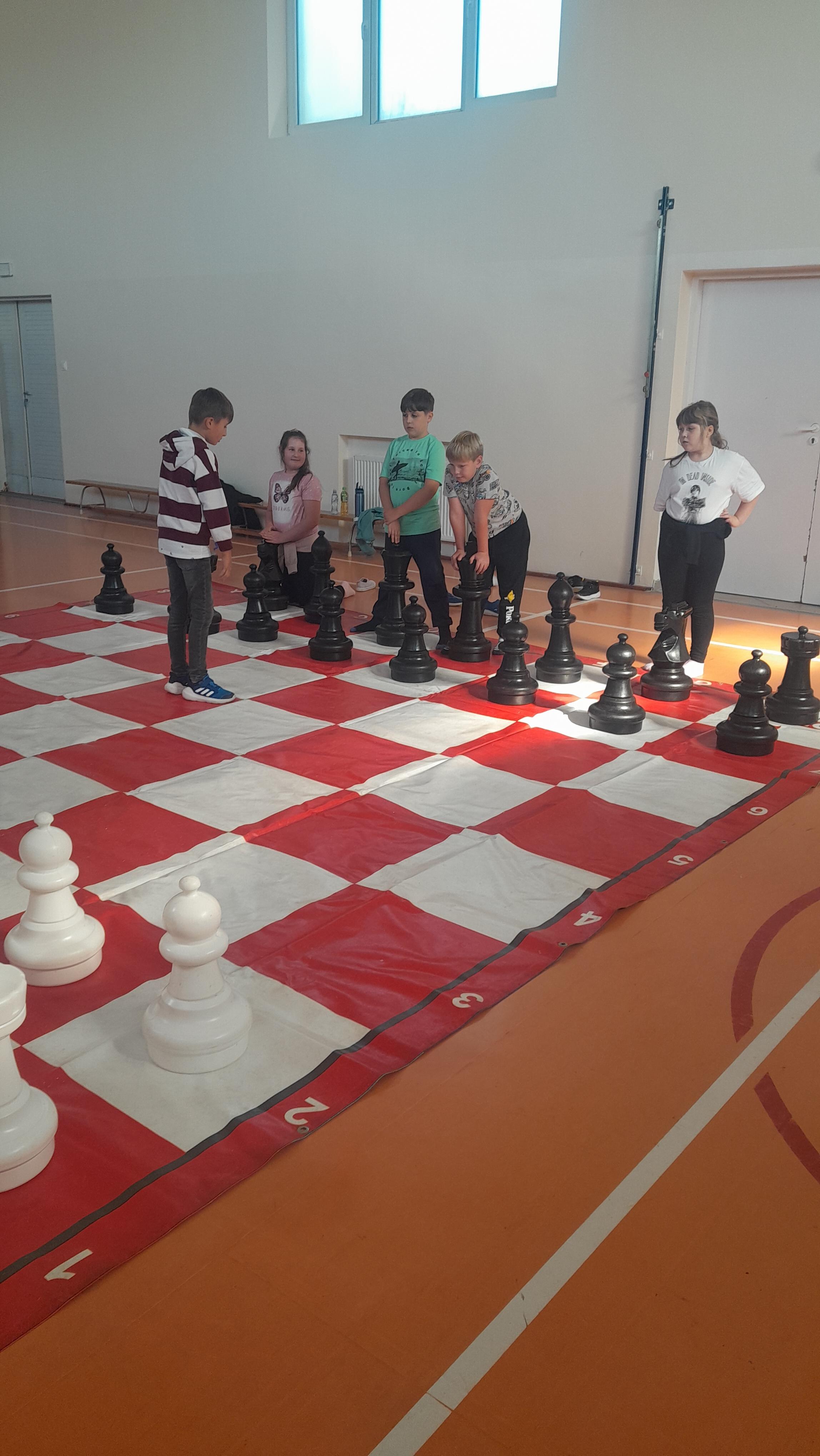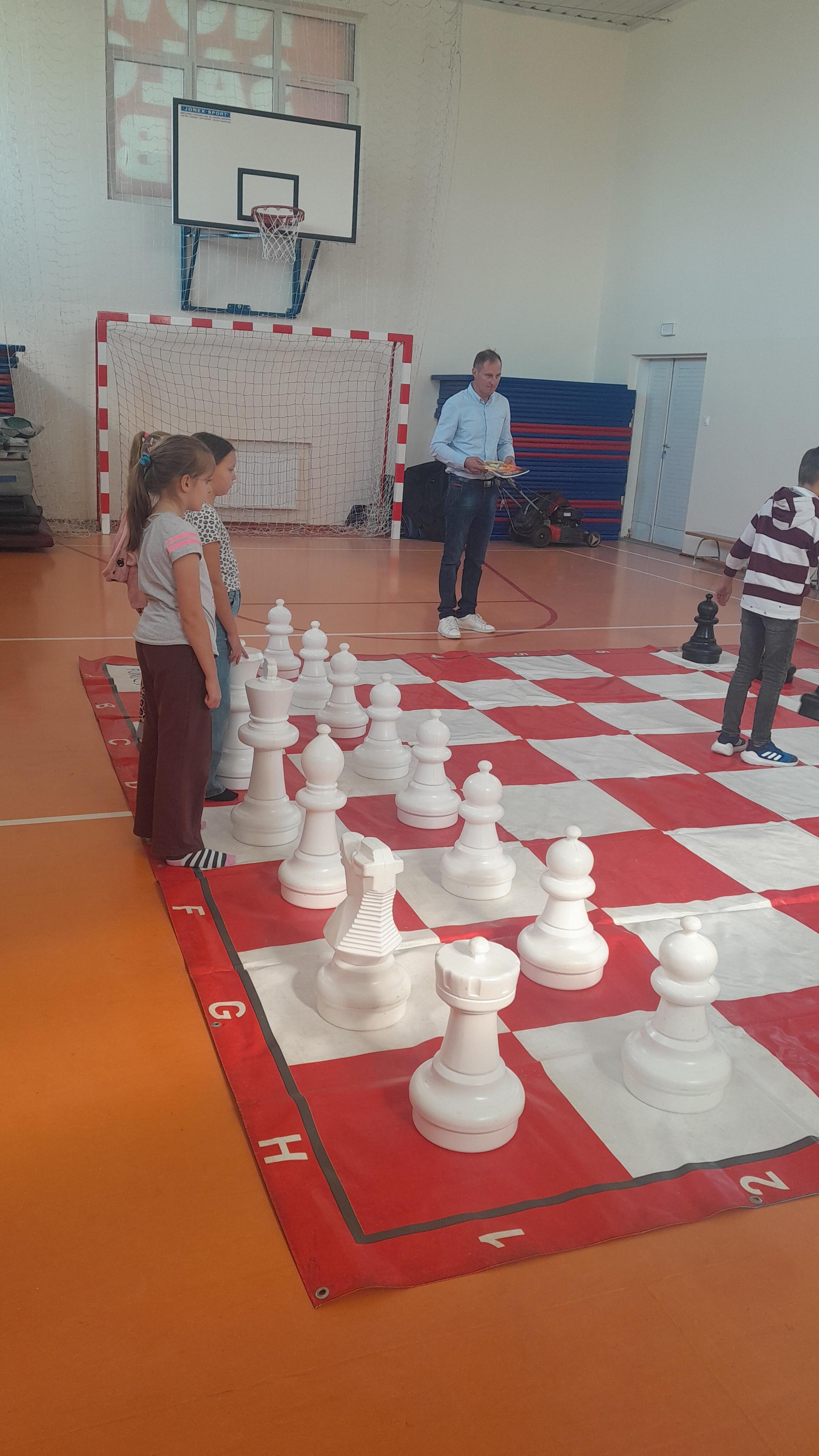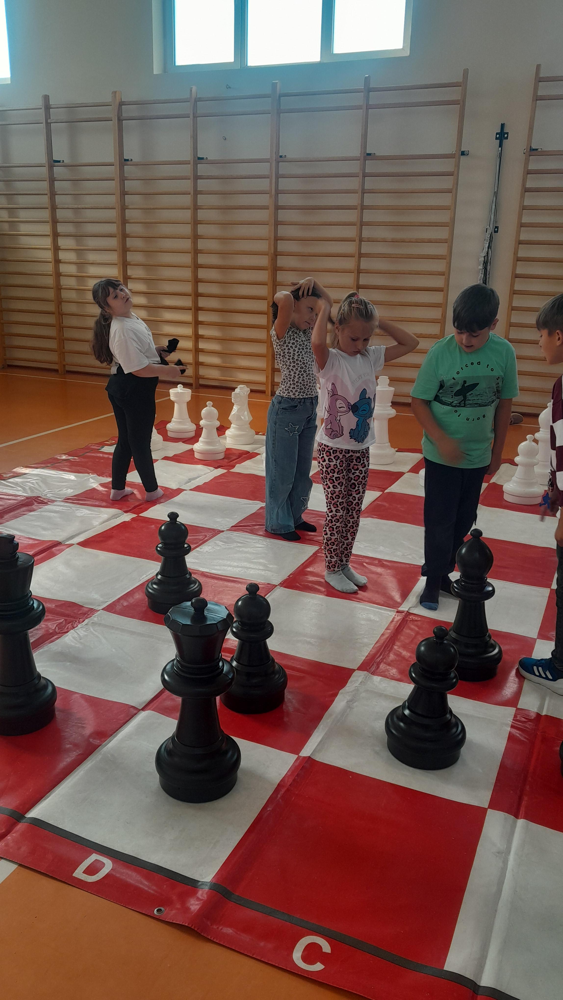 Zajęcia kreatywne to czas, w którym uczniowie mogą rozwijać swoje pasje, uczyć się współpracy i odkrywać nowe zainteresowania poprzez zabawę i różnorodne aktywności. To moment, w którym nauka łączy się z radością i inspiracją, a dzieci mają okazję doświadczać czegoś wyjątkowego. Dzisiejsze zajęcia rozwijające kreatywność w klasie II były wyjątkowe, bowiem uczniowie mogli sprawdzić swoje umiejętności w szachach plenerowych, gdzie pionki i figury miały naprawdę imponujące rozmiary. Dzięki uprzejmości pana Tomasza Bieleckiego – taty Kornela – dzieci mogły przenieść się w niezwykły świat królewskiej gry i poczuć się jak prawdziwi mistrzowie szachownicy. Pan Tomasz wraz z Kornelem nie tylko rozstawili szachy, ale i w ciekawy sposób opowiadali o zasadach gry. Wspólnie zdradzali różne patenty i strategie, które mogą pomóc w przyszłych rozgrywkach. Uczniowie mieli okazję zadawać pytania, rozwiązywać zagadki szachowe i sprawdzać swoją wiedzę w praktyce. Była to znakomita okazja, by niektórzy uczniowie poznali podstawowe zasady szachów, a inni mogli doszlifować swoje dotychczasowe umiejętności. Gra w tak dużej skali była dla dzieci świetną zabawą, a jednocześnie rozwijała ich logiczne myślenie, cierpliwość i umiejętność planowania. Takie zajęcia pokazują, że nauka może łączyć się z radością i inspiracją, a czas spędzony razem owocuje nie tylko zdobywaniem nowych umiejętności, lecz także integracją całej klasy. Serdecznie dziękujemy Panu Bieleckiemu oraz Kornelowi za przygotowanie i poprowadzenie tej wyjątkowej lekcji. Dzięki ich zaangażowaniu dzieci mogły odkrywać tajniki królewskiej gry w niecodzienny, inspirujący sposób.