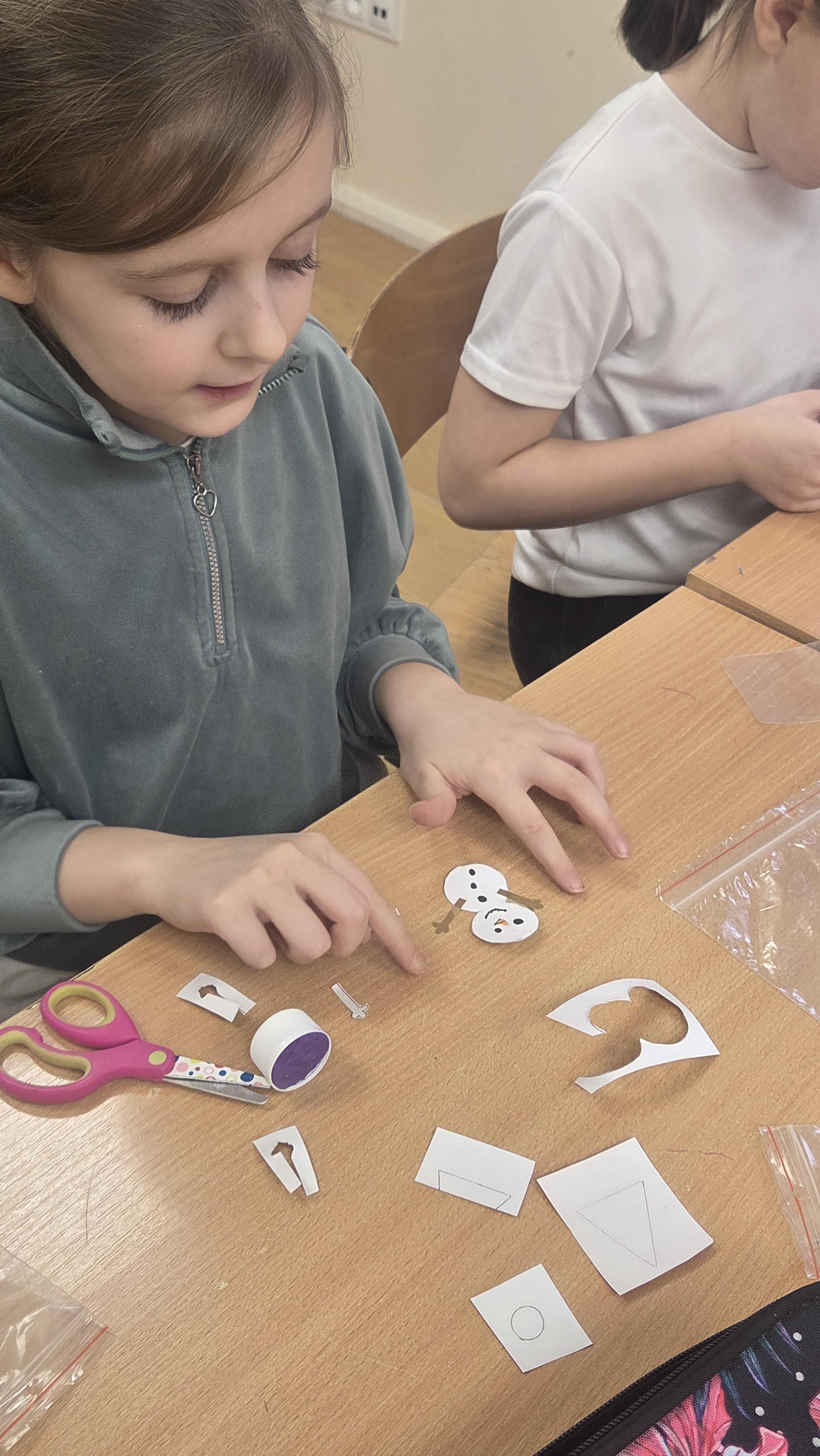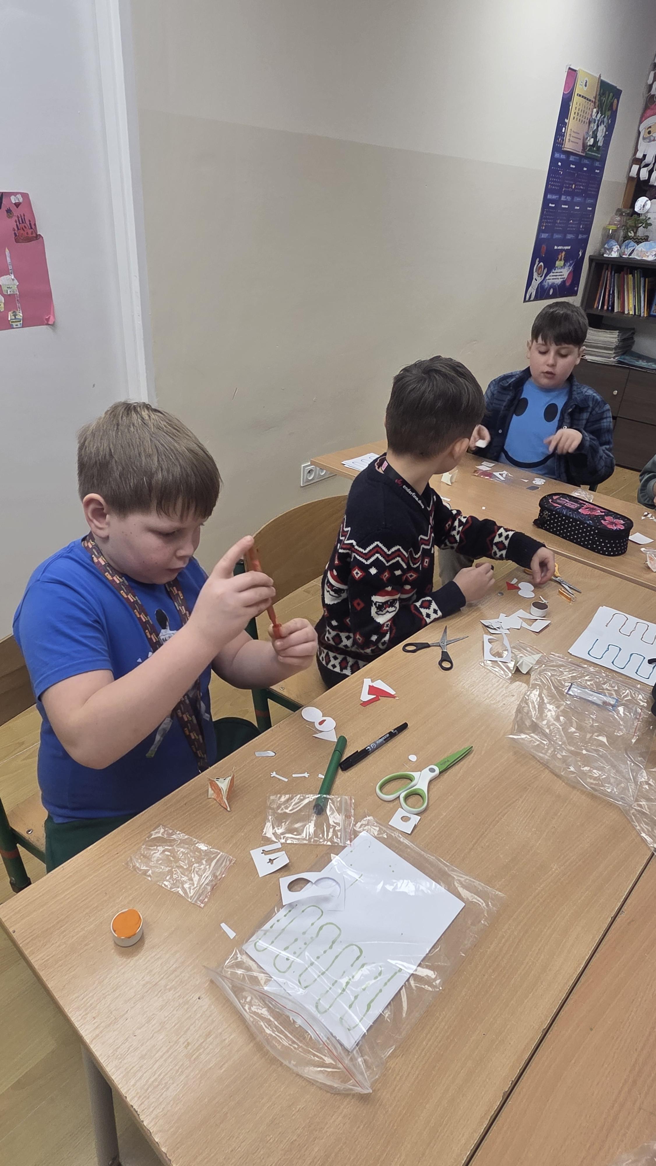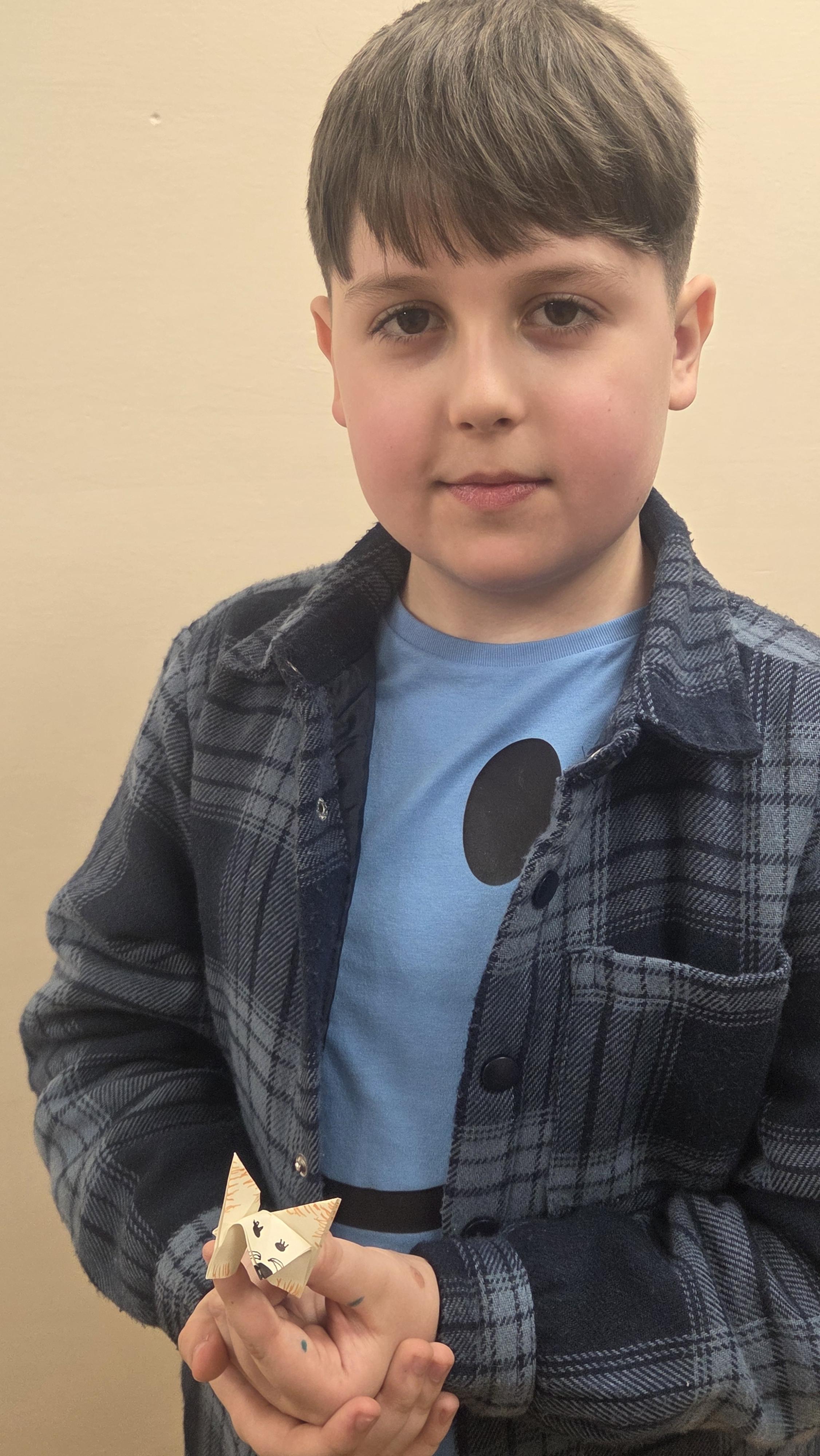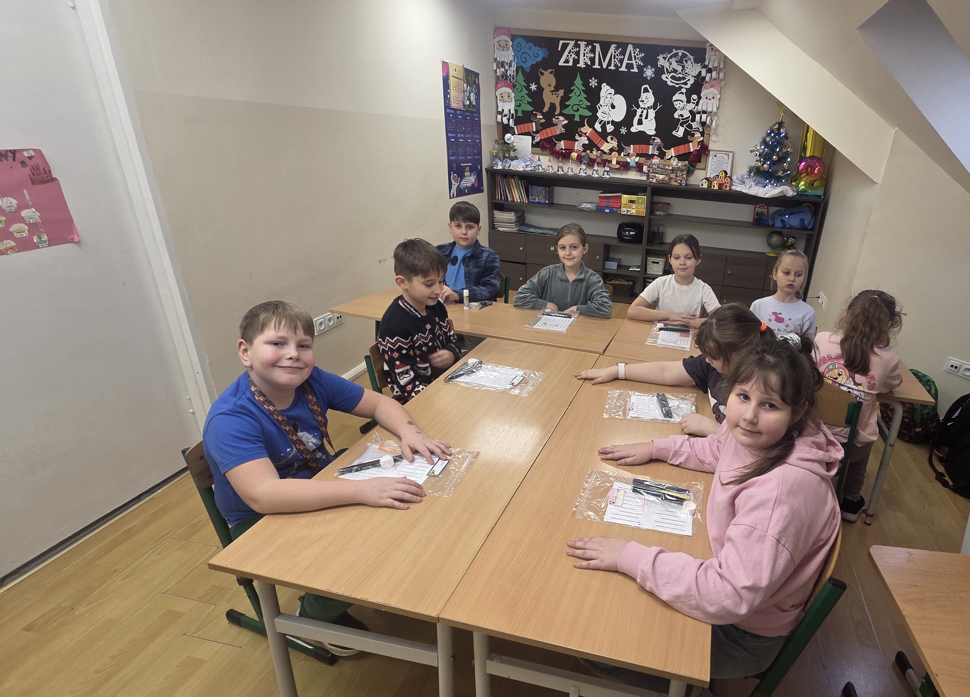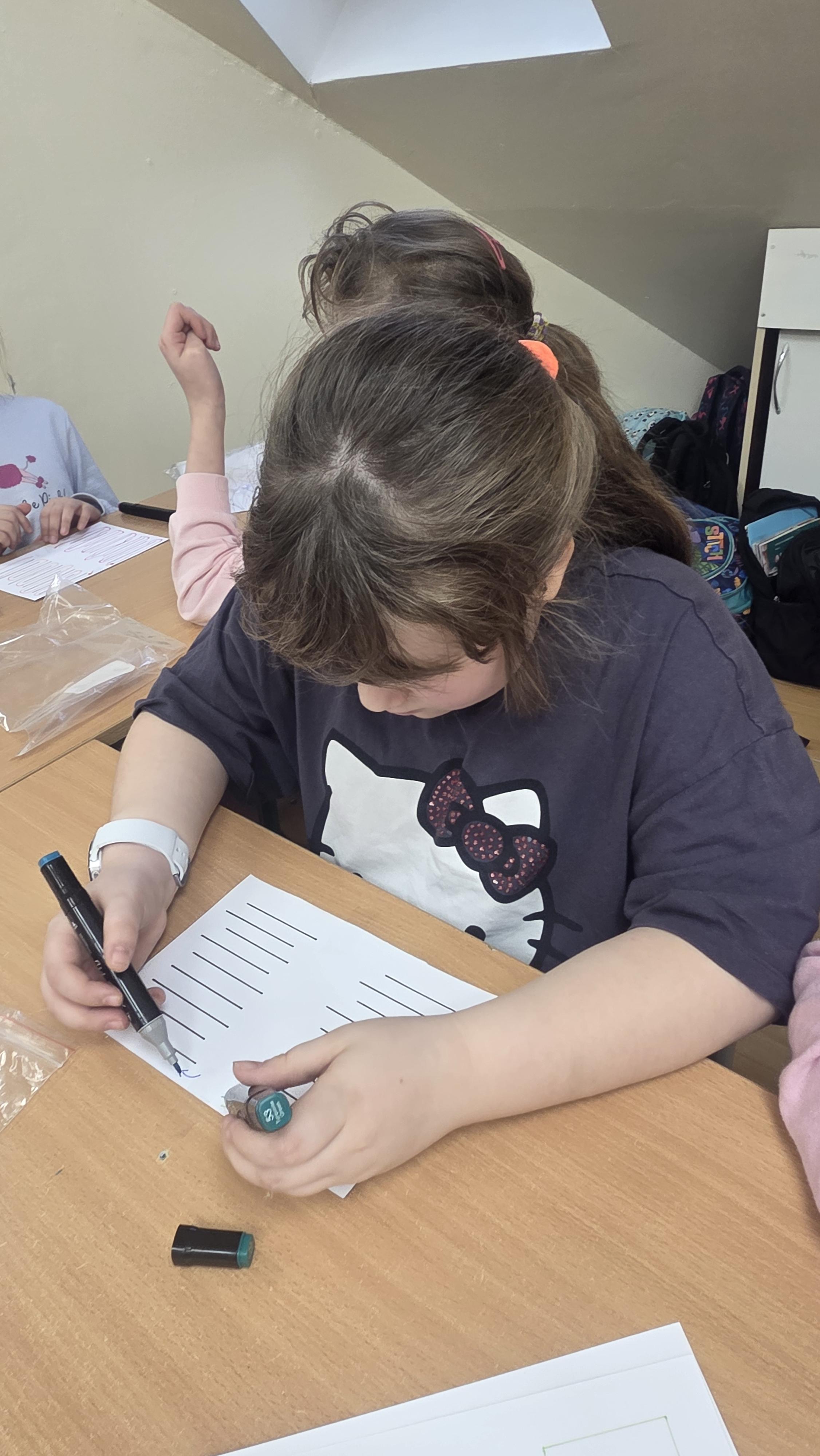 Uczniowie klasy drugiej wzięli dziś udział w niezwykle ciekawych i pełnych radości zajęciach kreatywnych, które tym razem poprowadził Bartek Zelma. Program spotkania był wyjątkowo różnorodny i wszechstronny - łączył ćwiczenia manualne, działania artystyczne oraz aktywności wspierające rozwój obu półkul mózgowych. Pierwszym punktem zajęć było rysowanie dwustronne, czyli jednoczesne tworzenie wzorów obiema rękami. To niecodzienne ćwiczenie dostarczyło dzieciom mnóstwo zabawy, a jednocześnie wspierało harmonijną pracę lewej i prawej półkuli mózgu, poprawiając koncentrację, koordynację wzrokową - ruchową oraz sprawność grafomotoryczną. Następnie uczestnicy tworzyli liska z origami. Ta część zajęć wymagała precyzji, cierpliwości i logicznego myślenia, a jednocześnie rozwijała wyobraźnię przestrzenną oraz zdolności manualne. Dzieci z dumą obserwowały, jak z prostego kawałka papieru powstaje uroczy lisek. Na zakończenie uczniowie z zakrętki, plasteliny oraz własnoręcznie przygotowanych przez Bartka szablonów wykonali bałwanka. To zadanie pozwoliło im na swobodną ekspresję twórczą i kreatywne wykorzystanie różnorodnych materiałów plastycznych w nieoczywisty sposób. Warto podkreślić, że Bartek przez całe zajęcia udzielał dzieciom szczegółowych instrukcji, cierpliwie tłumacząc każdy etap pracy. Opowiadał również, jakie umiejętności rozwija każde zadanie i jaki jest jego cel, dzięki czemu uczestnicy lepiej rozumieli sens wykonywanych aktywności i mogli świadomie angażować się w proces twórczy. Dzisiejsze zajęcia przyniosły dzieciom wiele korzyści: rozwijały kreatywność, sprawność manualną, koncentrację oraz wiarę we własne możliwości. Na szczególne uznanie zasługuje fakt, że wszystkie pomoce zostały przygotowane samodzielnie - to dowód ogromnego zaangażowania, pomysłowości i serca włożonego przez prowadzącego. Serdecznie dziękujemy Bartkowi za inspirujące, pełne pasji i profesjonalizmu zajęcia. Gratulujemy świetnie poprowadzonych warsztatów. Bartku, Twoja kreatywność, energia i zaangażowanie naprawdę robią wrażenie.