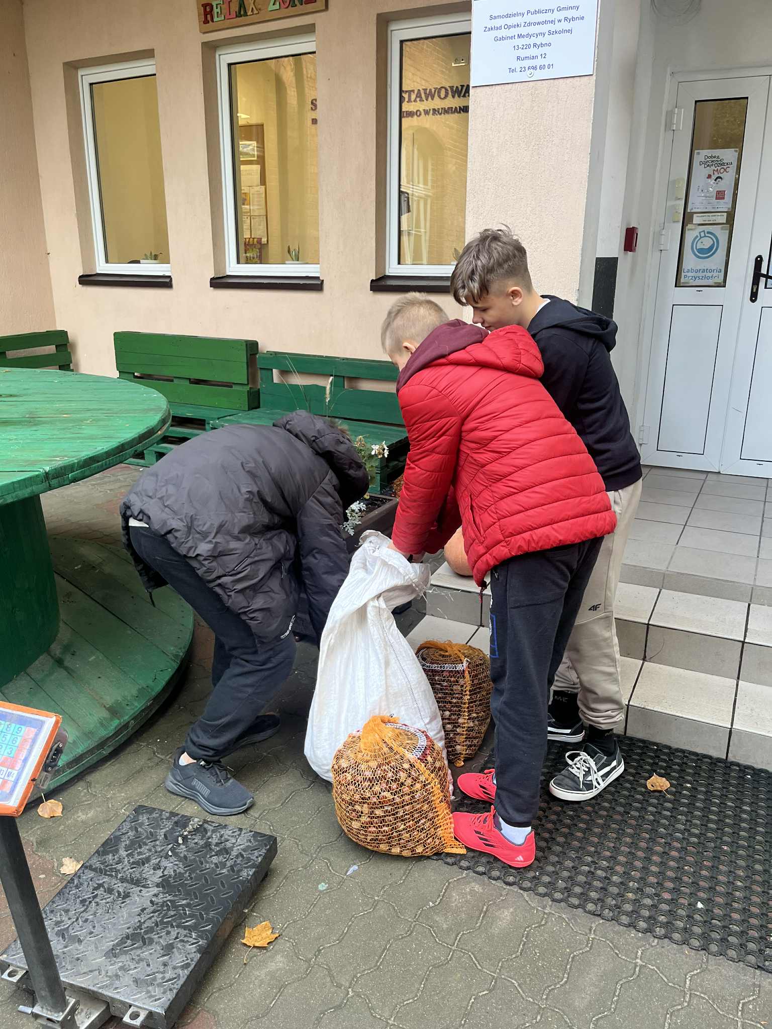 W naszej szkole zakończyła się zbiórka kasztanów, w której jak co roku uczniowie chętnie wzięli udział. Zebrane kasztany zostały zważone i spakowane przez chłopców z klasy VII, którzy wykazali się dużym zaangażowaniem i sprawnością w działaniu i jednocześnie przy tej okazji ćwiczyli swoje matematyczne umiejętności w praktyce. Obliczali masę, porównywali wyniki i sumowali kilogramy.