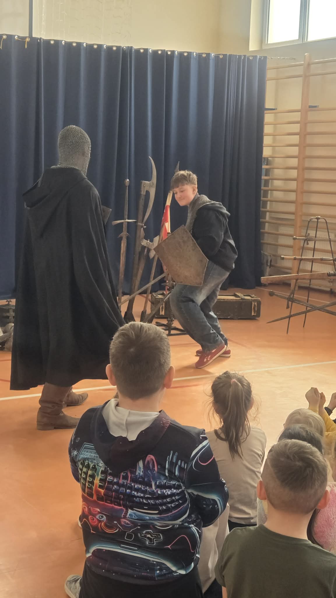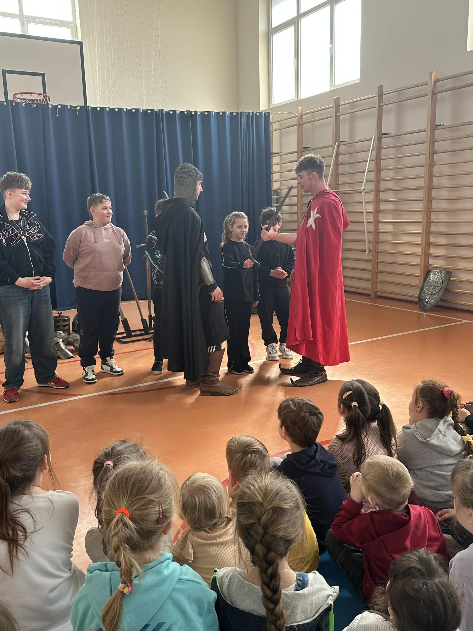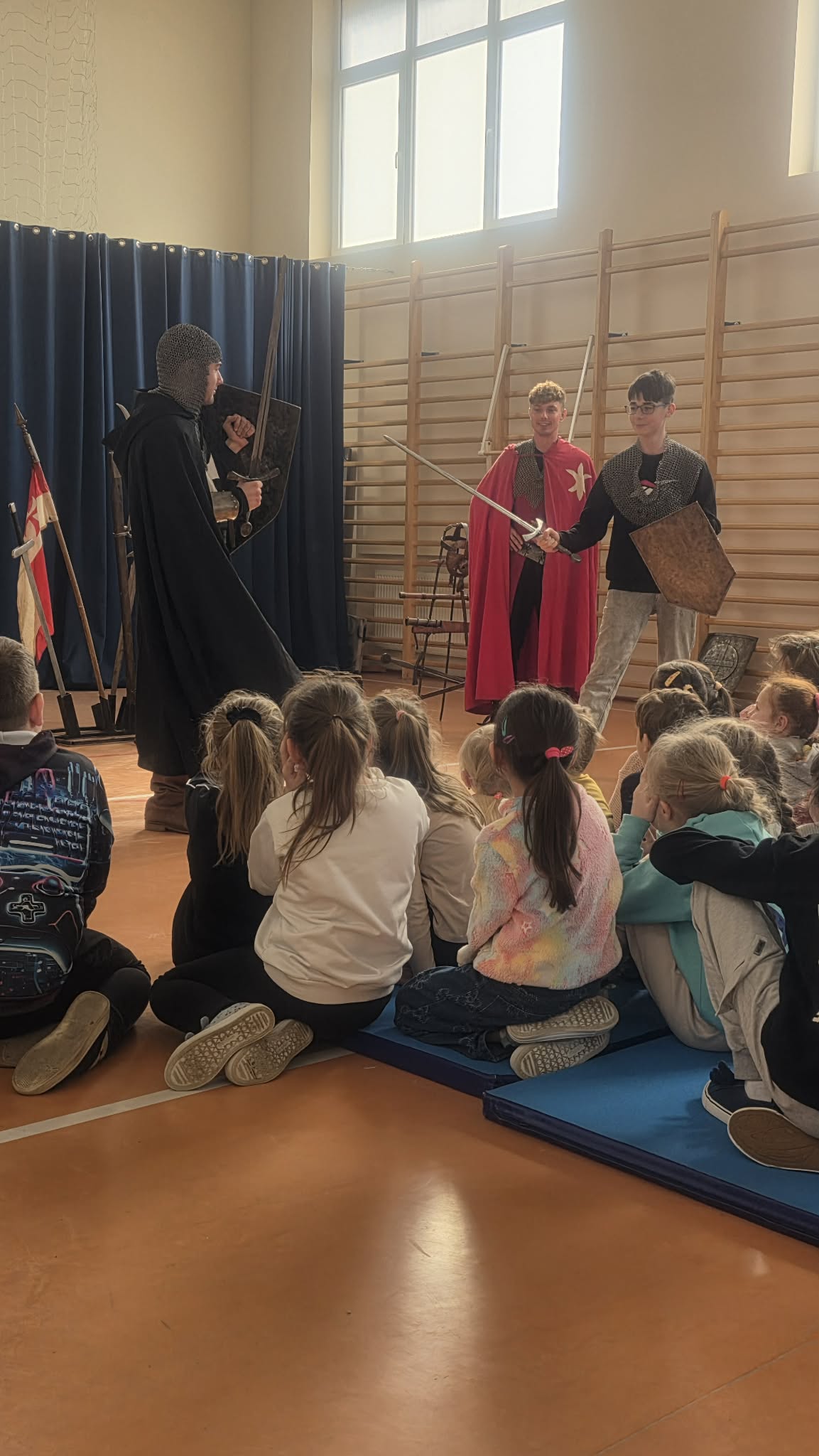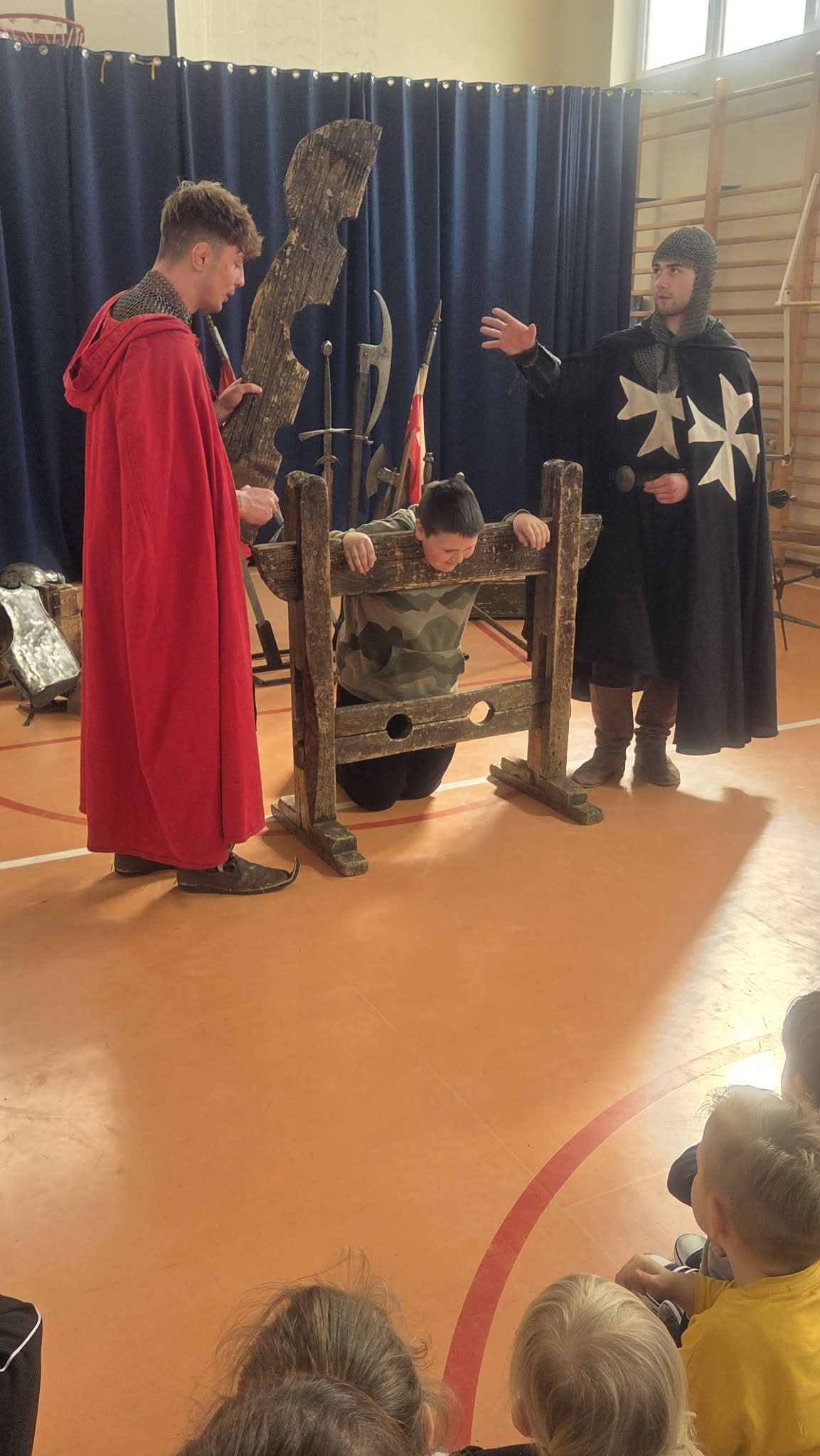 11 marca w naszej szkole odbył się pokaz historyczny pt. „Życie i kultura w średniowieczu”. Uczniowie mieli wyjątkową okazję przenieść się w czasie i zobaczyć, jak wyglądało codzienne życie ludzi w średniowieczu. Prowadzący zaprezentowali różne elementy uzbrojenia oraz przedmioty codziennego użytku z tamtego okresu. Uczniowie mogli nie tylko je oglądać, ale również dotknąć i z bliska przyjrzeć się ich wykonaniu. Szczególnym zainteresowaniem cieszyły się dyby, które można było obejrzeć z bliska, dowiedzieć się, do czego były wykorzystywane, a nawet samodzielnie przetestować. Pokaz wzbudził ogromne zainteresowanie wśród uczniów, którzy aktywnie uczestniczyli w spotkaniu i zadawali wiele pytań. Dzięki temu wydarzeniu mogli lepiej zrozumieć życie i kulturę ludzi w średniowieczu, a historia stała się bardziej namacalna i ciekawa.