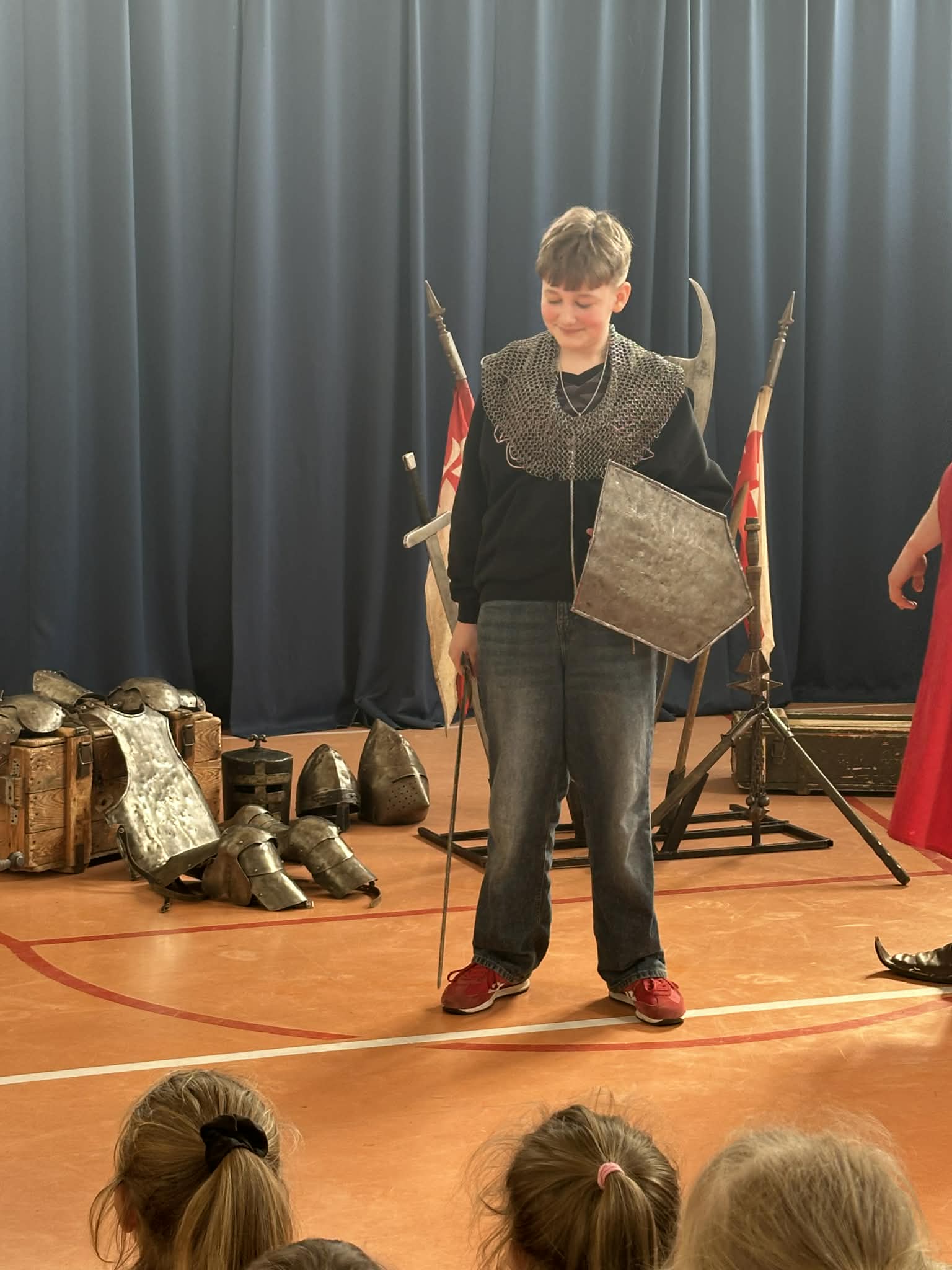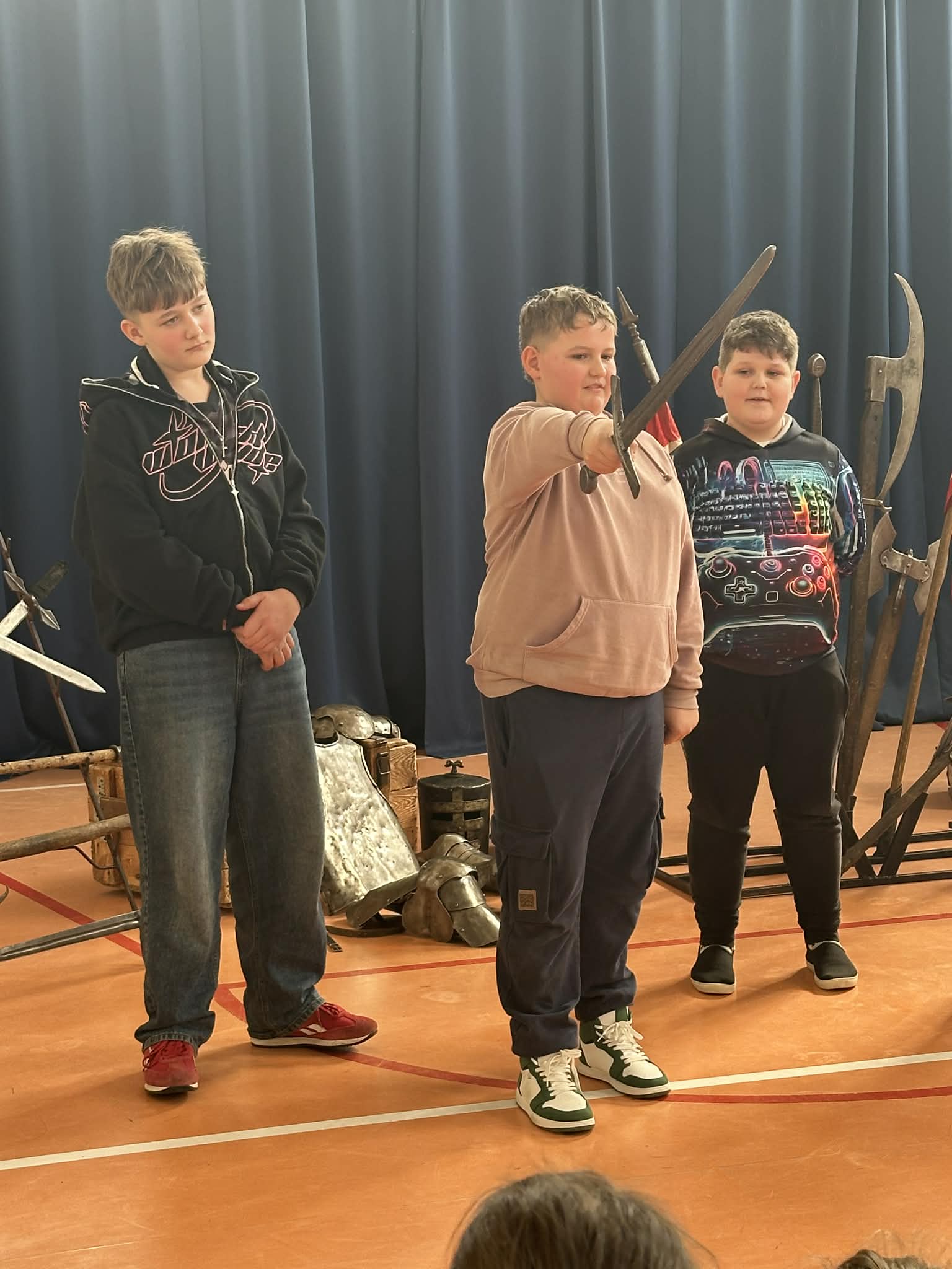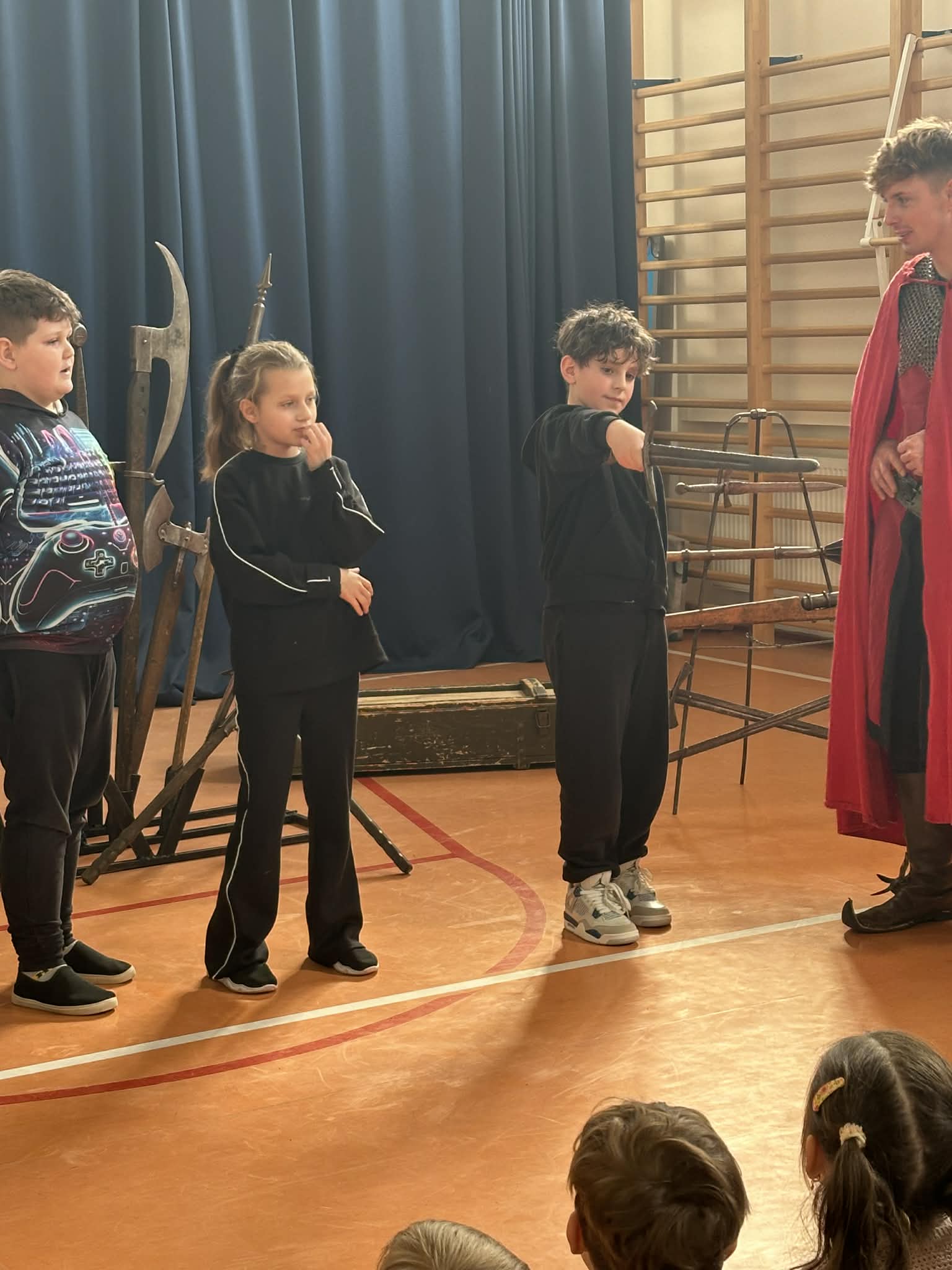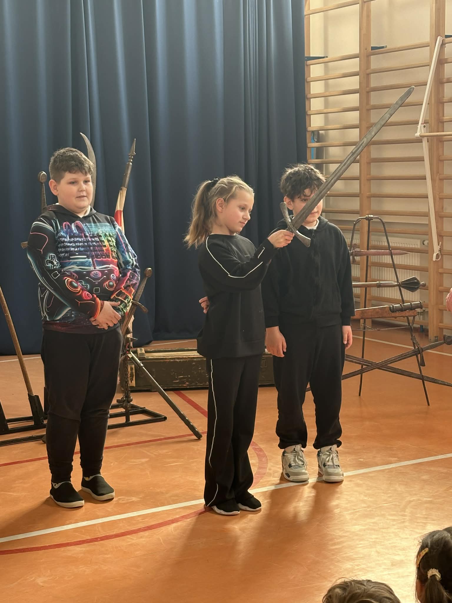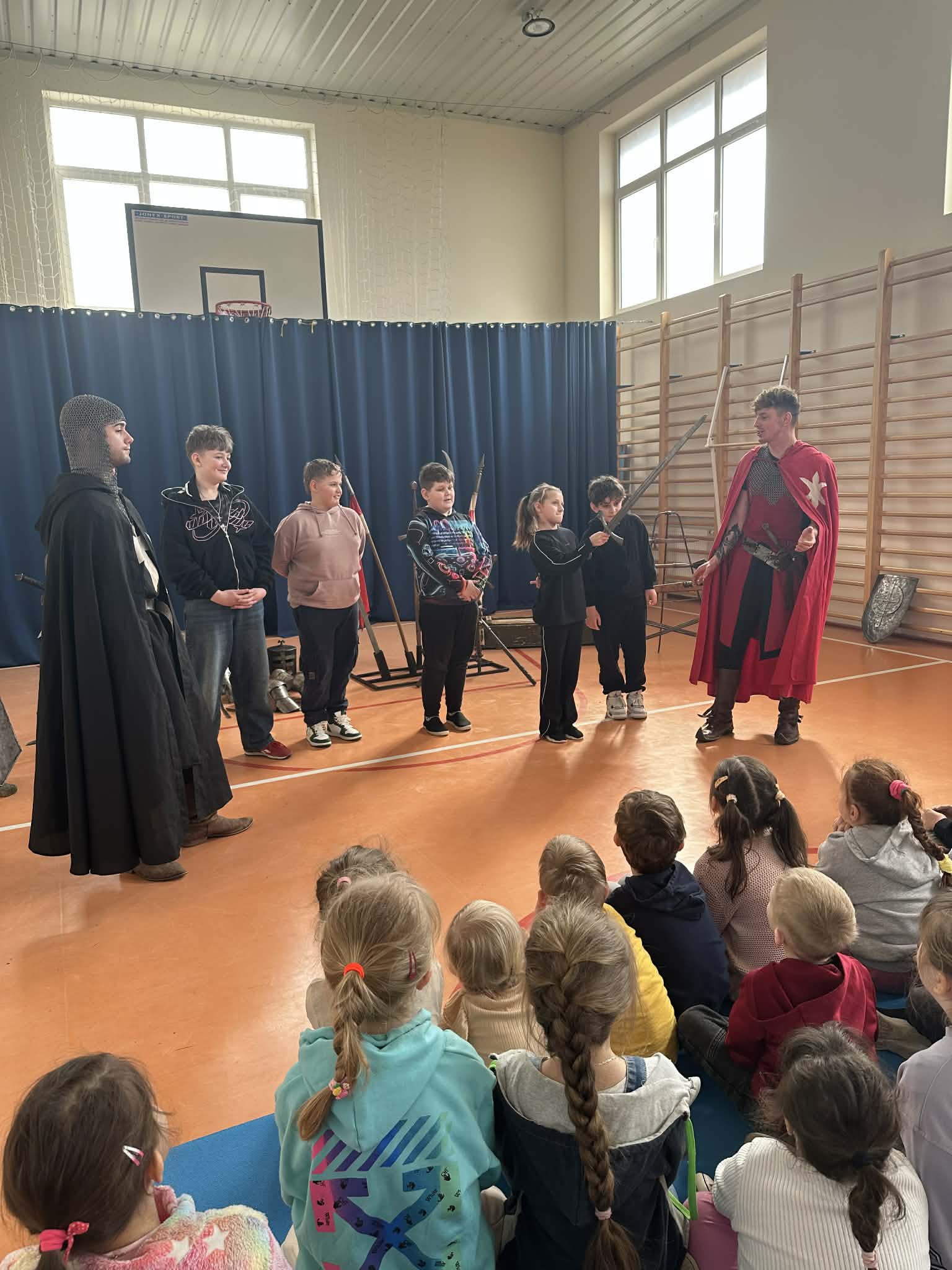 11 marca w naszej szkole odbył się pokaz historyczny pt. „Życie i kultura w średniowieczu”. Uczniowie mieli wyjątkową okazję przenieść się w czasie i zobaczyć, jak wyglądało codzienne życie ludzi w średniowieczu. Prowadzący zaprezentowali różne elementy uzbrojenia oraz przedmioty codziennego użytku z tamtego okresu. Uczniowie mogli nie tylko je oglądać, ale również dotknąć i z bliska przyjrzeć się ich wykonaniu. Szczególnym zainteresowaniem cieszyły się dyby, które można było obejrzeć z bliska, dowiedzieć się, do czego były wykorzystywane, a nawet samodzielnie przetestować. Pokaz wzbudził ogromne zainteresowanie wśród uczniów, którzy aktywnie uczestniczyli w spotkaniu i zadawali wiele pytań. Dzięki temu wydarzeniu mogli lepiej zrozumieć życie i kulturę ludzi w średniowieczu, a historia stała się bardziej namacalna i ciekawa.